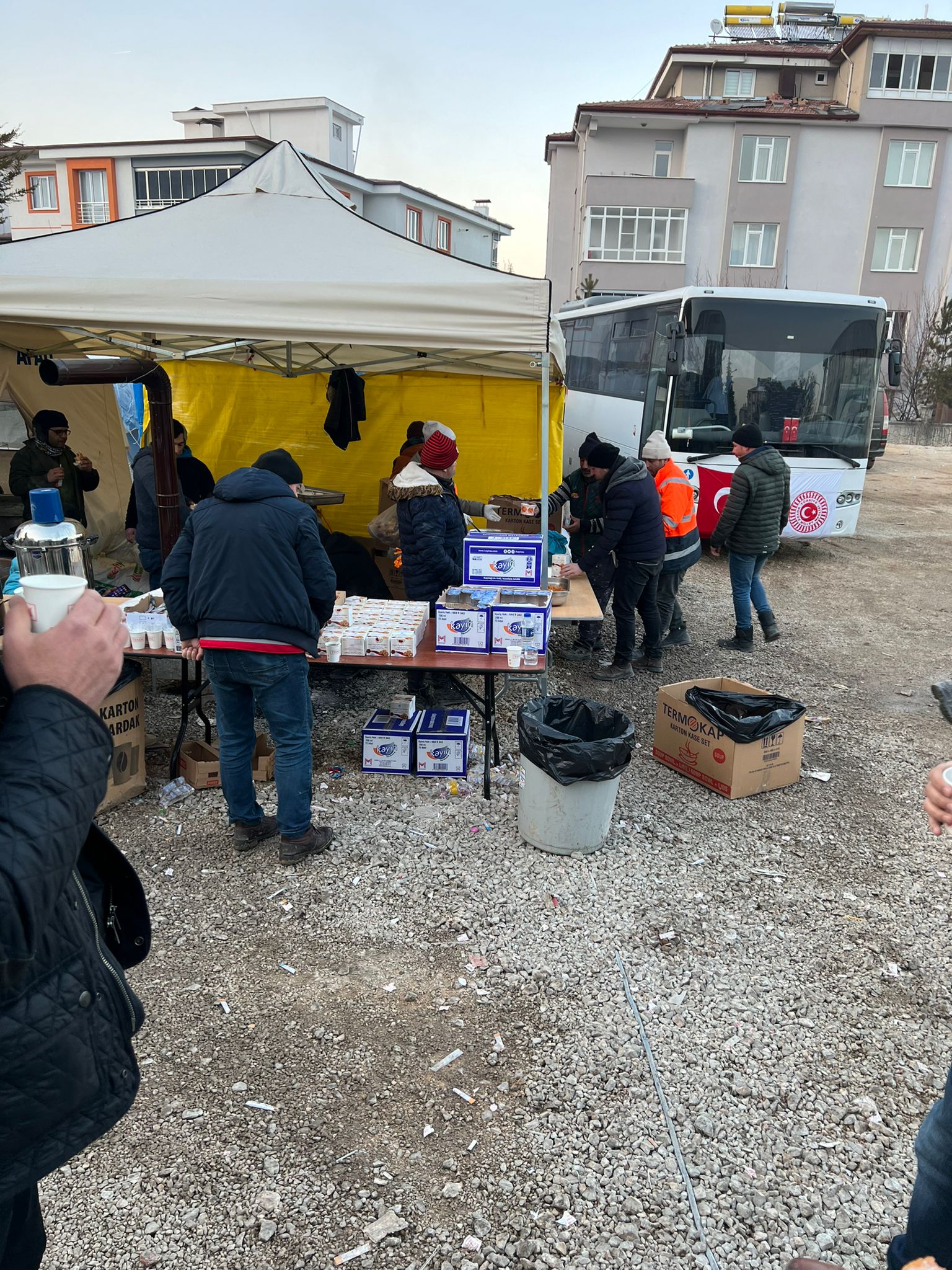 Her gün binlerce kişiye sıcak yemek hizmeti veren Büyükşehir Belediyesi yemek standından bölgedeki depremzede vatandaşlar ve depremin yaralarını sarma çalışmalarına katılan personel ile gönüllüler faydalanıyor.