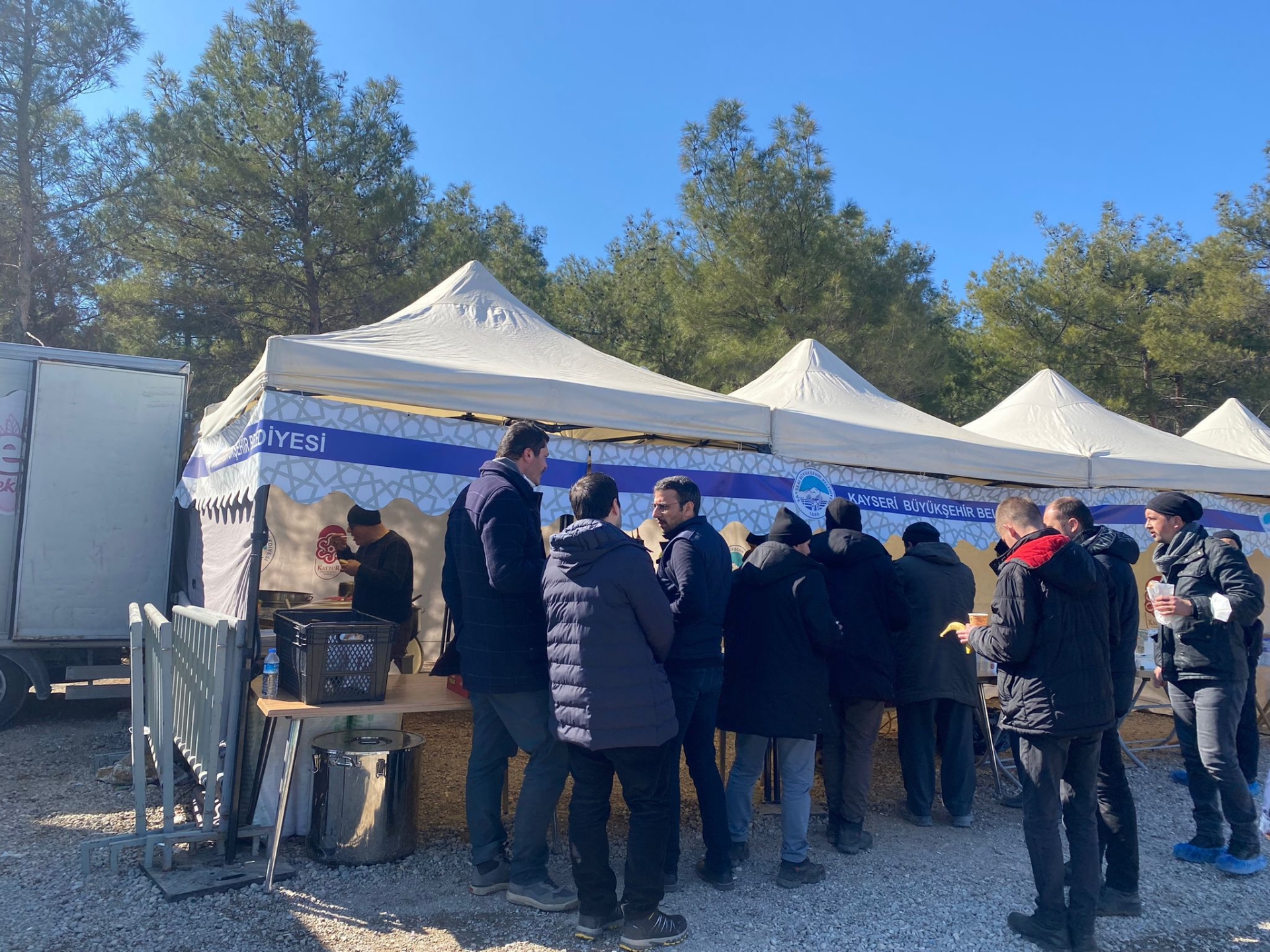 Bu kapsamda Başkan Dr. Memduh Büyükkılıç’ın talimatları doğrultusunda altyapı faaliyetleri, temizlik, barınma ve lojistik ile birlikte gıda, giysi ve diğer malzeme desteği ve ekipleri ile birlikte deprem bölgesinde özverili bir şekilde çalışmalarını sürdüren Kayseri Büyükşehir Belediyesi, Kahramanmaraş’ta kurduğu yemek standında bölgedekilere her gün sıcak yemek imkânı sunuyor.