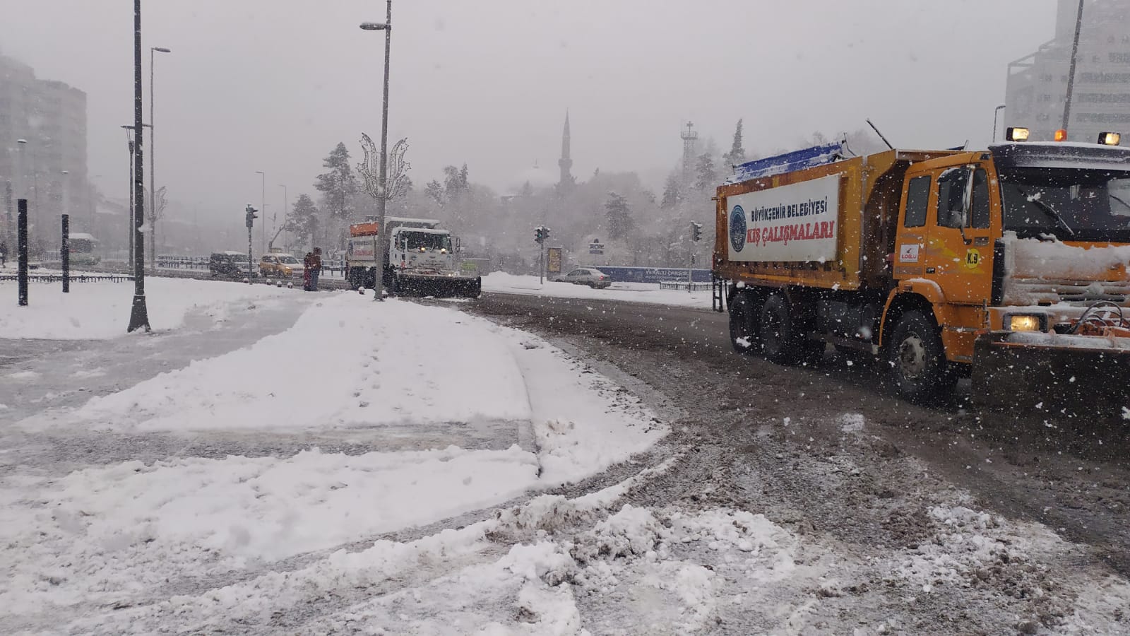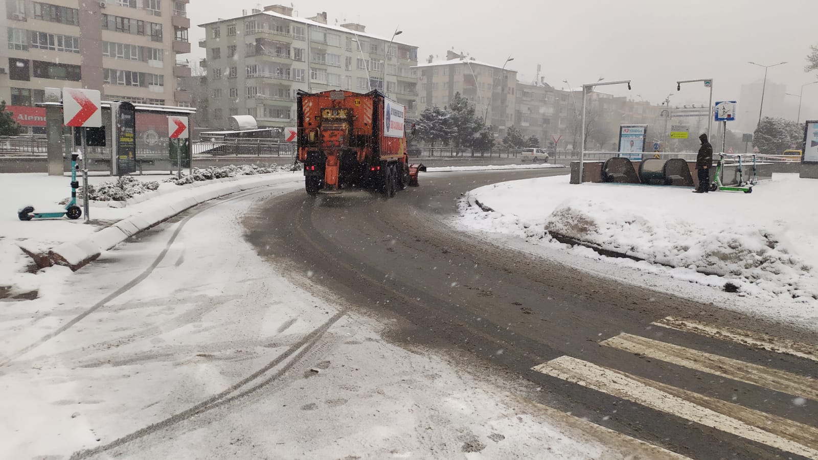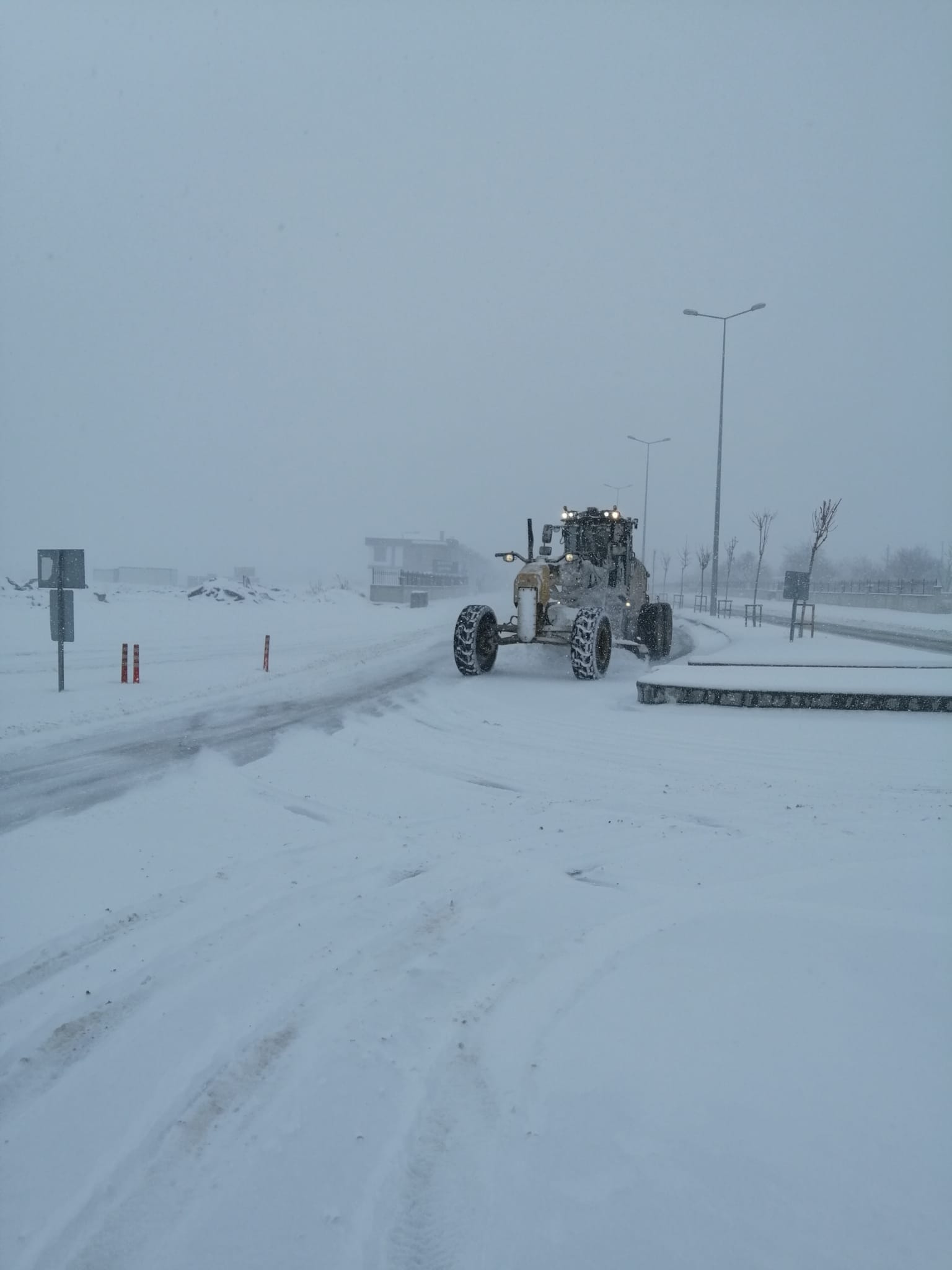 çalışan Büyükşehir Belediyesi’nin karla mücadele ekipleri, kar yağışının