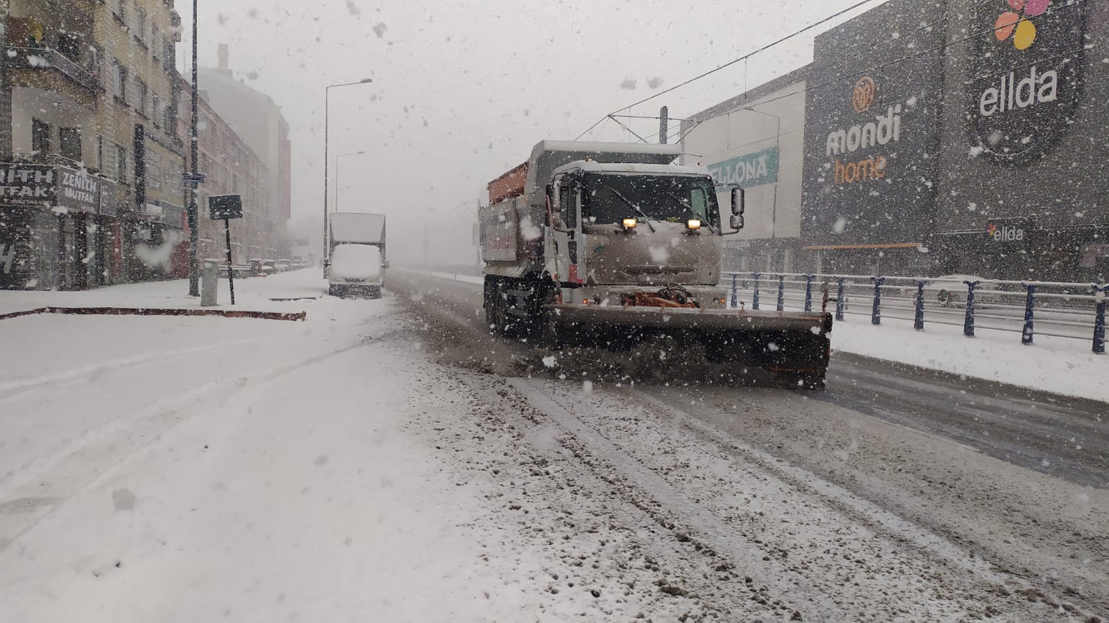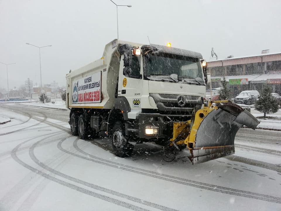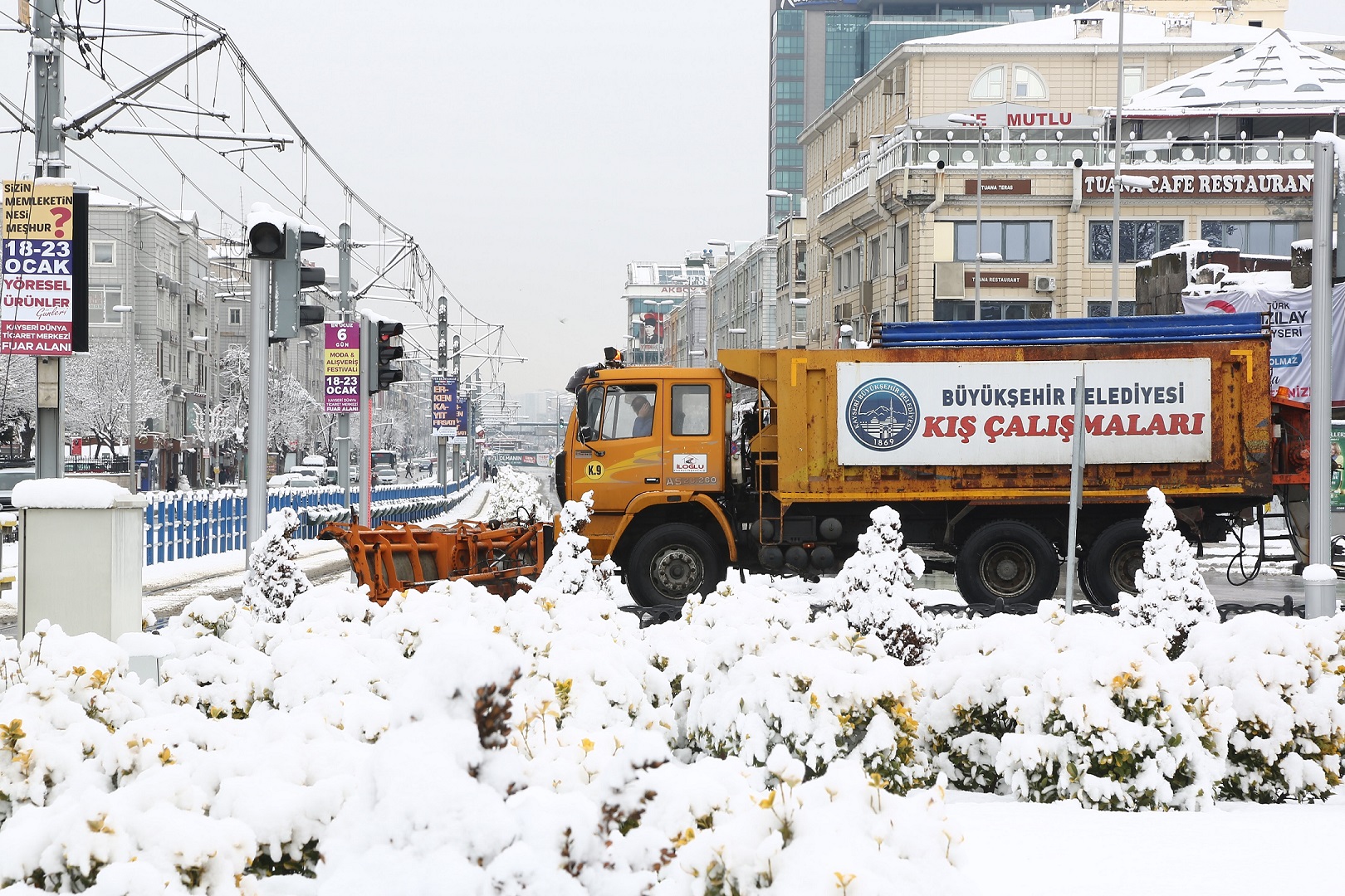 çalışan Büyükşehir Belediyesi’nin karla mücadele ekipleri, kar yağışının