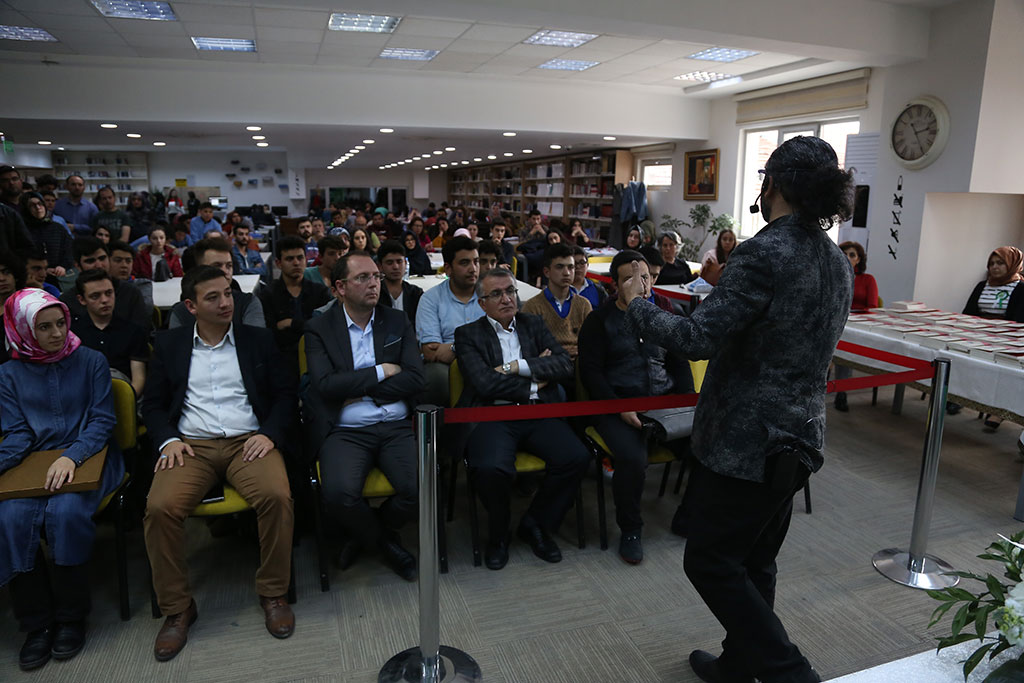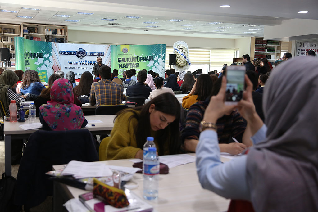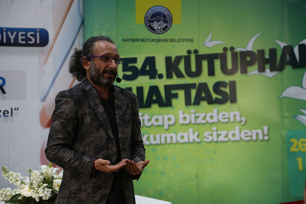 Kayseri Büyükşehir Belediyesi Kütüphane Haftası etkinliklerine Merkez Kütüphane’de yapılan söyleşiyle devam etti. Söyleşiye katılan Ünlü Yazarlardan Sinan Yağmur, Kayseri’nin en çok kitap okuyan altıncı şehir olduğunu belirtti ve Türkiye’de halen Büyükşehir Belediyesi tarafından yapılan Kitap Fuarı’nın konuşulduğunu söyledi. Büyükşehir Belediyesi tarafından yapılan 800 kişilik Merkez Kütüphane’de okuyucularla bir araya gelen Sinan Yağmur, Türkiye’de ilk defa bir kütüphanede kitap sevgisine ilişkin bir söyleşiye katıldığını belirterek, “Normalde bu tür programlar konferans salonlarında yapılıyor; ama Kayseri her şeyin ilkini yapıyor, güzel yapıyor ve yakıştırıyor” dedi. Kayseri’nin Türkiye’de okuyan şehirler sıralamasında nüfus oranına göre altıncı sırada olduğunu ifade eden Yağmur, “Kayserililerin edebiyata, kültüre, sanata olan isteklerini doğru yönlendiren Büyükşehir Belediyesi’ne teşekkür ediyorum. Kayseri’nin kitap aşığı bir şehir olmasından mutluluk duyuyoruz” diye konuştu. Ünlü Yazar Sinan Yağmur, söyleşinin yanı sıra kendisiyle yapılan röportajda da Kayseri’deki okuma alışkanlığına dikkat çekti. Kayseri’de yeniden bulunmaktan dolayı bu şehrin bir evladı olarak çok mutlu olduğunu dile getiren Sinan Yağmur, “Kayseri’den evliyim ve Kayseri’nin evladı sayılırım. Hala Türkiye’de Kayseri Kitap Fuarı konuşuluyor. Emsali, eşi benzeri görülmemiş Kitap Fuarı, Kayseri’nin sadece mantısı, sucuğu, pastırması, Erciyes’i ile değil kültürel kadim medeniyeti ile de meşhur olduğunu gösterdi. Kayseri kitap aşığıdır. Yolu, mimarisi gibi kültürüyle de büyüyen bir şehirdir. Kayseri en çok kitap okuyan ilk 10 şehir içindedir. Kayseri’nin kültür yıldızının daima parlamasını diliyorum” dedi.