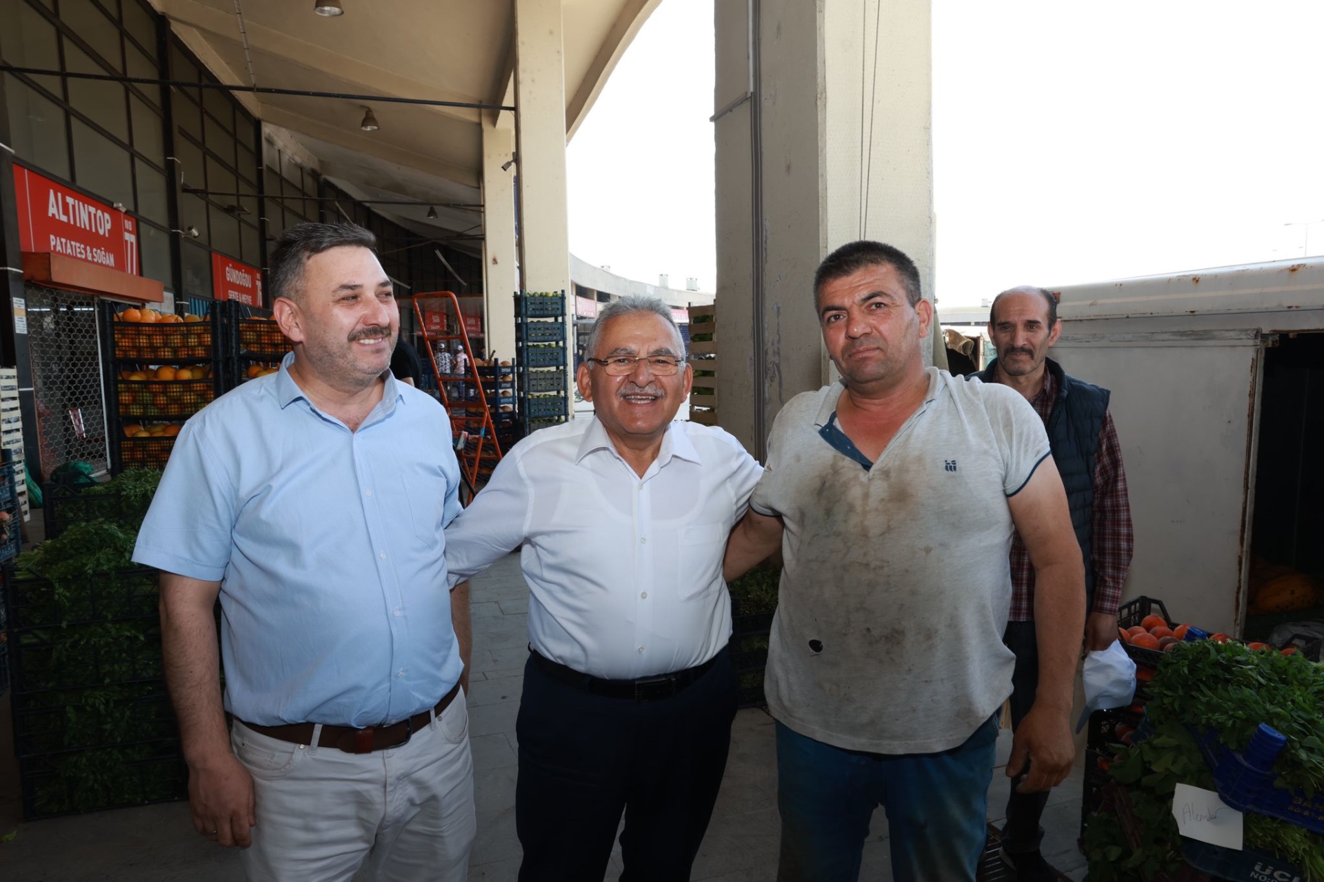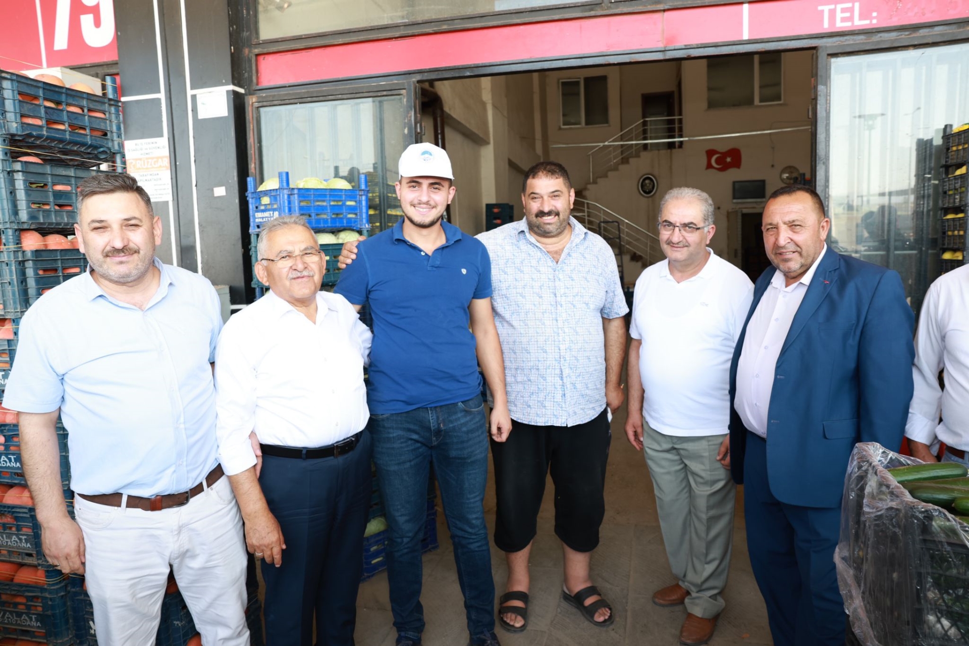 Kayseri Hali’nde esnafları ziyaret ederek, KAYSEM A.Ş. Yönetim Kurulu Başkanı