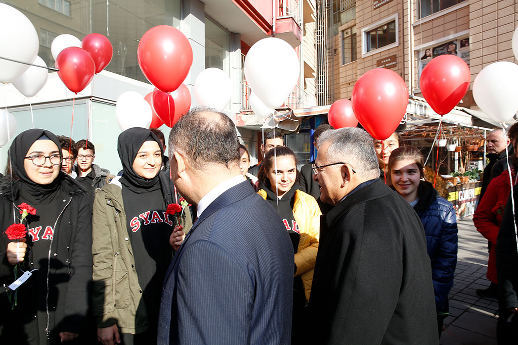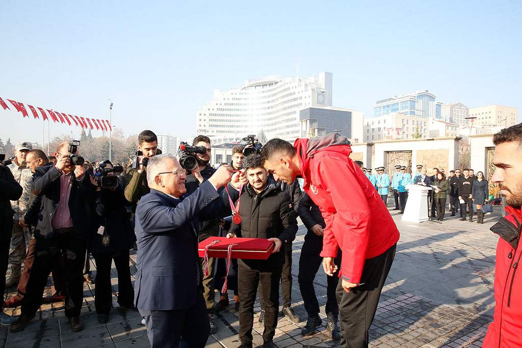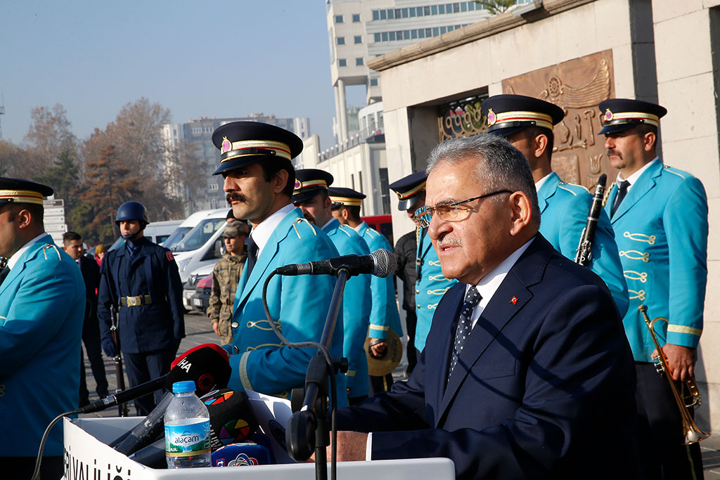 Mustafa Kemal Atatürk'ün 'Heyeti Temsiliye Reisi' olarak Kayseri'ye gelişinin 100’üncü yılı nedeniyle Cumhuriyet Meydanı’nda bir tören düzenlendi. Törende; anıta çelenk konuldu, Büyük Atatürk Koşusu düzenlendi ve Büyükşehir Belediye Başkanı Dr. Memduh Büyükkılıç, şehir adına bir konuşma yaptı. Atatürk'ün Kayseri'ye gelişi nedeniyle Cumhuriyet Meydanı'ndaki Atatürk Anıtı önünde düzenlenen törene Vali Şehmus Günaydın, Büyükşehir Belediye Başkanı Dr. Memduh Büyükkılıç, Garnizon Komutanı Tuğgeneral Ercan Teke, askeri erkan, bürokratlar, vatandaşlar ve öğrenciler katıldı. Törende Büyük Atatürk koşusunda dereceye giren Ersin Tekal, Turgay Bayram ve Süleyman Pekmezci’ye madalya ve ödülleri verildi. Sporculara ödüllerinin verilmesinin ardından Atatürk Anıtına çelenkler sunuldu. Törende şehir adına bir konuşma yapan Büyükşehir Belediye Başkanı Dr. Memduh Büyükkılıç, 1 asır önce Cumhuriyetimizin kurucusu Gazi Mustafa Kemal Atatürk’ün soğuk ve karlı bir havada Kayseri’ye geldiğini ve soğuk havaya rağmen Kayserililer tarafından Çifte Kümbet önünde coşkulu bir şekilde karşılandığını söyledi. Gazi Mustafa Kemal’in, 20 Aralık Cumartesi günü de Kayseri Belediyesi’ni ziyaret ederek şehrin ileri gelenleriyle bir görüşme yaparak Milli Mücadeleyi anlattığını ifade eden Başkan Büyükkılıç, “Kayseri’de gece şerefine düzenlenen fener alayında bir öğrencinin söylevi üzerine şu ifadeleri kullanmıştır: ‘Bütün dünya bilmelidir ki Türk Milletinin hakkını, haysiyetini, şerefini tanıtmaya gücü vardır. Türk vatanının bir karış toprağı için bütün millet hep birlikte ayağa kalkar. Haysiyetinin bir zerresine, vatanın bir avuç toprağına yapılacak saldırının bütün varlığına vurulmuş darbe olacağını Türk Milletinin fark etmediğini sanmak hatadır. Saygısızlığın, saldırının küçüğü, büyüğü yoktur.’ Mustafa Kemal’in Kayseri’ye gelerek bu şehrin desteğini alması, şehrimize verdiği önemin bir göstergesidir” diye konuştu. ŞEHİT ÖĞRENCİLERİ HATIRLATTI Konuşmasında Kayseri’nin Milli Mücadeleye tam destek verdiğini dile getiren Başkan Memduh Büyükkılıç, Kayseri Lisesi öğrencilerini de anarak sözlerini şöyle sürdürdü: “Kayseri, gerekeni yaparak Milli Mücadele’nin en ön saflarında yer almıştır. Bu anlamda Kayseri Lisesi öğrencilerinin cesareti ve fedakarlığı Milli Mücadelenin destansı olaylarındandır. Kurulduğundan bu yana mezuniyet kütüğü bulunan Kayseri Lisesi 1920-1921 yılında mezun verememiştir. Mezuniyet defterine 'lise son sınıf talebeleri Sakarya Savaşı için cepheye gidip hepsi cephede şehit düştüğünden bu öğrenim yılında okulumuz mezun verememiştir' ibaresi yazılmıştır.” Dedi. MİLLİ SANAYİDE KAYSERİ’NİN ROLÜ Gazi Mustafa Kemal Atatürk’ün toplam beş kez Kayseri’ye geldiğini ve Milli Mücadeleyi başlattığı şehirlerden biri olan Kayseri’de Milli Sanayi hamlelerini de başlattığını ifade eden Başkan Memduh Büyükkılıç, Kayseri ve Kayseri halkının her ziyaretinde Gazi Mustafa Kemal’i bağrına bastığını ve Türkiye Cumhuriyet’inin sadece kurtuluş mücadelesinde değil gelişmesinde de azami gayret gösteren illerin başında geldiğini söyledi. Cumhuriyetin ilanından sonra ülkenin gelişmesi için Kayserililere çok güvenen Gazi Mustafa Kemal’in, Milli Sanayi hamlesini başlatma görevini şehrimizin yetiştirdiği önemli isimlerden Nuh Naci Yazgan’a verdiğini hatırlatan Başkan Büyükkılıç, “Kayseri ve Kayserililer o denemde de var olan ve genlerinde bulunan müteşebbislik ruhu ile Türkiye Cumhuriyeti’nin lokomotifi olmuşlardır. Kayseri; tıpkı 100 yıl önce olduğu gibi, bugün de vatanın bölünmez bütünlüğünün, devletinin ve milletinin yanındadır. Kayserililer; Ay Yıldızlı Türk Bayrağı'nın inmemesi, ezanımızın dinmemesi için her daim devletinin emrinde olmuş, canını ortaya koymuş ve bu uğurda ülkemizin en çok şehit veren illerinin başında gelmiştir. Kayseri, yerli ve milli olana her zaman önem veren bir şehirdir. Gazi Mustafa Kemal Atatürk, 100 yıl önce bu hasletleri fark etmiş, Genç Cumhuriyetin en önemli yatırımlarını Kayseri’de yapmış ve adeta bu yatırımları Kayserililere emanet etmiştir. Atatürk’ün ‘ekonomik bağımsızlık olmadan siyasi bağımsızlık olmaz’ sözünü rehber alan Kayseri, bu sözün gereği için büyük bir gayretle çalışmaya devam etmektedir. Kayseri bugün, sadece “Sanayi ve Ticaret Kenti” olarak değil, Kayseri Büyükşehir Belediyesi’nin yatırımlarıyla turizm kenti, güçlü üniversitelerimizle eğitim kenti, kamu ve özel sektör yatırımlarıyla sağlık kenti, farklı medeniyetlerden bugüne taşınan eserleriyle bir kültür kenti olarak anılmaktadır. Kayseri ve Kayserililerin gayreti, Atatürk ve silah arkadaşları tarafından kurularak bize emanet edilen Türkiye Cumhuriyeti’nin çok daha güçlü bir hale gelmesini sağlamaktır. Bu uğurda şehitlerimizin farklı cephelerde verdikleri mücadeleyi düşünerek ve bu vatanın her karış toprağının şehit kanlarıyla sulandığını aklımızdan çıkarmayarak çalışacağız, çalışacağız, çok çalışacağız. Aziz vatanımızda çok daha huzurlu yaşamak için çok daha güçlü olmamız gerektiğini biliyoruz. Bunun için de yılmadan, yorulmadan mücadelemizi sürdüreceğiz. Bu duygu ve düşüncelerle başta Heyet-i Temsiliye Reisi Gazi Mustafa Kemal Atatürk olmak üzere değerli heyetine, manevi huzurlarında ‘şehrimize hoş geldiniz’ diyor, saygı ve şükranlarımı sunuyorum” diye konuştu. ATATÜRK EVİ’NDE 100 YIL ÖNCEYE DÖNÜLDÜ Gazi Mustafa Kemal Atatürk’ün Kayseri’ye gelişinin 100’üncü yılı nedeniyle Atatürk Evi’nde de bir program gerçekl