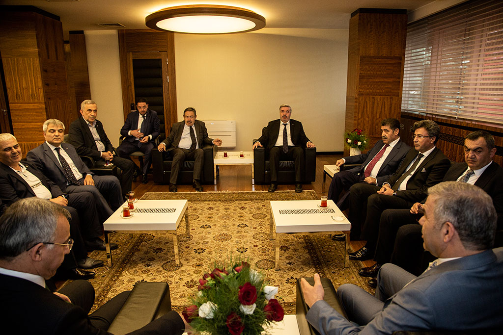 Sanayi Odası’nın yeni yönetimi Büyükşehir Belediye Başkanı Mustafa Çelik’i ziyaret etti. Başkan Çelik, Kayseri için kurumlarla uyum içinde çalıştıklarını ifade ederek yeni dönemde çok önemli çalışmalar gerçekleştireceklerini söyledi. Sanayi Odası’nın ziyaretine Meclis Başkanı Abidin Özkaya, Sanayi Odası Başkanı Mehmet Büyüksimitçi ve yönetim kurulu üyeleri katıldı. Sanayi Odası’nın yeni yönetimi hakkında bilgi veren Yönetim Kurulu Başkanı Büyüksimitçi, oda meclisinde yüzde 50’nin üzerinde, yönetim kurulunda da yüzde 70 civarında değişiklik yapıldığını söyledi. Büyüksimitçi, önümüzdeki dönemde Kayseri ve ülke sanayisi için hayırlı çalışmalar yapmak istediklerini kaydetti. Büyükşehir Belediye Başkanı Mustafa Çelik de Sanayi Odası yönetiminin hayırlı olması temennisinde bulundu ve Kayseri’deki kurumlar arası uyumun şehrimizi diğer şehirlerin önüne geçirdiğini belirtti. Tüm kurumların Kayseri ortak paydasında buluştuğunu dile getiren Başkan Çelik, “Sanayi Odamız da bizim her zaman iş birliği içerisinde çalıştığımız bir kurumumuz. Önümüzdeki dönemde birlikte yapmamız gereken çok önemli projeler var. Bunların başında gerek ihtisas organize sanayileri, gerekse büyük organize sanayiler gibi sanayi bölgelerinin planlanması geliyor. Kayseri’nin hem ulusal anlamda, hem de uluslararası anlamda tanıtılması da birlikte yapacağımız çalışmalar arasında geliyor” dedi. “ÜLKEMİZİN HEDEFLERİNE KATKIDA BULUNACAĞIZ” Konuşmasında Kayseri sanayisinin kültürünü değiştirmesi gerektiğini de vurgulayan Başkan Çelik, “Emek yoğun işten, teknoloji yoğun katma değeri yüksek işlere doğru yönelmek için klasik bildiğimiz sanayicilik kültürünün değişmemiz gerekiyor. Hep beraber inşallah şehrin geleceği için yapılacak her projede yine beraber olacağız. Ülkemizin 2023’te 500 milyar dolarlık ihracat hedefine ulaşmasına Kayseri olarak katkı vereceğiz” diye konuştu.