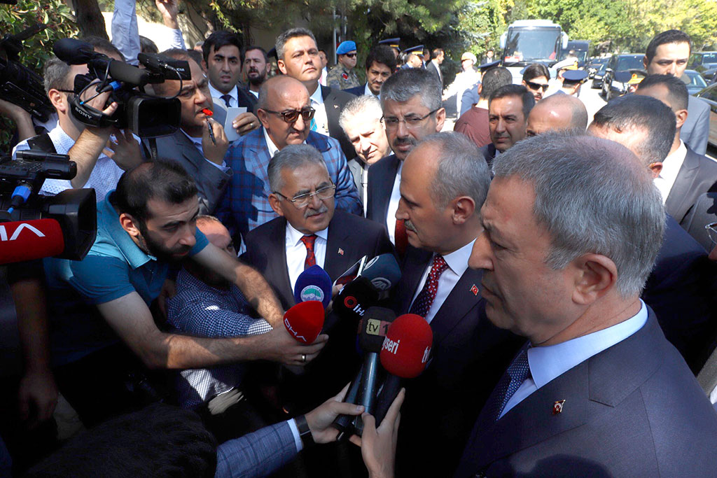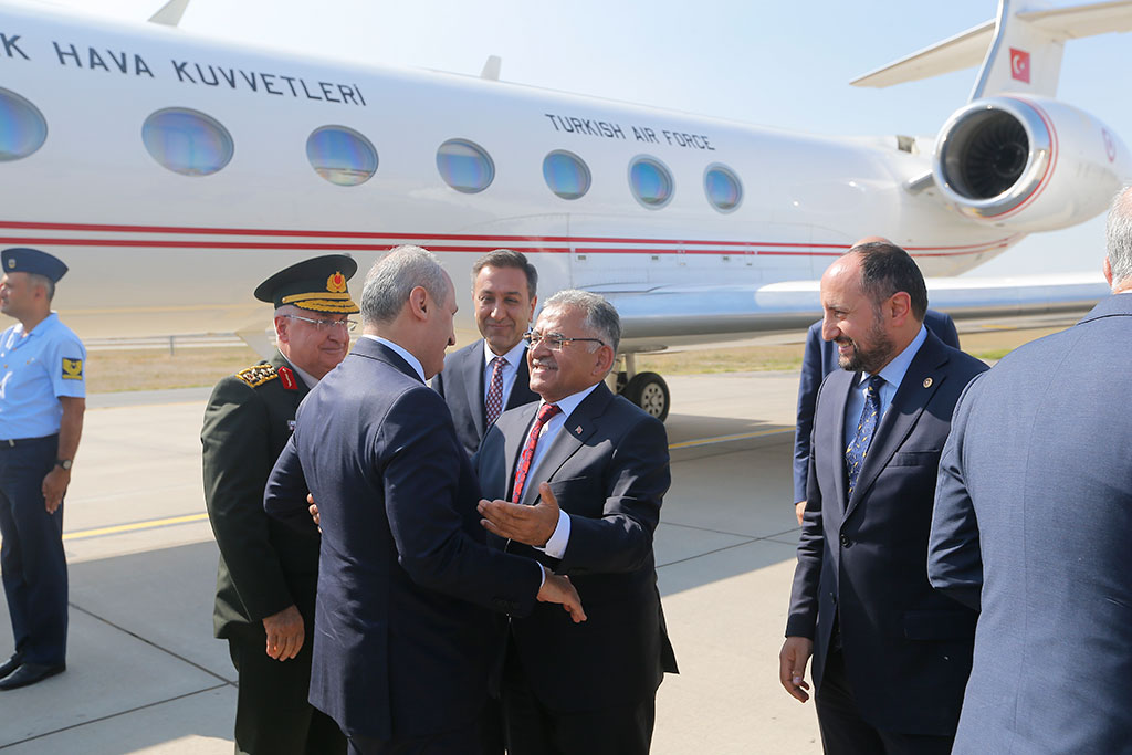 Milli Savunma Bakanı Hulusi Akar ile Ulaştırma ve Altyapı Bakanı Mehmet Cahit Turhan Kayseri’yi ziyaret etti. Her iki Bakanın katılımıyla Büyükşehir Belediyesi’nin ev sahipliğinde bir toplantı gerçekleştirildi ve Büyükşehir Belediye Başkanı Dr. Memduh Büyükkılıç, Kayseri’nin projeleriyle ilgili brifing verdi. Ulaştırma ve Altyapı Bakanı Mehmet Cahit Turhan, hızlı tren projesi, havaalanının genişletilmesi ve Belsin-Şehir Hastanesi Raylı Sistem Hattı ile ilgili açıklamalarda bulundu. Büyükşehir Belediye Başkanı Dr. Memduh Büyükkılıç, Ulaştırma ve Altyapı Bakanı Mehmet Cahit Turhan ile Milli Savunma Bakanı Hulusi Akar’ı Erkilet Havaalanı’nda karşıladı. Karşılamada Başkan Büyükkılıç’ın yanı sıra Vali Şehmus Günaydın, AK Parti Kayseri Milletvekili İsmail Emrah Karayel, Garnizon Komutanı Tuğgeneral Ercan Teke ve AK Parti İl Başkanı Şaban Çopuroğlu da yer aldı. Milli Savunma Bakanı Hulusi Akar ile birlikte Milli Savunma Bakan Yardımcısı Muhsin Dere, Genelkurmay Başkanı Yaşar Güler ve kuvvet komutanları da Kayseri’ye geldi. Her iki bakanlığa bağlı çok sayıda genel müdür de Kayseri’deydi. Büyükşehir Belediye Başkanı Büyükkılıç, Bakan Mehmet Cahit Turhan ve Bakan Hulusi Akar’a karşılamanın ardından bir brifing verdi. Brifinge AK Parti İl Başkanı Şaban Çopuroğlu, ilçe belediye başkanları ve meslek odalarının başkanları da katıldı. Başkan Büyükkılıç, Kayseri’nin ulaşım projeleriyle ilgili detaylı bir sunum yaptı. Milli Savunma Bakanı Hulusi Akar ve Ulaştırma Bakanı Mehmet Cahit Turhan’ın katılımıyla Büyükşehir Belediyesi tarafından bir de toplantı gerçekleştirildi. Fuar alanı içerisindeki KAYTUR tesislerinde yapılan toplantının ardından Ulaştırma ve Altyapı Bakanı Mehmet Cahit Turhan basın mensuplarına açıklamalarda bulundu. Erkilet Havaalanı, şehir içi ulaşımı, hızlı tren projesi ve karayolları projeleriyle ilgili bilgi aldıklarını belirten Bakan Turhan, “Kayseri’ye hak ettiği projeleri en kısa sürede tesis etmek için çalışmalarımıza devam edeceğiz” dedi. Hızlı trenle ilgili ihale hazırlık çalışmalarının devam ettiğini ve hedeflerinin 2023 yılı olduğunu ifade eden Bakan Turhan, “Havaalanının genişlemesiyle ilgili de bilgi aldık. Yeni pist yapılması konusunda çalışmalar yapıldı ve önümüzdeki günlerde başlayacağız” dedi. Belsin-Terminal-Şehir Hastanesi-Nuh Naci Yazgan Üniversitesi-Mobilyakent Raylı Sistem Hattı konusunda da açıklamalar yapan Bakan Turhan, “Cumhurbaşkanımız yatırım programına alınması konusunda gerekli onayı verdi. Biz de önümüzdeki günlerde ihaleye çıkacağız ve hızlı bir şekilde tamamlayacağız” diye konuştu.