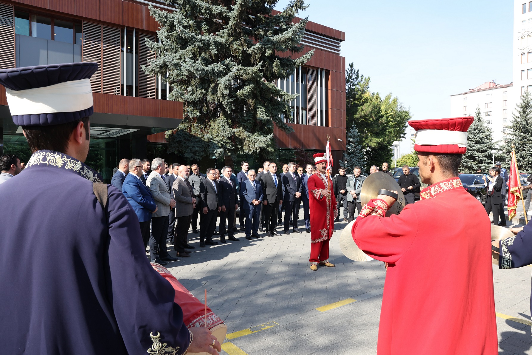 kenti heyetini Büyükşehir Belediyesi önünde Mehter takımı ve çiçeklerle