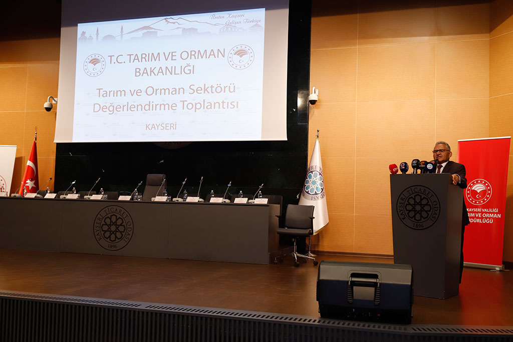 Kayseri Büyükşehir Belediye Başkanı Dr. Memduh Büyükkılıç, Tarım ve Orman Bakanlığı’nın değerlendirme toplantısında Kayseri’nin tarım ve hayvancılığın da merkezi olabileceğini belirtti. Başkan Büyükkılıç, bu anlamda Kayseri’nin bazı beklentilerinin olduğunu ifade ederek bunların başında da Et ve Süt Kurumu’nun Kayseri’ye kesimhane kurmasının geldiğini söyledi. Tarım ve Orman Bakan Yardımcısı Mustafa Aksu’nun başkanlığında Bakanlığa bağlı 9 genel müdürlüğün bürokratlarının katılımıyla Kayseri Büyükşehir Belediyesi’nde yapılan toplantının ardından Ticaret Odası Konferans Salonu’nda sektör temsilcilerinin de iştirakiyle değerlendirme toplantısı yapıldı. Toplantıya Büyükşehir Belediye Başkanı Dr. Memduh Büyükkılıç’ın yanı sıra Vali Şehmus Günaydın, Önceki Dönem Enerji ve Tabi Kaynaklar Bakanı Taner Yıldız, MHP Kayseri Milletvekili Baki Ersoy, İlçe Belediye Başkanları, oda başkanları ve bürokratlar ile tarım ve hayvancılıkla ilgili sektör temsilcileri katıldı. Toplantıda yaptığı konuşmada şehrin problemlerinin birebir konuşulması açısından böyle bir toplantı gerçekleştirildiği için Tarım ve Orman Bakanlığı’na teşekkür eden Başkan Memduh Büyükkılıç, Kayseri’de tüm kurum ve kuruluşların uyum içinde çalıştığını ve bunun da bereketi beraberinde getirdiğini belirtti. “Kayserili işini bilir” sözüne değinen ve Kayseri’nin kendi yağıyla kavrulmasının önemli olduğunu dile getiren Başkan Büyükkılıç, “Evet Kayserili işini bilir; ama bunun yanında işini de takip eder. Bugüne kadar yapılanlar güzel; ama yeterli değil. Daha fazlasını hak ettiğimizi biliyoruz. Kayseri denince akla sanayi ve ticaret gelir. Bunların yanında turizm ön plana çıktı. Ancak bunların yanında tarım ve hayvancılığın da merkezi olabiliriz. Bu anlamda 16 ilçemizin her birinde ayrı bir değer yatıyor. Bu güzellikleri artırmak, ülke ekonomisine katkıda bulunmak hepimizin görevi” dedi. Büyükşehir Belediyesi’nde yapılan toplantıda tarım ve hayvancılıkla ilgili projeleri Bakan Yardımcısı Mustafa Aksu ve bürokratlarla paylaştıklarını dile getirerek Kayseri’nin bazı beklentilerinden de bahseden Başkan Büyükkılıç, “Et ve Süt Kurumumuzun Kayseri’de kesimhanesinin olmasını olmazsa olmaz gördüğümüzü bir kez daha vurgulamak istiyorum. Bu kesimhanenin çok büyük katkı sağlayacağına inanıyoruz” diye konuştu. Başkan Büyükkılıç, konuşmasında Bakanlığın bazı teşvikleriyle ilgili beklentileri de dile getirdi.