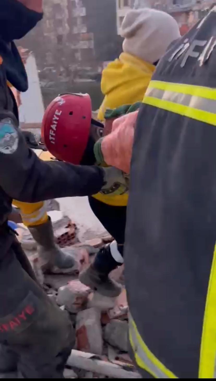 O anları kayda alan Kayseri Büyükşehir Belediyesi İtfaiye Daire Başkanlığı personeli, “Afetin ilk saatinden itibaren Kahramanmaraş ilimizde arama kurtarma faaliyetimizi sürdürüyoruz. Çok sayıda yaralıyı sağlık birimine teslim ettik. 12 Şubat ilçemizdeyiz, Hayrullah Mahallesinde bir anne ve kızı enkaz altındadır. Bir mucizeye şahit olacağız. Canla başla çalışan Kayseri itfaiyesi 30 saatlik zaman zarfında vatandaşa ulaştı” diye konuştu.
