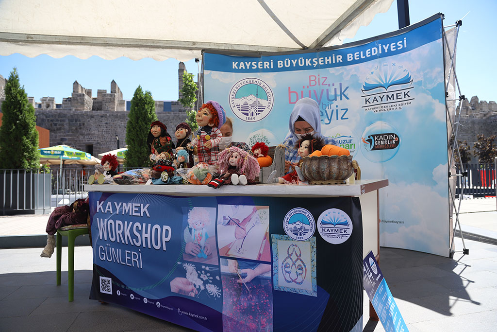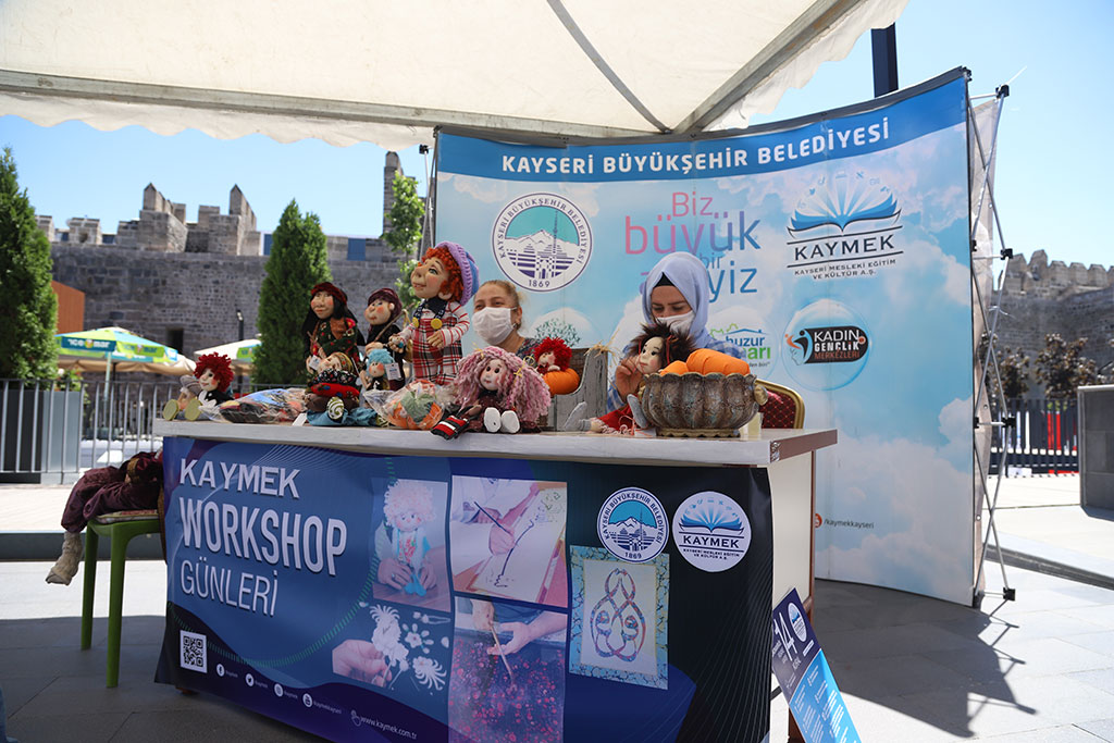 Büyükşehir Belediyesi bünyesinde faaliyet gösteren KAYMEK, Geleneksel Türk El Sanatları uygulamalı sanatsal faaliyetlerine Kayseri Kalesi içerisinde kurduğu Workshop alanında vatandaşlara ‘’Bebek Yapımı’’ eğitimi vererek devam ediyor. Büyükşehir Belediyesi Kayseri Mesleki Eğitim ve Kültür A.Ş. (KAYMEK), uygulamalı sanatsal faaliyetlerine kaldığı yerden devam ediyor. Bu kapsamda KAYMEK, Kayseri Kalesi içerisinde kurduğu Workshop alanında “Bebek Yapımı” uygulamalı sanat atölyesinde Kayserililere atık malzemelerle eğitim veriyor. Eğitimler açık havada 12.00 ile 20.00 saatleri arasında ücretsiz olarak veriliyor. Atık maddelerin değerlendirilmesiyle bir anlamda geri dönüşüm sağlamış olan KAYMEK, kültür ve sanat merkezi Kayseri Kalesi’nin içerisinde sanat atölyesiyle tüm vatandaşların ilgisini çekiyor. Atık maddelerden yapılan “Bebek Yapımı” eğitimi virüse karşı alınan tedbirler kapsamında açık havada veriliyor.