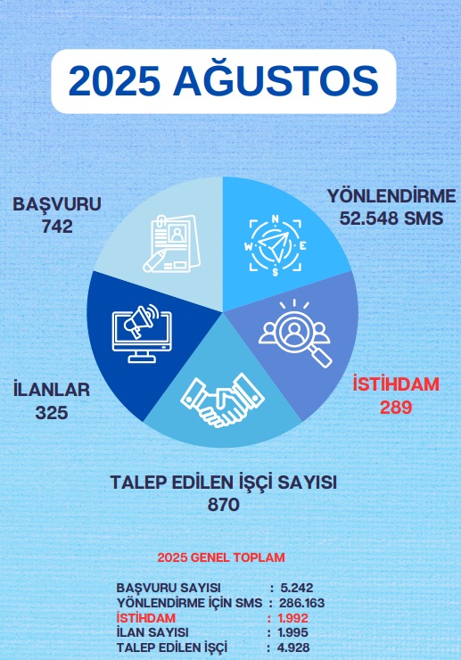 Kayseri Kariyer Merkezi, öte yandan 2025’in ilk sekiz ayında da büyük bir özveri ile istihdama aracılık hizmeti gerçekleştirdi. Bu çerçevede 286 bin 163 SMS yönlendirmesi, 5 bin 242 başvuru sayısı, bin 995 ilan sayısı ve 4 bin 928 talep edilen işçi sayısını yöneten Kayseri Kariyer Merkezi, toplam bin 992 vatandaşın da istihdamına aracılık etti.