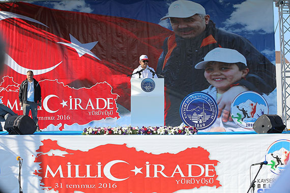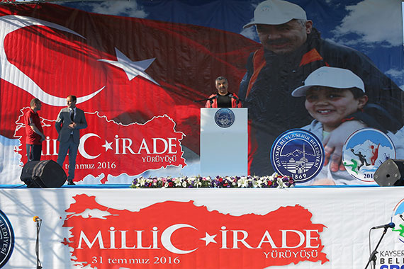 Büyükşehir Belediyesi Spor A.Ş. tarafından düzenlenen Milli İrade Yürüyüşü Talas Yamaç Paraşütü İndirme Alanı'nda başladı. Yürüyüşe, Çevre ve Şehircilik Bakanı Mehmet Özhaseki ve Büyükşehir Belediye Başkanı Mustafa Çelik'in yanı sıra Vali Süleyman Kamçı, Enerji ve Tabi Kaynaklar Eski Bakanı Taner Yıldız, Kayseri Milletvekili İsmail Tamer, çok sayıda bürokrat, ilçe belediye başkanları ve vatandaşlar katıldı.