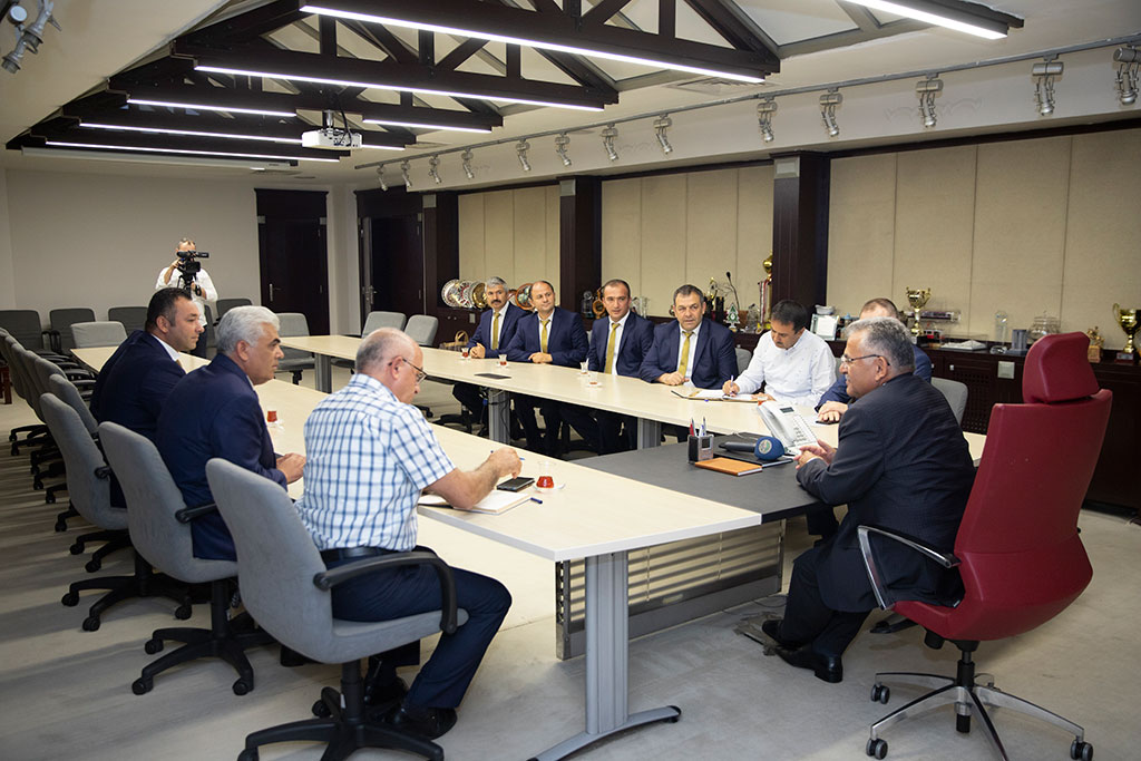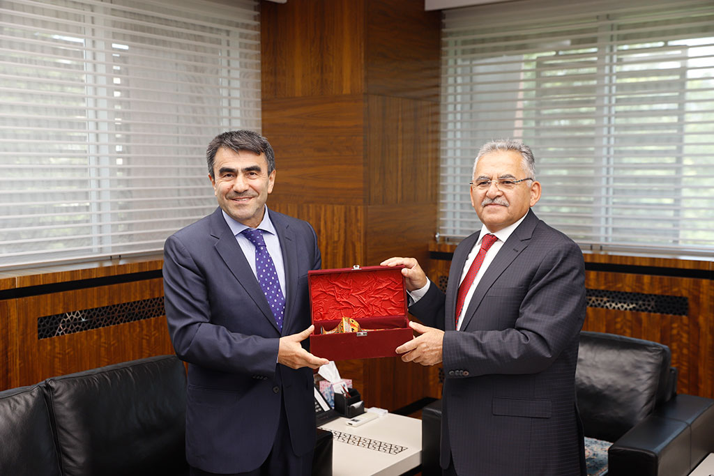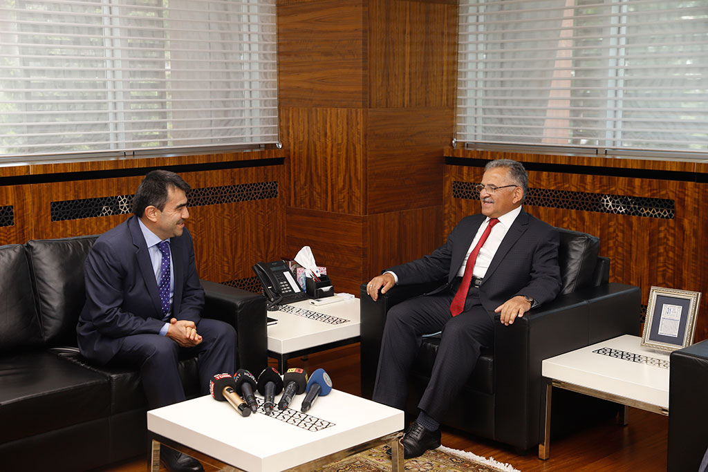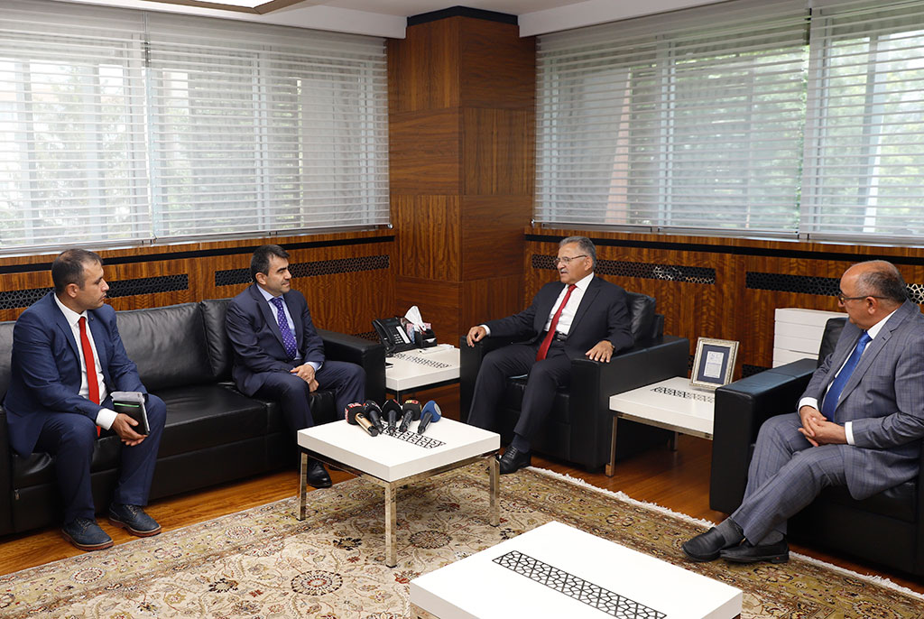 Basın İlan Kurumu Genel Müdürü Yakup Karaca ile Kayseri Otobüsçüler Esnafı Odası Başkanı Hayrullah Şahin Büyükşehir Belediye Başkanı Memduh Büyükkılıç’ı ziyaret etti. Başkan Büyükkılıç, ziyaretlerde Kayseri’deki birlik beraberliğin önemini vurguladı. Basın İlan Kurumu Genel Müdürü Yakup Karaca, Büyükşehir Belediye Başkanı Dr. Memduh Büyükkılıç’a bir nezaket ziyaretinde bulundu. Ziyarete Kayseri Gazeteciler Cemiyeti Başkanı Veli Altınkaya da katıldı. Gazetecilikle ilgili karşılıklı görüş alışverişinin yapıldığı ziyarette, Kayseri basınının yaklaşımı ve Kayseri’deki birlik beraberliğin altını çizen Başkan Büyükkılıç, “Kayseri’de şükürler olsun ki gazeteciler bir bakıma kamu hizmeti mantığı ve sorumluluk anlayışı içerisinde habercilik örneği sergileyerek görevlerini yapıyorlar. Kayseri ayrıca; kamu, özel, yerel yönetim dayanışmasını en güzel sergileyen şehirdir. Bu şehirde hep güzellikler konuşulur. Biz de bunun bereketini yaşıyoruz. Kayseri olarak şanslı ve avantajlıyız” dedi. OTOBÜSÇÜLER ESNAFI ODASI YENİ YÖNETİMİNDEN ZİYARET Büyükşehir Belediye Başkanı Memduh Büyükkılıç’ı Kayseri Otobüsçüler Esnafı Odası Başkanlığına seçilen Hayrullah Şahin ve oda yönetimi de ziyaret etti. Başkan Büyükkılıç yeni yönetime başarılar diledi ve şehrimizdeki toplu ulaşım hizmetinin en güzel şekilde verilmesi için el birliği ile çalışacaklarını kaydetti.