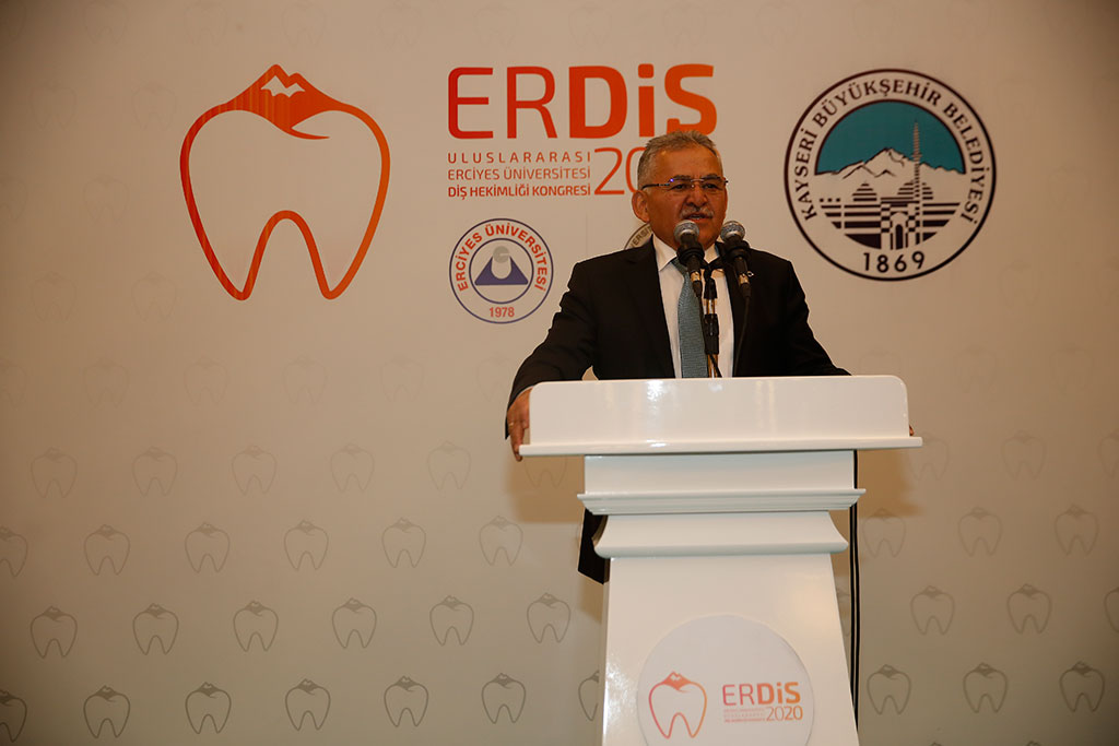 Kayseri Büyükşehir Belediye Başkanı Dr. Memduh Büyükkılıç, Erciyes Üniversitesi Diş Hekimliği Kongresi’ne katılan hekimlerle Erciyes Kardanadam Tesisleri’nde bir araya geldi. Burada yaptığı konuşmada Kayseri ile ilgili bilgiler veren Başkan Büyükkılıç, Kayseri’nin sadece Kayseri’den ibaret olmadığını ve bölgesindeki yaklaşık 3 milyon nüfusa hitap ettiğini söyledi. Büyükşehir Belediye Başkanı Dr. Memduh Büyükkılıç, Erciyes Kardanadam Tesisleri’nde diş hekimlerine hitap etti. Konuşmasına Erciyes’i tanıtarak başlayan Başkan Büyükkılıç, Erciyes’in uluslararası standartta 18 mekanik tesisi ve 100 km kayak pisti ile Türkiye’de örneği olmayan bir kış turizm merkezi olduğunu belirtti. Kayseri’nin cazibe merkezi olduğunu ve çevre illerle birlikte yaklaşık 3 milyonluk bir nüfusa hitap ettiğini dile getiren Başkan Büyükkılıç, “Büyük şehirlerin konforunu yaşatan ama büyük şehirlerin sıkıntısını yaşatmayan bir şehiriz” dedi. Kayseri’nin hayırsever özelliğine de vurgu yapan Başkan Büyükkılıç, “Kayseri’nin ‘Hayrın kadar konuş’ anlayışıyla hayırda yarışan bir şehir olması bizleri gururlandırıyor. Böyle bir şehirde belediye başkanlığı yapmaktan onur duyuyorum” diye konuştu. Gecede Başkan Memduh Büyükkılıç’a teşekkür belgesi takdim edildi.
