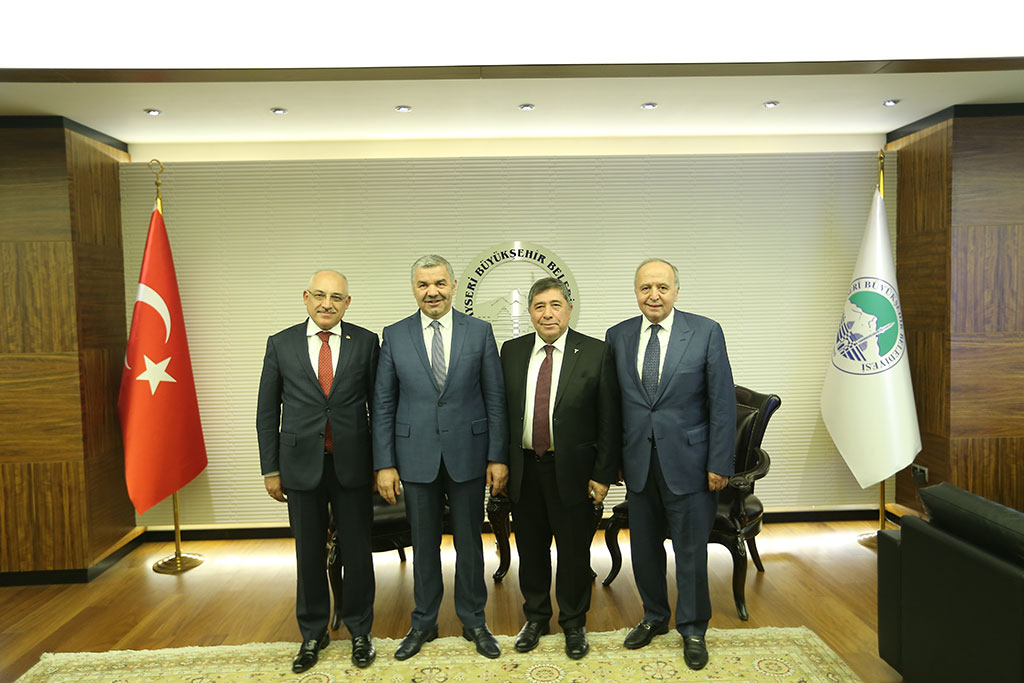 Nisan Ayı İhracat Rakamlarını açıklamak için Kayseri’ye gelen Türkiye İhracatçılar Meclisi (TİM) Başkanı Mehmet Büyükekşi ve yönetim kurulu üyeleri Büyükşehir Belediye Başkanı Mustafa Çelik’i ziyaret etti. Büyükekşi, Kayseri’nin Türkiye sanayisinin öncü şehirlerinden olduğunu belirtti ve sanayicinin halinden anlayan bir Büyükşehir Belediye Başkanı’na sahip olmasının önemini vurguladı. Büyükşehir Belediye Başkanı Mustafa Çelik, Nisan ayı ihracat rakamlarını açıklamak için Kayseri’ye gelen TİM Başkanı Mehmet Büyükekşi ve yönetim kurulu üyeleri ile bir süre makamında görüştü. Sanayicinin halinden anlayan kişilerin üst düzey görevlerde olmasını istediklerini ifade eden Büyükekşi, bu anlamda Başkan Mustafa Çelik’i Büyükşehir Belediye Başkanlığı’nda görmekten mutlu olduklarını dile getirdi. Kayseri’nin özellikle sanayisi açısından Türkiye’de öncülük etmiş bir şehir olduğunu vurgulayan Mehmet Büyükekşi, “İlk uçak fabrikası kurulmasından bugüne kadar, mobilya kümelenmesi, elektrik ve elektronikte almış olduğu yol gerçekten çok önemli” dedi. Doğru planlamayla hedefe daha çok yaklaşıldığını ifade eden Büyükekşi, Başkan Çelik ‘in liderliğinde güzel hedeflerin yakalanacağını vurguladı. Son zamanlarda yerli ve milli üretim akımı olduğunu ve bu akımın başında savunma sanayinin geldiğini belirten TİM Başkanı Büyükekşi, “Siz zaten yüksek katman değerlerin önemini bizden daha iyi biliyorsunuz. O yüzden de Kayseri’de lojistik, altyapı ve insan kaynağı olarak güzel bir potansiyel var. İnşallah sizlerle birlikte güzel şeyler olur” dedi. Büyükşehir Belediye Başkanı Mustafa Çelik de, bir devletin ayakta durması ve daha güçlü olması için sanayicinin yetişmesi, istihdam oluşması, katma değer ve vergi üretilmesi gerektiğini belirtti. Kayseri hakkında da bilgi veren Başkan Çelik, “Üç tane üniversitemiz, üç organize sanayi bölgemiz, serbest bölgemiz, teknoloji geliştirme bölgemiz var. Üniversitemiz dört oluyor. Bu unsurlarla çok daha iyi yerlere geleceğiz” diye konuştu.
