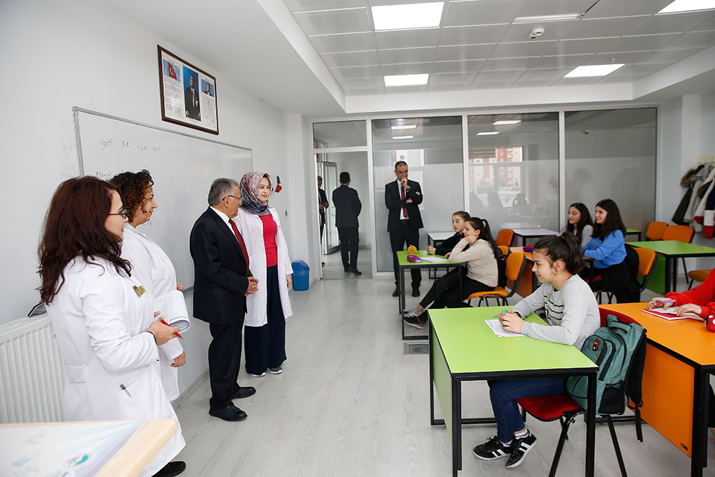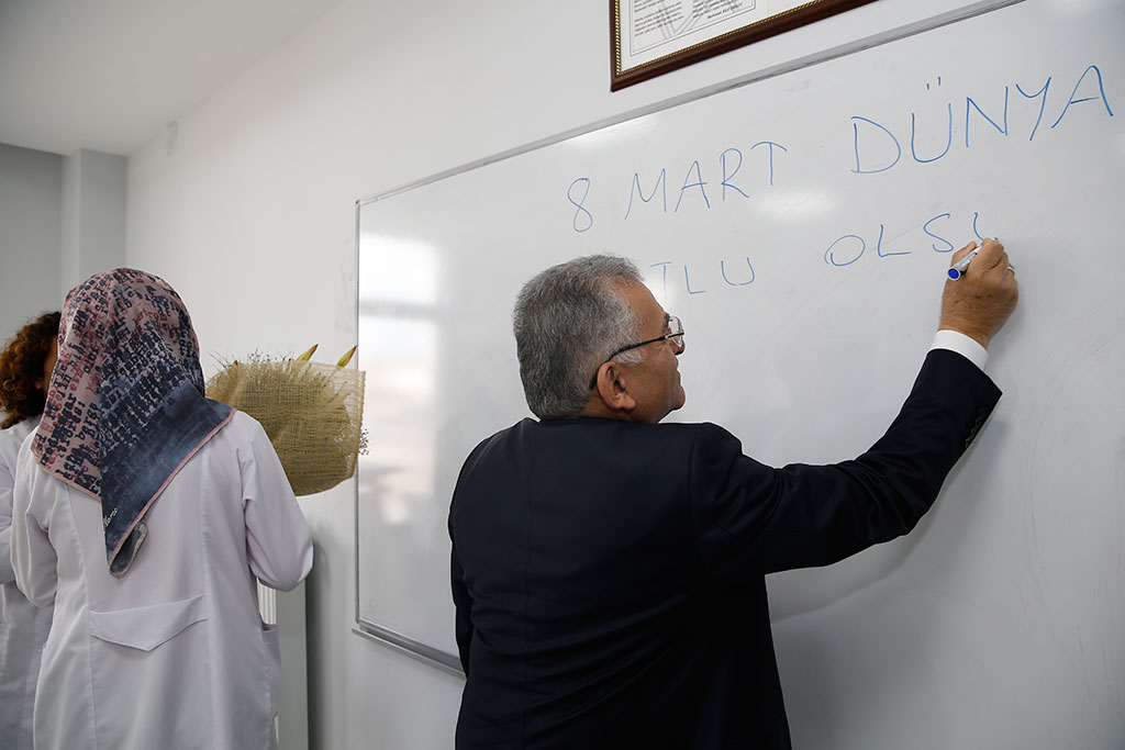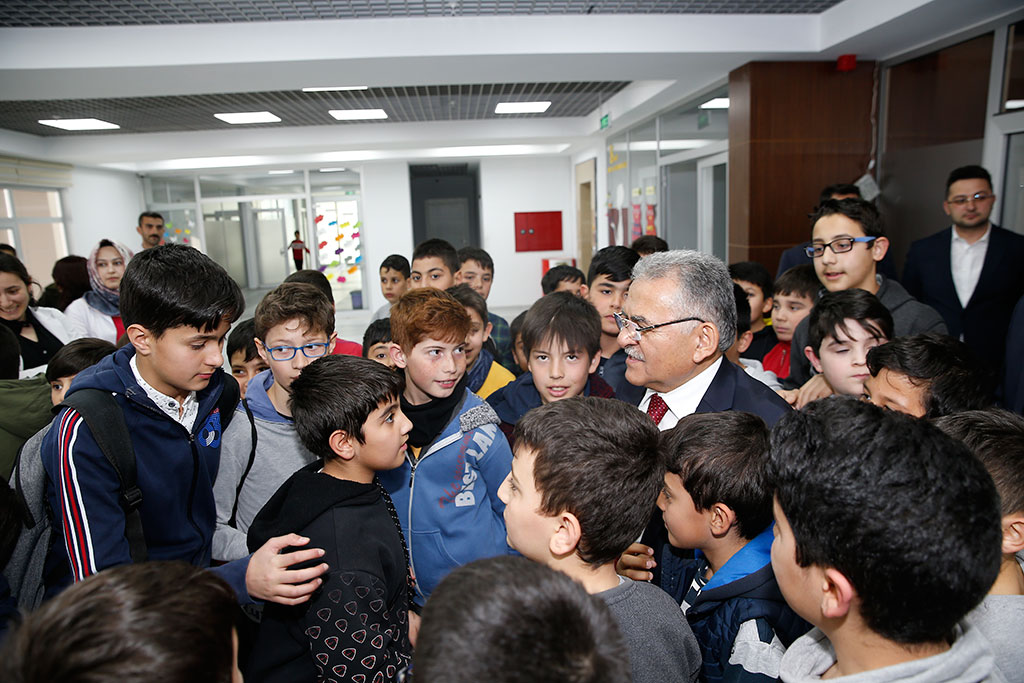 Kayseri Büyükşehir Belediyesi’nin eğitim ve kültür yatırımları hız kesmeden devam ediyor. Büyükşehir Belediye Başkanı Dr. Memduh Büyükkılıç, aynı anda 500 kişiye hizmet verecek olan ve Beyazşehir Sosyal Yaşam Merkezi’nin son katında yapımı devam eden kütüphanenin son aşamaya geldiğini ve yakında hizmete gireceğini açıkladı. Büyükşehir Belediye Başkanı Dr. Memduh Büyükkılıç, Beyazşehir Sosyal Yaşam Merkezi’nde incelemelerde bulundu. Sosyal Yaşam Merkezi’nde Genç KAYMEK birimi tarafından açılan kursları ziyaret eden Başkan Memduh Büyükkılıç, sınıfları ziyaret ederek öğrencilerle sohbet etti. Öğrencilerin taleplerini alan Başkan Büyükkılıç, teneffüslerini oyun odalarında geçiren öğrencilerle de bir araya geldi. ÇOCUK KÜTÜPHANESİ DE BULUNACAK Büyükşehir Belediye Başkanı Memduh Büyükkılıç, Beyazşehir Sosyal Yaşam Merkezi’nin son katına yapılan kütüphanede de incelemelerde bulundu. Çalışmaların son durumunu yerinde gören Başkan Memduh Büyükkılıç, kütüphane yapımının son aşamaya geldiğini açıkladı. Beyazşehir Sosyal Yaşam Merkezi’ndeki kütüphanenin aynı anda 500 kişiye hizmet vereceğini dile getiren Başkan Memduh Büyükkılıç, “Bu kütüphanemizde 15 bin kitap bulunacak. Kütüphanemizde ayrıca 0-6 yaş grubuna hitap edecek olan çocuk kütüphanesi de yer alacak. Eğitim konusundaki gayretlerimizi sürdüreceğiz. Bölgenin kütüphane taleplerini de karşılamış olacağız. Bölgemiz için çalışmaların hayırlı olmasını diliyorum” dedi. KADINLAR GÜNÜNÜ KUTLADI Büyükşehir Belediye Başkanı Memduh Büyükkılıç, Beyazşehir Sosyal Yaşam Merkezi'nde KAYMEK tarafından yetişkinler için açılan kursları da ziyaret etti. Bu sırada kadın öğretmenler ve çalışanların 8 Mart Dünya Kadınlar Günü'nü kutlayan Başkan Büyükkılıç, derslikteki tahtaya "8 Mart Dünya Kadınlar Günü kutlu olsun" yazdı.