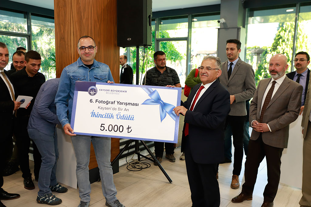 Büyükşehir Belediyesi tarafından düzenlenen “Kayseri’de Bir An” konulu fotoğraf yarışmasının ödül töreni gerçekleştirildi ve sergilenmeye değer fotoğraflardan oluşan serginin açılışı yapıldı. Serginin açılışını Büyükşehir Belediye Başkanı Memduh Büyükkılıç gerçekleştirdi. “Kayseri’de Bir An” konulu fotoğraf yarışmasına 697 fotoğrafçı toplam 2 bin 410 fotoğrafla katıldı. Yarışma jürisi tarafından titizlikle yapılan inceleme sonucu derece alanlara ödülleri Büyükşehir Belediyesi Sergi Salonu’nda yapılan törenle verildi. Büyükşehir Belediyesi Meclis Toplantısı öncesi yapılan törene Büyükşehir Belediye Başkanı Memduh Büyükkılıç’ın yanı sıra ilçe belediye başkanları ile meclis üyeleri katıldı. Yarışmada dereceye girenlere ödüllerini Başkan Memduh Büyükkılıç ile Kocasinan belediye Başkanı Ahmet Çolakbayrakdar verdi. Yarışmanın birinciliğini “Gölgeler” adlı eseriyle Adem Eroğlu elde ederken, “Trenden Erciyes” fotoğrafıyla Yasin Çetin ikinci, “Flamingolar” fotoğrafıyla yine Adem Eroğlu üçüncü oldu. Mansiyon ödüllerini ise Ahmet Burak Güralp ve Abdullah Koç kazandı. Yarışmaya katılan 50 fotoğraf da sergilemeye layık görüldü. Yarışmanın birincisine altın madalya ve 6 bin TL, ikinciye gümüş madalya ve 5 bin TL, üçüncüye bronz madalya ve 4 bin TL, mansiyona layık görülen eserlere biner TL, sergilenmeye layık görülen fotoğraflara ise 250’şer TL ödül verildi. Ödül töreninin ardından dereceye layık görülen eserler ile sergilenmeye değer görülen eserlerden oluşan serginin açılışı gerçekleştirildi.
