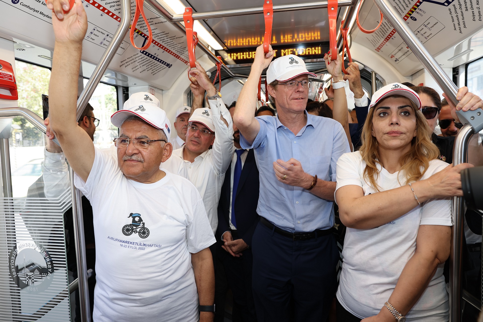 Büyükkılıç ve Büyükelçi Meyer-Landrut ile tramvaya binerken, Büyükelçi Vacek ve