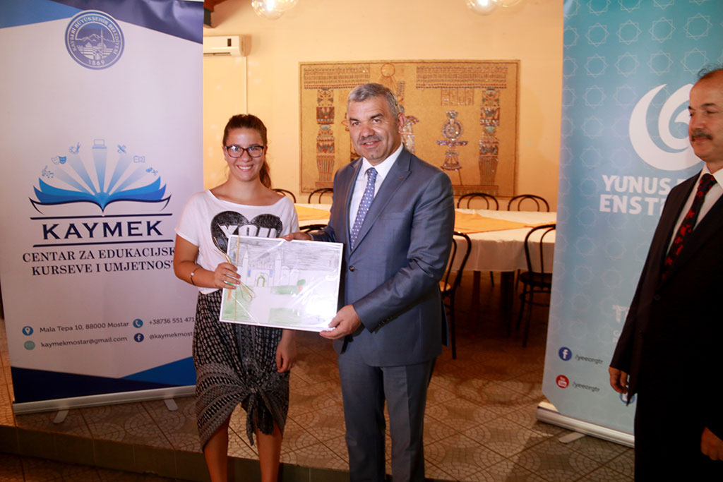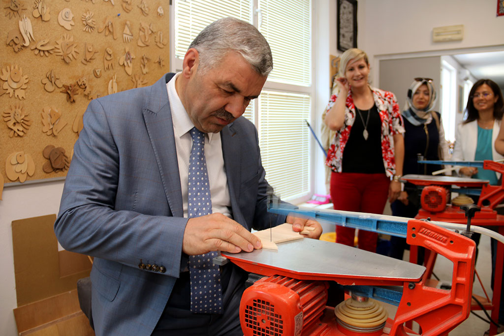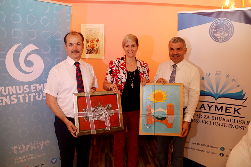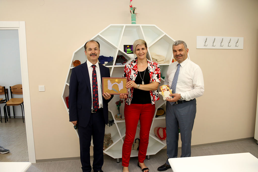 Büyükşehir Belediye Başkanı Mustafa Çelik, Mostar’da katıldığı sergi açılışının yanı sıra bir dizi ziyaret ve temaslarda da bulundu. Başkan Çelik, Mostar’daki KAYMEK Merkezi kanalıyla destek verdikleri Egipatko Selo Yetimhanesi ile Los Rosales Engelliler Kompleksi’ni de ziyaret etti. Başkan Çelik, engelliler ve yetimlerin maddi manevi yanlarında olduklarını kaydetti. Büyükşehir Belediye Başkanı Mustafa Çelik, Mostar’da öncelikle Türkiye’nin Mostar Başkonsolosu Zerrin Kandemir’i ziyaret etti. Başkonsolos Kandemir ile bir süre görüşen Başkan Çelik, daha sonra Egipatko Selo Yetimhanesi’ne geçti. Ziyarete Başkonsolos Zerrin Kandemir ile Yunus Emre Enstitüsü Genel Başkanı Prof. Dr. Şeref Ateş de katıldı. “KAYSERİ’NİN YAPTIKLARI BAŞKA BELEDİYELERE DE ÖRNEK OLSUN” Egipatko Selo Yetimhanesi’ni gezen ve burada verilen hizmetlerle ilgili bilgi alan Başkan Mustafa Çelik, KAYMEK ile yetimhanede de kurs desteği verdiklerini söyledi. Mostar’daki yetimlerin maddi ve manevi olarak yanlarında olduklarını vurgulayan Başkan Çelik, “Sınırlarımızın dışında da gönül belediyeciliği yapmanın mutluluğunu yaşıyoruz” dedi. Yunus Emre Enstitüsü Genel Başkanı Prof. Dr. Şeref Ateş de Kayseri Büyükşehir Belediyesi’ne teşekkür ederek, “Kayseri’nin yaptıklarının başka belediyelere de örnek olmasını diliyorum. KAYMEK ile birlikte geniş kesimlere hitap ediyoruz. Bu faaliyetlerin inşallah devamını sağlayacağız. İki yıldır 1000’den fazla insana ulaştık. Sadece Boşnaklar değil Hırvat ve Sırplar da bu kurslara katılıyor. Böylece barış kültürünün yaygınlaşması için ciddi bir altyapı oluşuyor. Bu kurslar vasıtasıyla Türk kültürü daha etkin bir şekilde kendini gösteriyor” diye konuştu. Mostar Başkonsolosu Zerrin Kandemir de Kayseri Büyükşehir Belediyesi ve Yunus Emre Enstitüsü’ne verdikleri hizmet nedeniyle teşekkür etti. Bu işbirliği sayesinde Kayseri ve Türkiye’nin daha çok insan tarafından tanındığını ifade eden Kandemir, “İnsanların kalplerini kazanma yolunda bu projeler bizlere çok yardımcı oluyor. Eminim bu işbirliği çok daha güzel projelerle devam edecek” dedi. Büyükşehir Belediye Başkanı Mustafa Çelik’e ziyareti anısına Egipatko Selo Yetimhanesi’nde kalan çocukların kendi çizdikleri resimler hediye edildi. “KAPIMIZ BÜYÜK KALPLİ İNSANLARA AÇIK” Büyükşehir Belediye Başkanı Mustafa Çelik, Yunus Emre Enstitüsü Genel Başkanı Prof. Dr. Şeref Ateş ile birlikte Mostar’daki Los Rosales Engelliler Kompleksi’ni de ziyaret etti. Başkan Çelik, Engelliler Kompleksi içindeki meslek atölyelerini gezdi ve zihinsel engellilere yönelik eğitimlerle ilgili bilgi aldı. Başkan Çelik, Mostar’daki engelliler kompleksine gerek eğitim gerekse malzeme desteği verdiklerini söyledi. Los Rosales Engelliler Kompleksi Müdiresi de Başkan Mustafa Çelik’e sağlanan tüm destekler nedeniyle teşekkür ederek, Kayseri heyetini ağırlamaktan duydukları memnuniyeti dile getirdi ve “Büyük kalpli insanlara kapımız her zaman açık” ifadelerini kullandı.