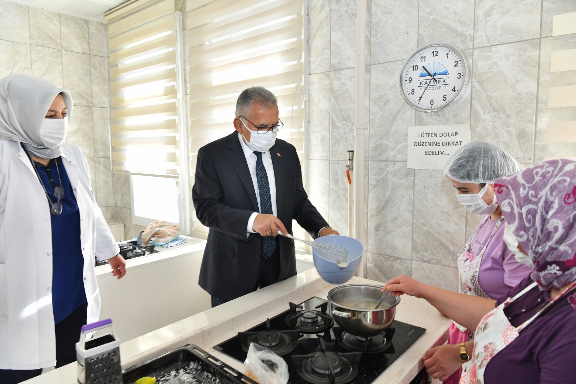 Öte yandan Başkan Büyükkılıç, KAYMEK mutfağına girerek,