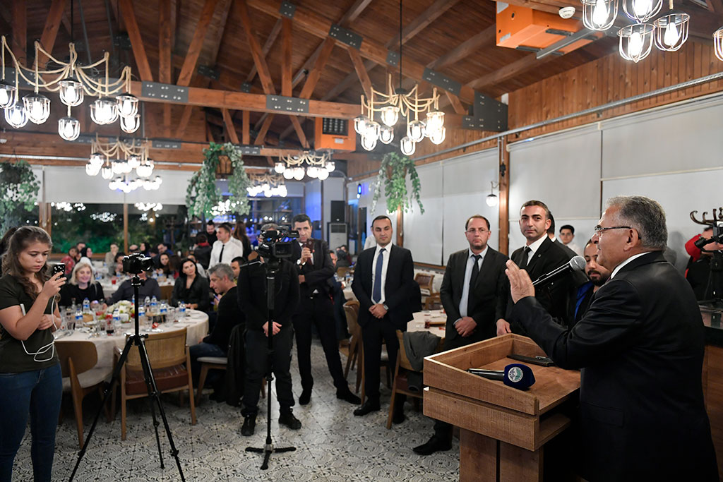 Kayseri Büyükşehir Belediyesi tarafından düzenlenen Gastronomi Turizmi Çalıştayı, gastronomi yazarları ve şefler tarafından büyük ilgi gördü. Büyükşehir Belediye Başkanı Dr. Memduh Büyükkılıç, çalıştaya il dışından katılan misafirleri ile Erguvan Tesisleri’nde bir araya gelerek Kayseri mutfağının eşsiz olduğunu belirtti. Erguvan Tesisleri’nde verilen yemeğe Büyükşehir Belediye Başkanı Dr. Memduh Büyükkılıç’ın yanı sıra Önceki Dönem Enerji ve Tabii Kaynaklar Bakanı Taner Yıldız, Kayseri Üniversitesi Rektörü Prof. Dr. Kurtuluş Karamustafa, gastronomi yazarları ve şefler katıldı. Yemek sırasında Şef Duran Özdemir, sucuk ve pastırmanın Kayseri’deki yeri ve tarihçesi hakkında bilgi vererek farklı tekniklerle sucuk pişirdi. Gecede konuşan Büyükşehir Belediye Başkanı Memduh Büyükkılıç, Kayseri mutfağının zenginliğini vurgulayarak, “Kayseri’nin tatları bir başka güzel. Bunu iddiayla söylüyorum. Değişik medeniyetlere ev sahipliği yapmış Kayseri’deki tatlar hem çeşitlilik hem zenginlik açısından eşsiz güzelliğe sahip. Kayseri’de sizleri ağırlamaktan onur duyduk. Şehrimizin hep güzelliklerle anılmasını arzu ediyoruz. Kayseri değerlerine bağlı, geçmişi geleceğe taşıyan bir şehir” diye konuştu. Başkan Memduh Büyükkılıç, gece boyunca misafirleriyle yakından ilgilenerek Kayseri mutfağı ile ilgili görüşlerini aldı.