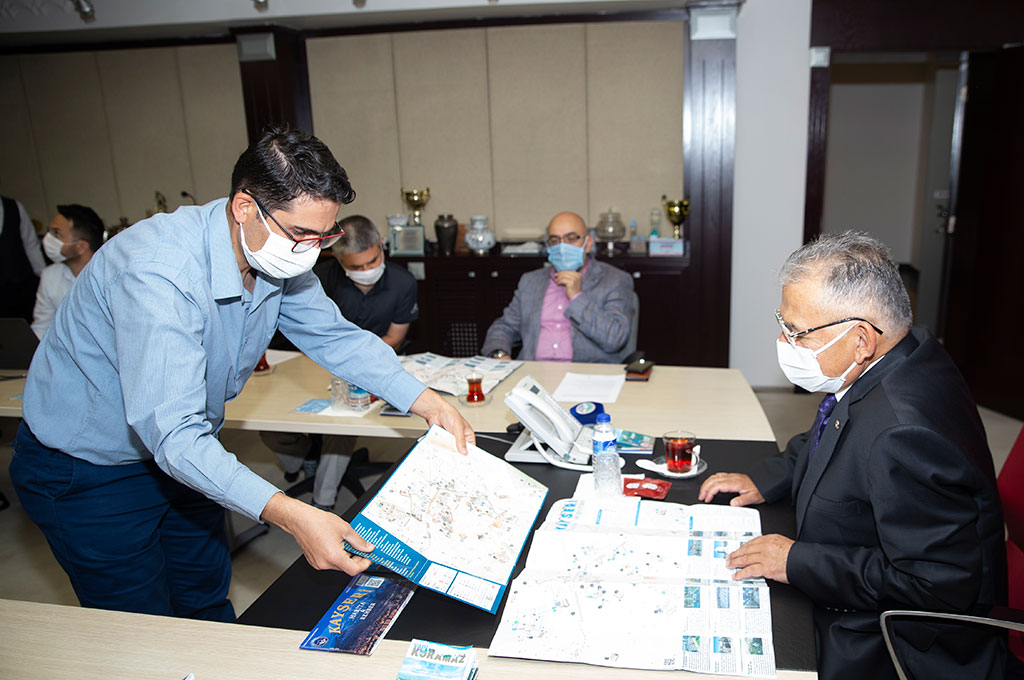 Kayseri Büyükşehir Belediye Başkanı Dr. Memduh Büyükkılıç, ilgili daire başkanlarıyla Kayseri’nin Turizm Haritasını yeniden belirlenmesine yönelik bir toplantı gerçekleştirdi. Tarihi ve doğal güzellikleri ile önemli bir turizm şehri olan Kayseri’de şehrin turizm haritası yeniden çiziliyor. Kayseri Büyükşehir Belediye Başkanı Dr. Memduh Büyükkılıç daire başkanlarıyla birlikte Turizm Haritaları Toplantısı gerçekleştirdi. Toplantıda Kayseri’deki turizm haritası yeniden tasarlanarak şehrin turizm potansiyelini arttıracak hamleler üzerinde değerlendirmelerde bulundu. Ayrıca, UNESCO Dünya Mirası Geçici Listesi’nde yer alan Koramaz Vadisi’nin de turizm haritası üzerinde çalışıldı. 2020 yılını yatırım ve turizm yılı olarak belirleyen Büyükşehir Belediye Başkanı Memduh Büyükkılıç, Kayseri’nin turizmden hak ettiği payı alabilmesine yönelik çalışmaları aralıksız sürdürmeye devam edecek.