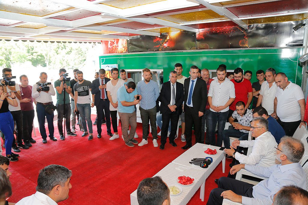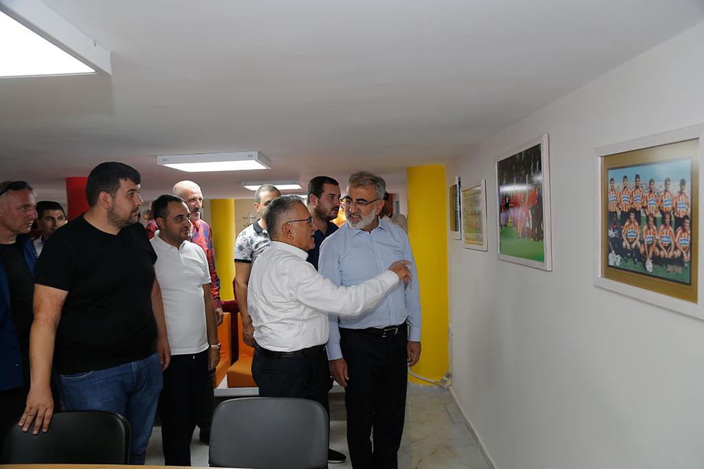 Kayseri Büyükşehir Belediye Başkanı Dr. Memduh Büyükkılıç, Önceki Dönem Enerji ve Tabi Kaynaklar Bakanı Taner Yıldız ile birlikte Kapalı Kale Kayserispor Taraftarlar Derneği’ni ziyaret etti. Başkan Büyükkılıç, ziyarette “El ele gönül gönüle Kayserispor’umuza sahip çıkmaya ve destek vermeye devam edeceğiz” dedi. Başkan Büyükkılıç, Kayserispor için başlatılan “Kırmızıya Sarı Ol” kampanyasına da değindi ve kampanyaya destek istedi. Mimarsinan Parkı’nda bulunan Büyükşehir Belediyesi’ne ait depo gerekli düzenlemeler yapılarak Kapalı Kale Kayserispor Taraftarlar Derneği’nin kullanımına sunuldu. Büyükşehir Belediye Başkanı Dr. Memduh Büyükkılıç, Önceki Dönem Enerji ve Tabi Kaynaklar Bakanı Taner Yıldız ile birlikte Kapalı Kale Taraftarlar Derneği’ni yeni dernek merkezinde ziyaret etti. Kayseri’nin havasını soluyan herkesin Kayserispor’a destek vermesi gerektiğini ifade eden Başkan Memduh Büyükkılıç, “Kayserispor olmazsa olmazımız. Kayseri’mizin en önemli markası. Bu anlamda her zaman yanındayız. Sıkıntısı sıkıntımız, sevinci sevincimiz. Şehrimizi en iyi şekilde temsil etmek için gayret gösteren Kayserispor yönetimine, hocamıza ve oyuncularımıza teşekkür ediyorum. Takımımızı diri tutan taraftarlarımız. Taraftarın motivasyonu çok önemli. Kayseri’nin havasını soluyan, bu şehrin imkanlarından faydalanan herkesin Kayserispor’a sahip çıkması lazım” dedi. “Kırmızıya Sarı Ol” kampanyasına da değinerek destek isteyen Başkan Büyükkılıç, “Her kardeşimizin gerekli desteği vermesi gerekir. Biz de 100 tişörtü aldık ve çekilişle taraftarlara dağıtıyoruz. Bu arada bakarsınız kampanyaya bir destek daha veririz” diye konuştu. Kapalı Kale taraftarlar Derneği’ni verdikleri yerle ilgili de konuşan Başkan Büyükkılıç, “Kayserispor’un en güzel şekilde temsil edilmesi bizim için önemliydi. Bunu sağladık. El ele gönül gönüle Kayserispor’umuza her yönüyle sahip çıkmaya devam edeceğiz” dedi. Önceki Dönem Enerji ve Tabi Kaynaklar Bakanı Taner Yıldız da böylesi güzel bir mekanı ve güzel bir uğrak yerini taraftarlara kazandırdığı için Büyükşehir Belediye Başkanı Memduh Büyükkılıç’a teşekkür etti. Kayserispor’a herkesin omuz vermesi gerektiğini ifade eden Yıldız, “Her birimiz bu yükü omuzlamalıyız. Süper Ligde Kayserispor’un kendisine yakışır yere gelmesi için çalışmalarımız devam ediyor. Büyüyen Kayseri’nin küçülen sportif faaliyetleri olmaz. Taraftarlarımızın da desteği ile Kayserispor hak ettiği sonuçları alacaktır” diye konuştu. BAKAN YILDIZ’DAN KAMPANYAYA DESTEK Bu arada Başkan Memduh Büyükkılıç, Bakan Yıldız’dan da Kayserispor için başlatılan kampanyaya 100 tişört ile destek istedi. Bakan Yıldız da Başkan Büyükkılıç’ın isteğine olur vererek kampanyaya 100 tişört ile katıldı. Kapalı Kale Taraftarlar Derneği Başkanı Ahmet Dirgenali de yaptığı açıklamada yeni dernek binasının tahsisi için Başkan Memduh Büyükkılıç’a teşekkür etti. Taraftarlara çok güzel bir ortam sağlandığını ifade eden Dirgenali, “Biz de buna layık olarak Kayserispor’umuza yakışacak işler yapacağız. Forma kampanyasına katılımınız için de çok teşekkür ediyoruz” dedi.