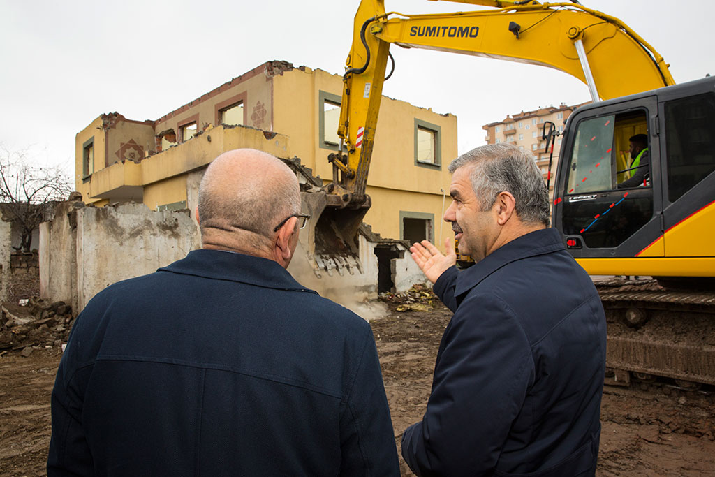 Türkiye’ye örnek olan Kayseri belediyeciliği, olaysız, engelsiz, barikatsız, polisin güvenlik tedbiri almadığı bir yıkım daha gerçekleştirdi. Büyükşehir Belediyesi, Orgeneral Hulusi Akar Bulvarı adını verdiği Yıldırım Beyazıt Mahallesi, Tavlusun Caddesi’nde yıkıma başladı. Yolun genişleme alanındaki mülklerin sahipleriyle tamamen uzlaşılarak yapılan yıkımda tek bir olay yaşanmadı. Büyükşehir Belediye Başkanı Mustafa Çelik, Orgeneral Hulusi Akar Bulvarı’nın 50 metre genişliğinde Avrupa standartlarında bir yol olacağını söyledi. Büyükşehir Belediye Başkanı Mustafa Çelik, Mustafa Kemal Paşa Bulvarı ile 30 Ağustos Bulvarı arasındaki bölümü büyük bir hızla devam eden Orgeneral Hulusi Akar Bulvarı’nın devamı olan Tavlusun Caddesi’ndeydi. Bulvarın her iki yanında yer alan ve yolun genişleme alanında bulunan mülklerin yıkımına Başkan Mustafa Çelik bizzat katıldı. AK Parti İl Başkanı Hüseyin Cahit Özden ve Talas Belediye Başkanı Mustafa Palancıoğlu’nun da katıldığı yıkım çalışmalarının hızla devam edeceği belirtildi. Büyükşehir Belediye Başkanı Mustafa Çelik, Orgeneral Hulusi Akar Bulvarı’nın Kemal Paşa Bulvarı’ndan Mimarsinan OSB’ye çıkan Malatya Yolu’na kadar giden 14 km uzunluğunda bir bulvar olduğunu söyledi. Yıkım çalışmalarına kısa sürede başlamış olmalarını uzlaşı kültürüne bağlayan Başkan Çelik, “Normalde buradaki sistem imar düzenlemeleri ve istimlak çalışmalarıyla plansız ve çürük yapıların belediyeye geçmesi şeklinde olur. Ancak bu işler 4-5 sene sürer. Gerek İmar, gerekse Fen İşleri Daire Başkanlığımızın çalışmalarıyla burada kısa sürede hukuki işlemleri bitirdik. Tüm hak sahiplerinin rızaları ile mülklerinin bedelini hak geçmeyecek şekilde ödedik ve yıkıma başladık. İnşallah hızlı bir şekilde yıkım işlemlerini tamamlayarak yola başlayacağız. Burası yeni planlanan bir yol olduğu için Avrupa standartlarında 50 metrelik bir yol şeklinde planladık. Yaya, bisikletli, lastik tekerlekli ve demir tekerlekli raylı sistem araçları olmak üzere hareketliliği sağlayan tüm unsurları düşündük. İnşallah kısa sürede tamamlayacağız” dedi.