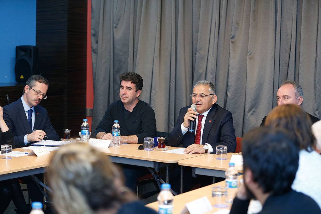 Kayseri Büyükşehir Belediye Başkanı Dr. Memduh Büyükkılıç, TÜRSAB bünyesindeki Türkiye’nin en büyük seyahat acentelerinin yöneticileriyle bir araya geldi. Kayseri’nin turizm değerlerini anlatan ve Kayseri’yi turizmde 1 numara yapmak için yaptıkları çalışmalar hakkında bilgi veren Başkan Büyükkılıç, seyahat acentelerinden gösterdikleri gayretlere güç vermelerini istedi. Büyükşehir Belediye Başkanı Dr. Memduh Büyükkılıç, Kayseri’yi turizmde hak ettiği yere getirmek için gayret gösterdiklerini söyledi. Türkiye’nin en büyük seyahat acentelerinin yöneticilerine Kayseri hakkında bilgi veren Başkan Büyükkılıç, en son gündeme gelen Büyük Bürüngüz’deki Türkiye’nin en büyük yeraltı şehrinden ve Koramaz Vadisi’ndeki zenginliklerden bahsetti. Kayseri’nin büyükşehirlerin konforunu yaşayan; ama misafirlere büyükşehirlerin sıkıntısını yaşatmayan bir şehir olduğunu ifade eden Başkan Büyükkılıç, Kayseri’nin aynı zamanda misafirperver ve hayırsever bir şehir olduğunu söyledi. Konuşmasında turizmi çok önemsediklerini vurgulayan Başkan Büyükkılıç, “Kayseri’yi bir Açıkhava müzesi olarak görüyoruz. İlçelerimiz başlı başına tarihi dokuyla bezenmiş durumda. Kalemiz bir gerdanlık gibi şehrimizin merkezinde. Cumhuriyet Meydanı’nda 360 derece döndüğünüzde 5 medeniyete ait eserleri dimdik ayakta görürsünüz” dedi. Konuklarına Erciyes’te yapılan yatırımları da anlatan Başkan Memduh Büyükkılıç, “Erciyes’te güzelliklere yeni güzellikler ekliyoruz. Kayak merkezi yanına yüksek irtifa kamp merkezi yapacağız. İki futbol sahasını yaptık. Gelecek yıl 8 saha daha yapacağız. İnanıyorum ki yüzlerce takımın en güzel şekilde kamp yapacağız bir merkezi kazandıracağız. Gerekli çalıştay ve kongrelerimizi de yaparak yüksek irtifa kamp merkezini tanıtacağız” diye konuştu. Sultansazlığı, Kapuzbaşı Şelaleleri, yılkı atları gibi değerlerden de bahseden Başkan Memduh Büyükkılıç, sağlık turizmini çok önemsediklerini de belirterek, “USHAŞ’la yaptığımız protokolle İstanbul ve Ankara’dan sonra üçüncü bürosunu Kayseri’de açmasının çalışmasını yapıyoruz. Ayrıca gastronomi turizminde hak ettiğimiz yerde değiliz. Onlarca medeniyete ev sahipliği yapmışız, onların tatlarıyla, kültürleriyle buluşmuşuz ve hoşgörünün merkezi olmuşuz” diye konuştu.