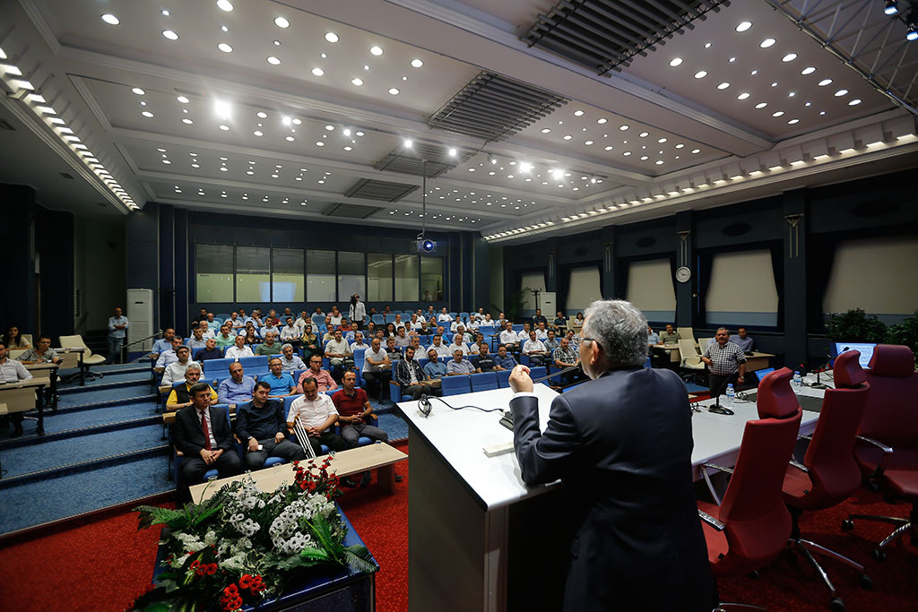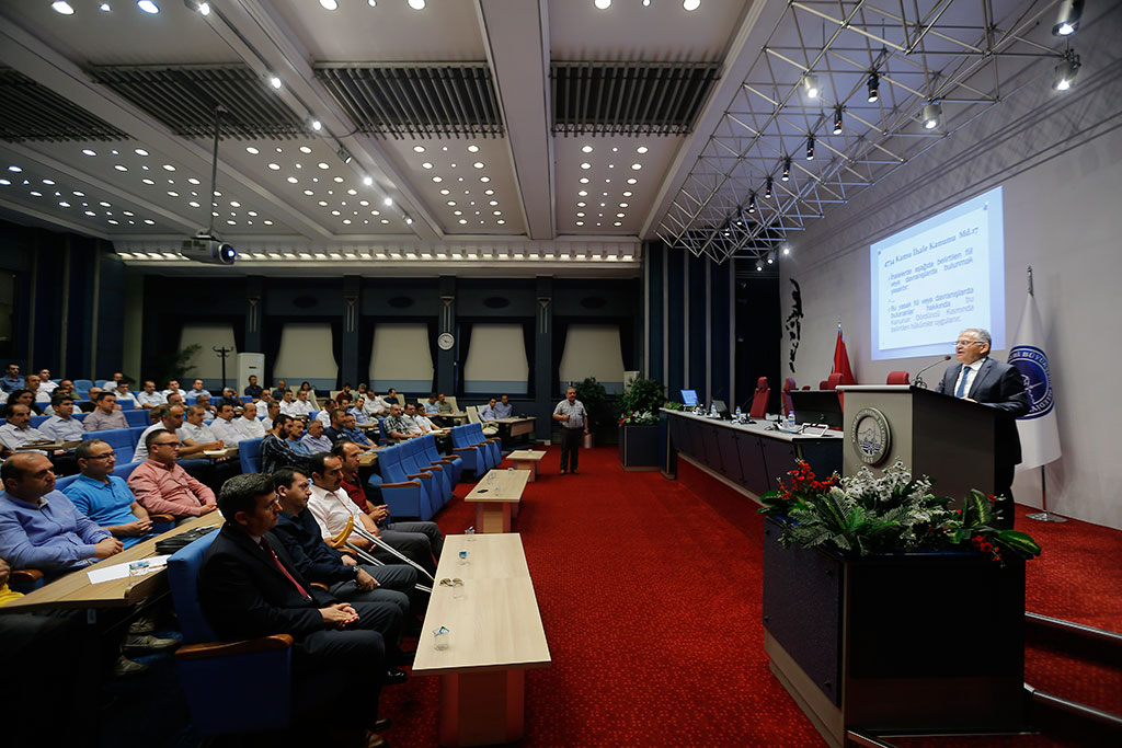 Kayseri Büyükşehir Belediye Başkanı Dr. Memduh Büyükkılıç, Büyükşehir Belediyesi ve iştirakleri ile ilçe belediyelerinde görev yapan personele yönelik ‘elektronik ihale’ konulu eğitim seminerine katıldı. Başkan Büyükkılıç, “Günün ihtiyaçlarına karşı mutlaka kendimizi yenilememiz ve konumumuzu gözden geçirmemiz gerekiyor. Yoksa günün değil, çağın gerisinde kalırız” diye konuştu. Büyükşehir Belediyesi İnsan Kaynakları Daire Başkanlığı tarafından düzenlen eğitim semineri Büyükşehir Belediyesi Meclis Salonu’nda yapıldı. Seminere konuşmacı olarak İçişleri Bakanlığı Başkontrolörü Osman Yenice katıldı. Yenice, elektronik ihale yönetmeliği hakkında bilgiler verdi. Kayseri Büyükşehir Belediye Başkanı Dr. Memduh Büyükkılıç da seminere katılarak personele hitap etti. Başkan Büyükkılıç, herkesin çağın ihtiyaçlarına göre kendisini yenilemesi gerektiğini belirtti. Elektronik ihalenin önemini de vurgulayan Başkan Büyükkılıç, “Kimse günümüz teknolojisini kullanmadan işe devam edemez. Devam etmek isterse günün değil, çağın gerisinde kalırız. O yüzden elektronik ortamla ilgili gerekli çalışmaları yapacağız” dedi. Konuşmasında Kayseri belediyeciliğinin dillere destan olduğunu vurgulayan Başkan Büyükkılıç, “Kayserimiz bir marka. Erciyesimiz bir marka. Mimar Sinan ve Seyyid Burhaneddin bir değer. Yüzlerce değeri olan bir şehrin yaşayanlarına hizmet etme şansına sahip olan bir ekibiz. Siz de fedakarca, şehrimizin insanını hizmet etmeyi ibadet bilen bir anlayış içerisinde çalışmalarınızı sürdürüyorsunuz” diye konuştu.
