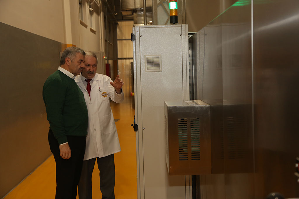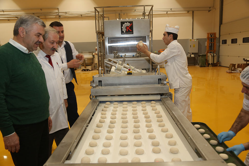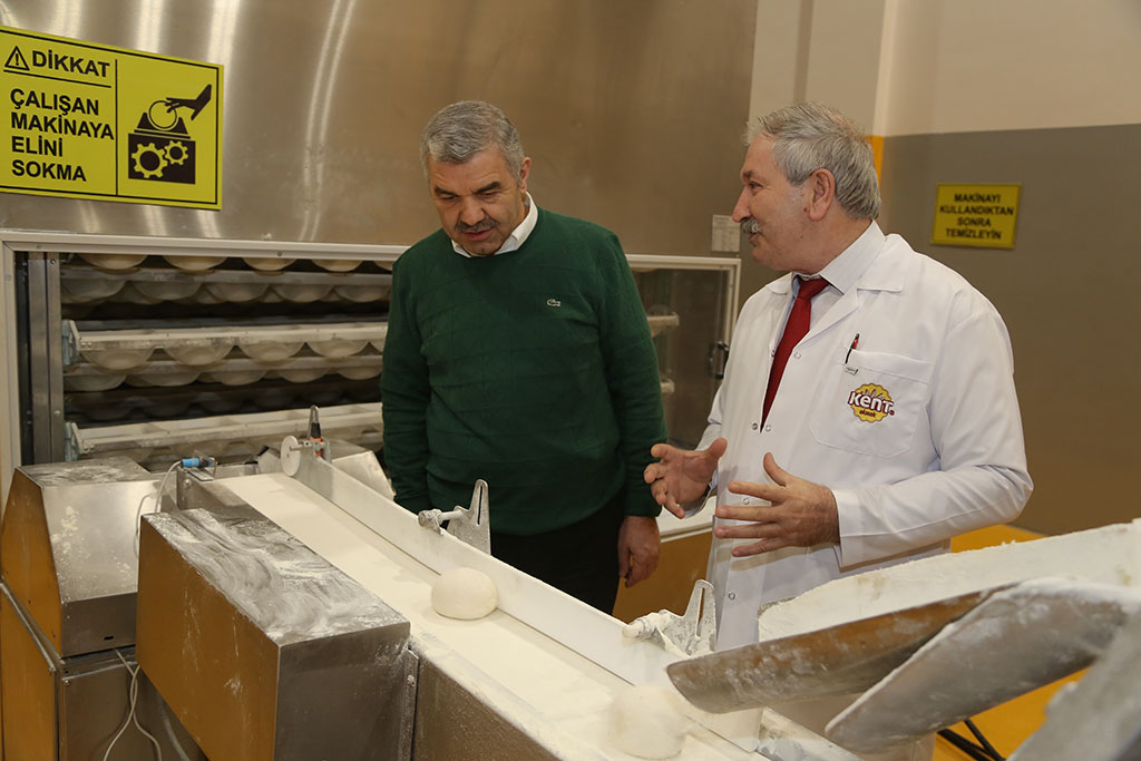 Büyükşehir Belediye Başkanı Mustafa Çelik, gece yarısından sabahın erken saatlerine kadar Kent Ekmek Fabrikası’ndaki üretimi takip etti ve aşama aşama anlattı. Büyükşehir Belediyesi’nin en önemli yatırımlarından bir tanesinin de Kent Ekmek Üretim Tesisleri olduğunu ifade eden Başkan Çelik, fiyatı dengede, kaliteyi üst seviyede tutma hedefiyle yola çıktıklarını söyledi. Başkan Çelik, 250 gramı 75 kuruş olan ekmeğin gramajını israfı önlemek için 200 grama çektiklerini ve fiyatını da 60 kuruş olarak belirlediklerini kaydetti. Büyükşehir Belediye Başkanı Mustafa Çelik, büyük önem verdiği projelerden birisi olan Kent Ekmek Üretim Tesislerini ziyaret etti. Gece yarısı başlayan ekmeğin üretilmesi serüvenini adım adım takip ederek sabahın erken saatlerine kadar Kent Ekmek tesislerinde kalan Başkan Mustafa Çelik, Kayseri halkına ne denli kaliteli bir ürün sunduklarını aşama aşama anlattı. “TÜRKİYE’DEKİ EN KALİTELİ UNU KULLANIYORUZ” Ekmeğin serüvenin unla başladığını ifade eden Başkan Çelik, Kent Ekmek’te Türkiye’deki en kaliteli unun kullanıldığını söyledi. Kent Ekmek’e gelen unun öncelikle tesisler içindeki laboratuvara alındığını vurgulayan Başkan Çelik, “Unu, tüm kalite testlerinden geçtikten sonra onaylanırsa silolarımıza alıyoruz. Daha sonra unumuz elektronik ortamda dışarıdaki silolardan hangi undan ne kadar gelecekse hiçbir katkı maddesi kullanılmadan karışım teknesine geliyor. Buradan hamur makinelerine gönderiliyor ve el değmeden yoğrularak bir süre mayalanması için dinlendiriliyor” dedi. Hamurun daha sonra otomatik olarak kesme-tartma makinesine boşaltıldığını ifade eden Başkan Mustafa Çelik, otomatik olarak gramajına göre kesilen hamurun ara dinlenme makinesinde de bir süre dinlendirildiğini, daha sonra da şekil verme makinesinde ilk şeklini aldığını belirtti. DÜNYADA BÖYLE ÜRETİM YOK Büyükşehir Belediye Başkanı Çelik, Kent Ekmek Üretim Tesislerinin Türkiye’de ve dünyada olmayan ve özel olarak dizayn edilen fermantasyon bölümü hakkında da bilgi verdi. Bu bölümün tesislerin en önemli bölümü olduğunu vurgulayan Başkan Çelik, “Eğer hamura katkı maddesi koyarsanız yarım saatlik dinlendirmeyle kabartırsınız. Ama biz babaannelerimizin akşamdan sabaha kadar hamuru mayalandırdıkları gibi 1,5 saat süreyle nihai dinlendirmeyle dinlendiriyoruz. Böylece fermantasyon süresini tamamlıyor ve fırın bölümüne geçiyor. Bizim fırınımızın en önemli özelliği nihai dinlendirme bölümü. Birçok endüstriyel fırında kimyasal katkı maddeleri ile ekmek kabartılıyor ve sağlıklı olmayan ekmek üretiliyor. Biz nihai dinlendirme bölümünü kendimize özel dizayn ettirerek, hamurun kendi kendine ekşimesini sağladık. Dünyada ve Türkiye’de böyle bir tesis yok” diye konuştu. Başkan Mustafa Çelik, Kent Ekmek’te üretim fırınlarının tam elektronik olduğunu ve pişirme süresi ile fırın ısısının otomatik olarak ayarlandığını dile getirdi. Saat 23.00’de başlayan ekmeğin pişirilmesi sürecinin gece yarısı saat 02.00’ye kadar sürdüğünü ve ekmeğin fırından çıkmaya başladığını ifade eden Başkan Çelik, “Fırından çıkan ekmeğin ısısı 100 derece. Çıkan ekmeği hemen kasalarsanız hamur olur ve lezzetini kaybeder. Döner kuleyle 100 derece sıcaklıktaki ekmek 30 dereceye iniyor ve ambalajlamaya geçiyor. Sabah da hemşehrilerimize sunuluyor” dedi. Kent Ekmek’teki somun eğmeğin yanı sıra çeşit ekmeğin üretim hattını da inceleyen Başkan Mustafa Çelik, Roll Ekmek adı verilen 50 gramlık küçük ekmeklerin de aynı süreçlerden geçerek kaliteli bir şekilde el değmeden dinlendirme bölümünü alındığını belirtti. Başkan Çelik, dinlendirme bölümünde katkı maddeleri kullanılmayan roll ekmeğin nasıl kabardığını da gösterdi. Sabaha doğru Roll Ekmek fırınından ilk ekmekleri bizzat çıkaran Başkan Çelik, Kent Ekmek lezzetinin servise hazır olduğunu söyledi. Büyükşehir Belediye Başkanı Mustafa Çelik, Kent Ekmek’in 2017 yılında yaptıkları en önemli ve en değerli yatırımlardan birisi olduğunu belirtti. Projeye sessiz sedasız başladıklarını ve kısa sürede açılışını gerçekleştirdiklerini dile getiren Başkan Çelik, “Bizim bir tek gayemiz vardı. En kaliteli ekmeği, en ucuz fiyata hemşehrilerimize yedirmek. Sosyal Belediyecilik anlamında yaptığımız en değerli projelerimizden birisi” dedi. 200 GRAM KENT EKMEK 60 KURUŞ Kent Ekmek’in fiyatında yaptıkları düzenleme hakkında da açıklamalarda bulunan Başkan Mustafa Çelik, “Ekmeğin fiyatını 60 kuruşa çektik. Fiyatı dengede, kaliteyi üst seviyede tutmak tek amacımız. Fırını açtığımız gün ekmek gramajımız 250 gramdı ve fiyatımızı 75 kuruş olarak açıklamıştık. Geçtiğimiz günlerde hükümetimizin aldığı kararla ekmek israfını önlemek için, ekmek gramajının düşürülmesi konusunda bir yönetmelik yayımlandı. Dolayısıyla ekmek 200 grama kadar yapılabilir hale geldi. Biz de ekmek israfı için alınan bu yönetmelik kararıyla ekmeğimizi 200 grama indirdik ve fiyatı da 60 kuruşa çektik” diye konuştu.
