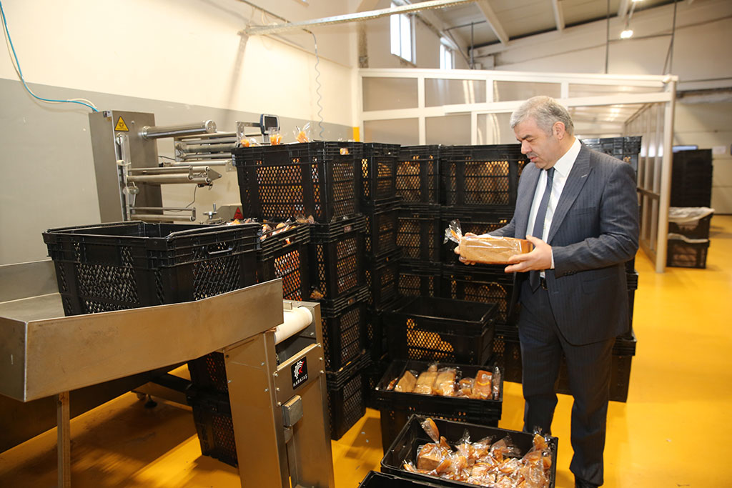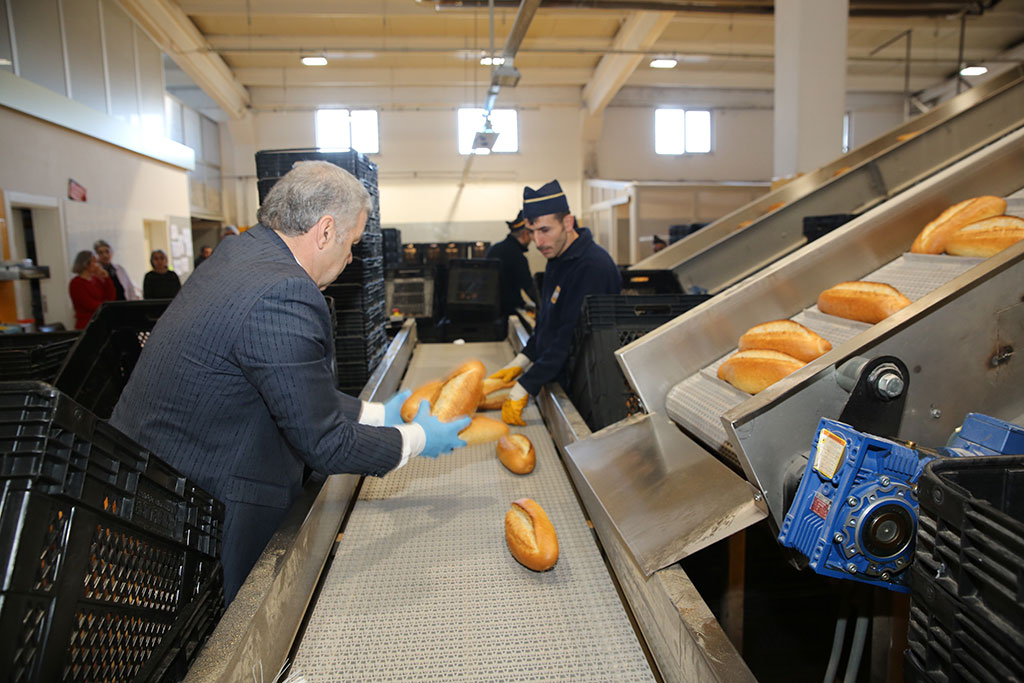 Büyükşehir Belediye Başkanı Mustafa Çelik, geleneksel damak tadımızı en son teknolojiyle sofralarımıza getiren Kent Ekmek’te incelemelerde bulundu.  Başkan Çelik, üretimin her kademesini gezerek çalışmalarla ilgili bilgi aldı. Ürün çeşitlerini de inceleyen Başkan Çelik; ekonomik, besleyici, sağlıklı, kaliteli ve lezzetli ürünleri halka sunduklarını ifade ederek, 15 bin metrekare alanda 12 milyon TL’lik yatırımla 2 bin 500 metrekare kapalı alana sahip en modern ekmek üretim tesisini şehrimize kazandırdıklarını kaydetti.