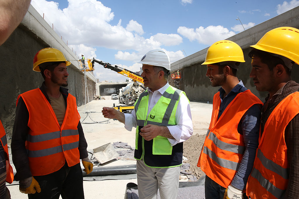Büyükşehir Belediyesi, Kocasinan Bulvarı’nda kesintisiz trafik için yaptığı katlı kavşaklardan dördünü hizmete açtı, beşincisi ise yakında tamamlanıyor. Tuna ve 30 Ağustos Kavşağı’nda yapılan katlı kavşak çalışmalarında son aşamaya gelindi. Büyükşehir Belediyesi, kesintisiz trafik için yatırımlarını aralıksız sürdürüyor. Büyükşehir Belediye Başkanı Mustafa Çelik, Tuna ve 30 Ağustos Kavşaklarını kapsayan katlı kavşakta incelemelerde bulundu. Yapılan çalışmaların son durumuna ilişkin bilgi alan Başkan Mustafa Çelik, “Kocasinan Bulvarı’nda Karayolları Kavşağı, İstasyon ve Hastane Caddesi Kavşağı ile Sanayi Odası Kavşağı’na yapılan katlı kavşakların açılışlarını önceki yıllarda yapmıştık. Bu üç katlı kavşağın maliyeti 80 milyon TL’yi buldu. Ardından geçen yıl Kocasinan Bulvarı’nda Fuzuli Katlı Kavşağı ile Tuna ve 30 Ağustos kavşaklarını birlikte geçecek olan katlı kavşağın çalışmalarına başladık. 15 milyon TL’yi bulan Fuzuli Katlı Kavşağı’nı süresinden önce tamamlayarak hizmete açtık. Tuna ve 30 Ağustos Katlı Kavşağı’nda ise çalışmalarımız hızla ilerliyor. Burada altgeçidin toplam uzunluğu 760 metre. Tuna Caddesi Kavşağı’ndaki kapalı alan 124, 30 Ağustos Kavşağı’nda ise 130 metreyi buluyor. İnşaat sürecinde 13 bin 401 metre uzunluğunda toplam 687 fore kazık kullanıldı. Önümüzdeki günlerde yaklaşık 27 milyon TL’ye mal olacak olan katlı kavşağı da hizmete açacağız. Böylece Osman Kavuncu Bulvarı DSİ önü ile Kocasinan Bulvarı Argıncık ışıklara kadar kesintisiz trafiği sağlayacağız” dedi. Büyükşehir Belediye Başkanı Çelik, Mustafa Kemal Paşa Bulvarı, Hulusi Akar Bulvarı, Osman Kavuncu Bulvarı ve Muhsin Yazıcıoğlu Bulvarı’nda da katlı kavşak çalışmalarının hızla devam ettiğini sözlerine ekledi.