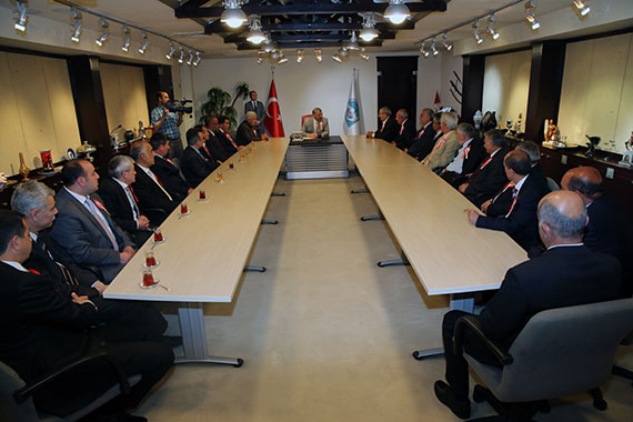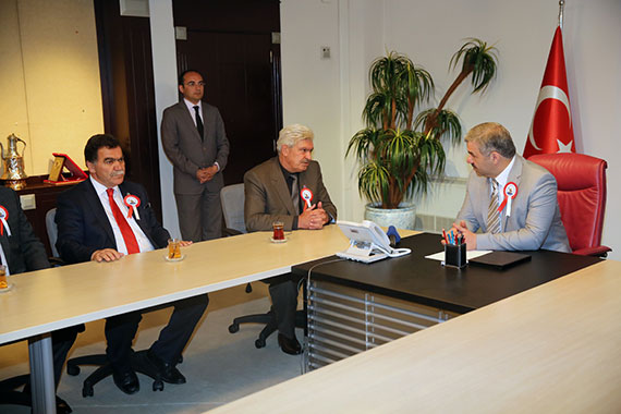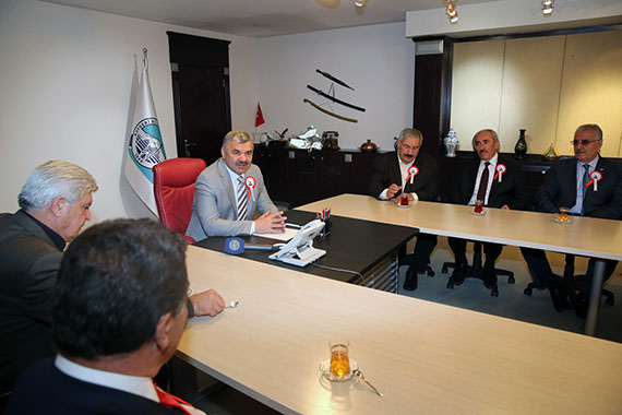 Esnaf Odaları Birliği Başkanı Ahmet Övüç, çeşitli oda başkanlarıyla birlikte Büyükşehir Belediye Başkanı Mustafa Çelik'i makamında ziyaret etti.