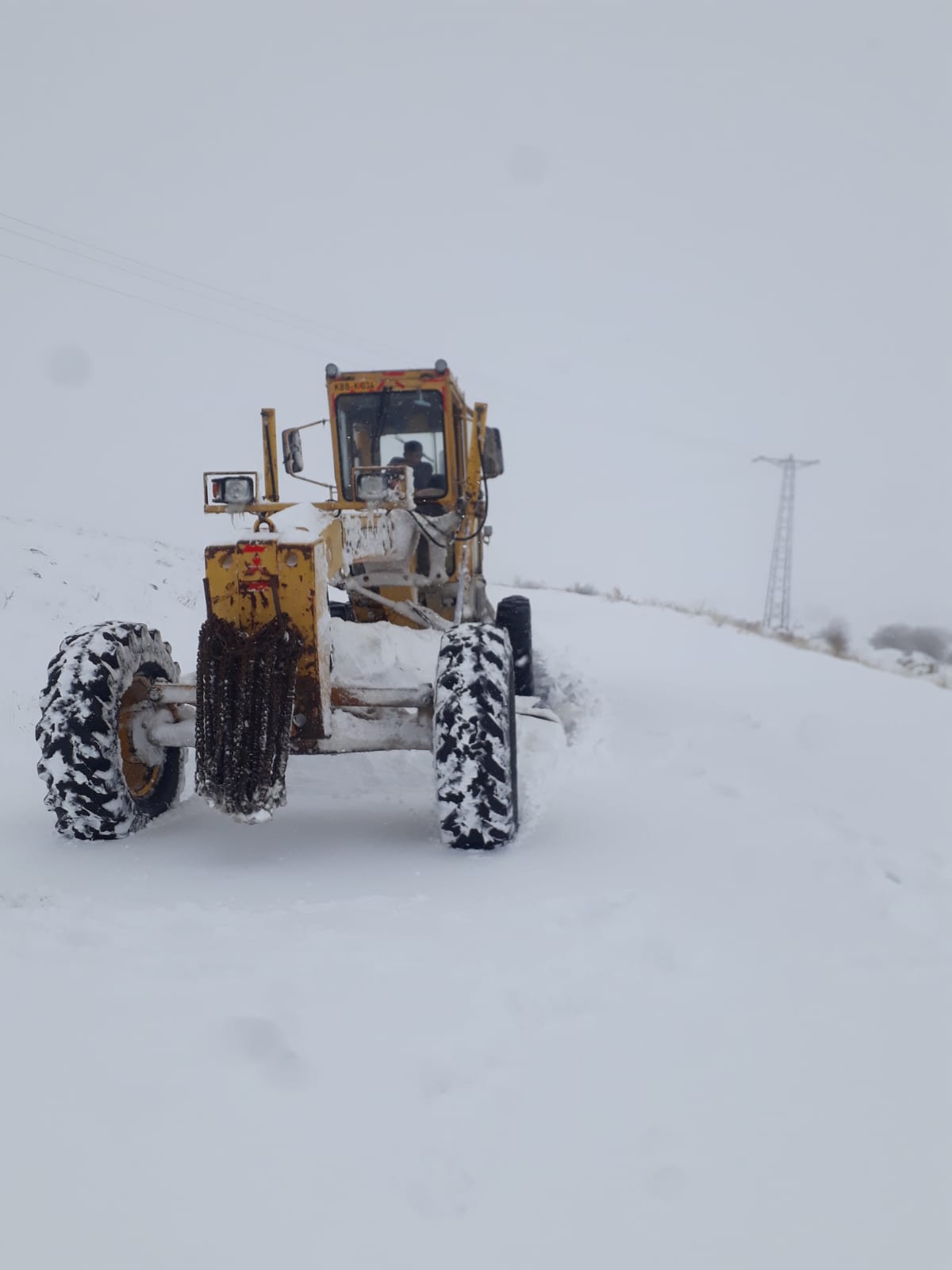 şekilde yaşanan kar yağışında kapanan yollara Büyükşehir Belediyesi Kırsal