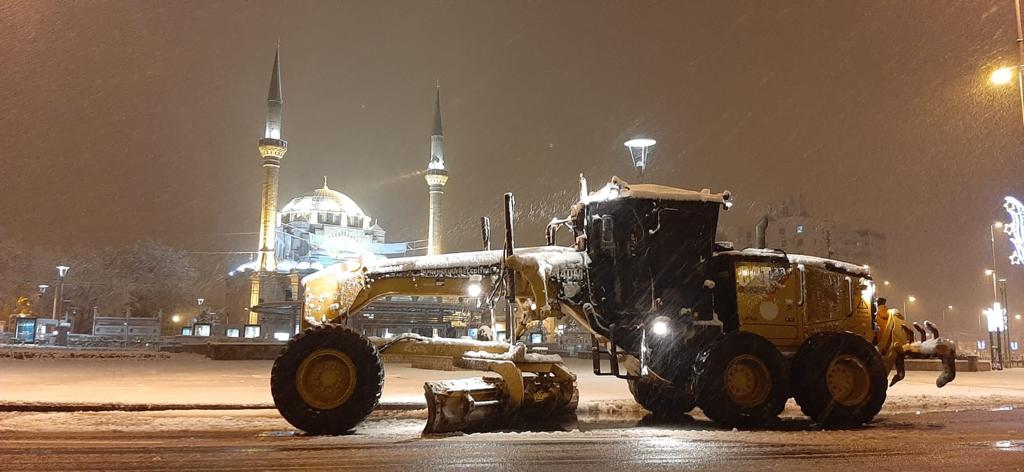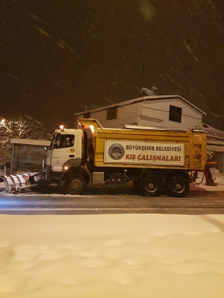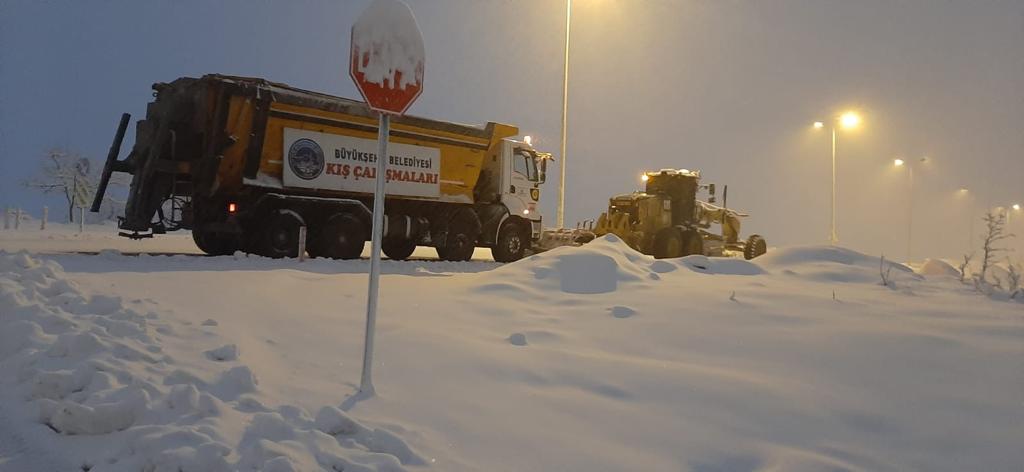 mücadelesini sürdüren Büyükşehir Belediyesi karla mücadele ekipleri, kent