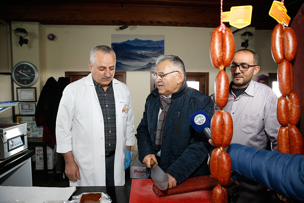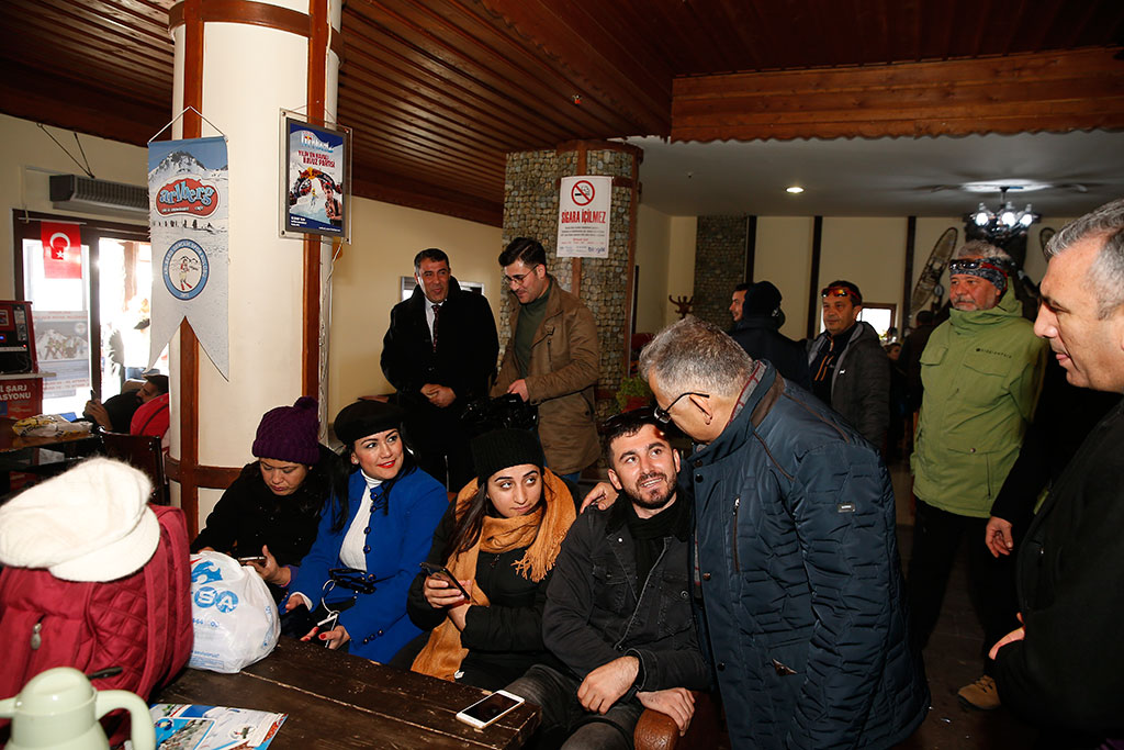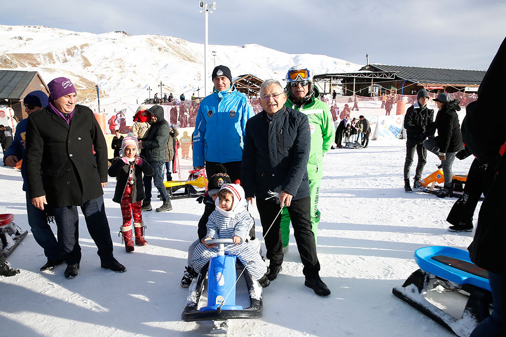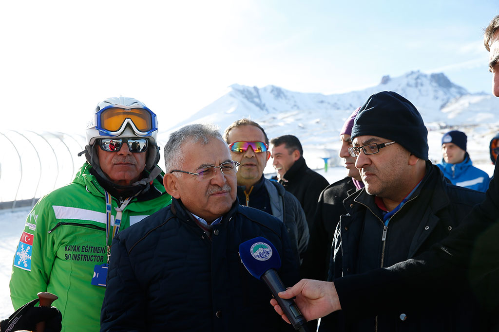 Kayseri Büyükşehir Belediyesi’nin yatırımlarıyla dünyanın sayılı kış turizm merkezlerinden birisi haline gelen Erciyes; açık pistleri, mükemmel hizmeti ve harika lezzetleriyle yerli ve yabancı ziyaretçilerini ağırlamaya devam ediyor. Büyükşehir Belediye Başkanı Dr. Memduh Büyükkılıç, Erciyes’e çıkarak Türkiye’nin ve dünyanın farklı yerlerinden gelen ziyaretçilerle görüştü ve Erciyes’le ilgili fikirlerini aldı. Başkan Büyükkılıç, özellikle kayak tutkunlarını Erciyes’e davet etti. Kar yağışının yetersizliği nedeniyle pek çok kayak merkezi kayak sezonunu açamazken Erciyes, modern karlama ünitelerinin de desteğiyle sezonu açtı ve açmasıyla da büyük ilgi görmeye başladı. Hafta sonu İstanbul’dan İzmir’e, Adana’dan Konya’ya, Ankara’dan Gaziantep’e kadar Türkiye’nin pek çok ilinden kayak severler Erciyes’e akın etti. 20 Aralık Cuma günü yapılan ilk charter seferle Polonya’dan gelen turist kafilesinin yanı sıra Erciyes’in Güney Amerika’dan dahi konukları vardı. BAŞKAN BÜYÜKKILIÇ ERCİYES’TE Kayseri Büyükşehir Belediye Başkanı Dr. Memduh Büyükkılıç, Erciyes’e çıkarak yerli ve yabancı misafirlerle görüştü. Çocuklarla yakından ilgilenen, ziyaretçilerin Erciyes’le ilgili görüşlerini alan Başkan Büyükkılıç, Erciyes’in hizmet kalitesi ve modern tesisleri ile herkesin takdirini kazanan bir kış turizm merkezi olduğunu söyledi. Erciyes’in yurt içi ve yurt dışından büyük ilgi gördüğünü ifade eden Başkan Memduh Büyükkılıç, “Erciyes bizim gurur kaynağımız, yüz akımız. Uluslararası standartlardaki gerek mekanik tesislerimiz, gerekse kayak pistlerimiz ile herkes için bir cazibe merkezi. Kış boyunca Polonya, Ukrayna, Rusya ve Belarus’tan yapılacak olan charter seferlerimiz başladı; ama bunun yanında Meksika ve Brezilya’dan dahi Erciyes’e gelenler söz konusu. Amacımız yabancı ziyaretçi sayımızı daha da artırmak. Bereketli ve yoğun kalabalık var. Daha fazla kar yağmasını bekliyoruz; ancak pislerimiz açık. Erciyes’i gerek yönetim anlayışı, gerek fiyatı, gerekse hizmet kalitesiyle herkes takdir ediyor” diye konuştu. Başkan Memduh Büyükkılıç, özellikle kayak tutkunlarını da Erciyes’e davet etti. “SUCUK VE PASTIRMA ERCİYES’TE YENİR” Kayseri Büyükşehir Belediye Başkanı Dr. Memduh Büyükkılıç, Erciyes’teki yerli ve yabancı ziyaretçilerin yanı sıra sucuk-ekmek, balık-ekmek, cips, kestane satışı yapan esnaflarla da görüştü. Kardanadam tesislerindeki misafirlerle sohbet eden Başkan Memduh Büyükkılıç, Kayseri pastırmasının özelliğine de vurgu yaptı. Erciyes’te sucuk ve pastırma yemenin bir başka keyif olduğunu dile getiren Başkan Büyükkılıç, “Kayseri’mizde sucuğun ve pastırmanın yeri bir başka; ancak Erciyes’imizde daha da başka. Reklam yapmıyoruz, kaliteyi paylaşıyoruz” diye konuştu. Başkan Memduh Büyükkılıç, bir grup misafire sucuk ekmek de ikram etti.