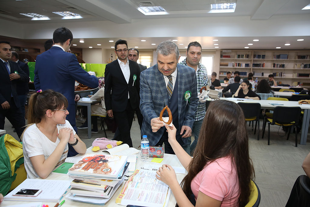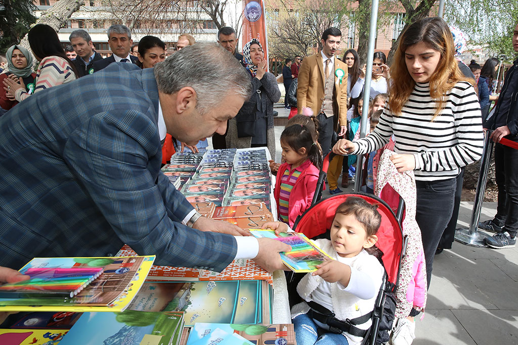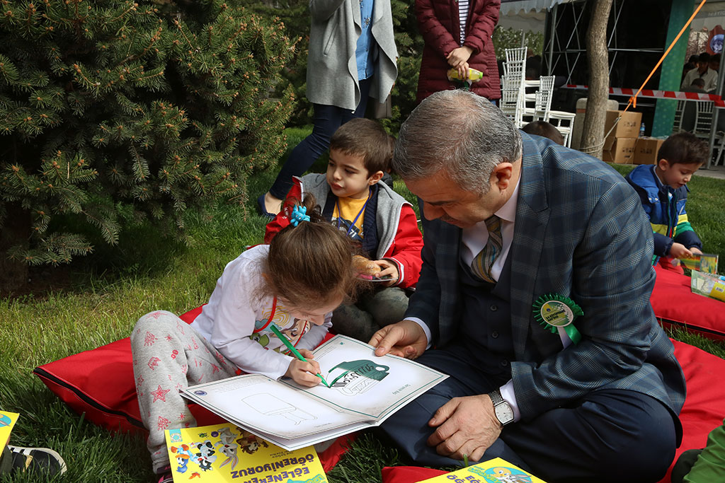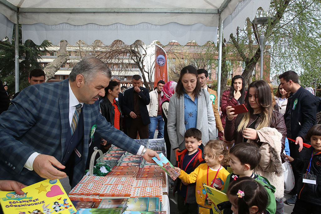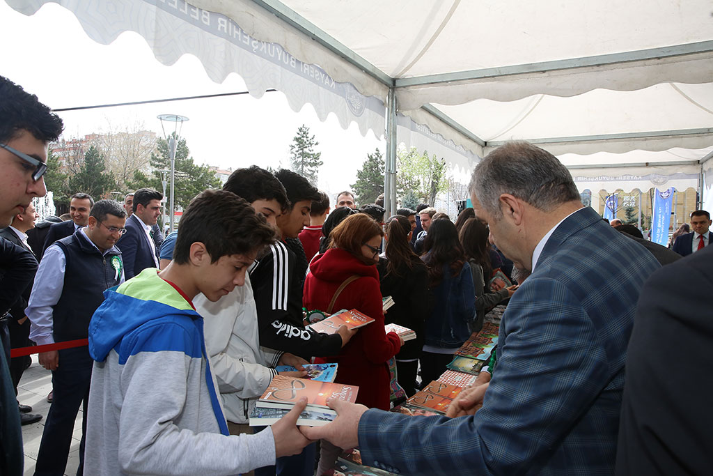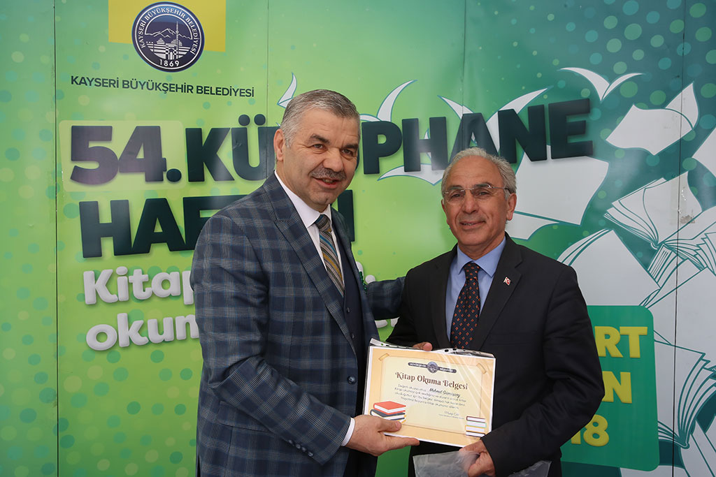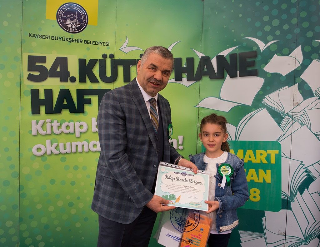 Büyükşehir Belediyesi 54. Kütüphane Haftası’nda Kayseri’deki okuma alışkanlığını artırmak için bir dizi etkinlik gerçekleştiriyor ve bu etkinliklere katılanlara kitaplar dağıtılıyor. Bu kez Büyükşehir Belediyesi Parkı’nda “Kitap Bizden Okumak Sizden” adı altında bir etkinlik gerçekleştirildi ve yüzlerce kişiye kitap dağıtılarak hep birlikte kitap okundu. Etkinliğe Büyükşehir Belediye Başkanı Mustafa Çelik de katıldı. Büyükşehir Belediyesi yanındaki park alanına minderler serildi, farklı yazarlara ait, farklı yaş gruplarına hitap eden kitaplar getirildi ve Kütüphaneler Haftası’nın ruhuna uygun bir şekilde okumayı teşvik eden etkinlik yapıldı. “Kitap Bizden, Okumak Sizden” adı altındaki etkinliğe Büyükşehir Belediye Başkanı Mustafa Çelik de katıldı. Etkinlik alanındaki özellikle çocuklarla yakından ilgilenen Başkan Mustafa Çelik, en çok kitap okuyan çocuklara ‘Kitap Kurdu Belgesi’ büyüklere ise “Kitap Okuma Belgesi” verdi ve kitap hediye etti. Etkinlikte sadece en çok kitap okuyanlara değil katılan herkese kitaplar verildi. Okula gitmeyen miniklere boyama kalemi ve boyama kitabı, çocuklara hikaye kitabı, büyüklere ise farklı yazarlardan kitaplar dağıtıldı. Etkinliğe katılanlara çeşitli ikramda da bulunuldu. Büyükşehir Belediye Başkanı Çelik, kitapların dağıtılmasının ardından park alanında oturarak, kitaplarını okuyan ya da boyama yapan çocuklarla yakından ilgilendi ve onlarla birlikte boyama yaptı. Başkan Çelik, park alanında ayrıca kitabın ne denli önemli olduğunu anlatan dövizler taşıyan çocuklarla fotoğraf çektirdi. Büyükşehir Belediye Parkı’nda yapılan etkinliğin ardından Merkez Kütüphanesi’ne geçen Başkan Mustafa Çelik, kütüphanede çalışan gençlere kolaylıklar dileyerek tek tek tatlı ikram etti ve etkinlik kapsamında kütüphanedeki gençlere çayların da ücretsiz olacağını dile getirdi.