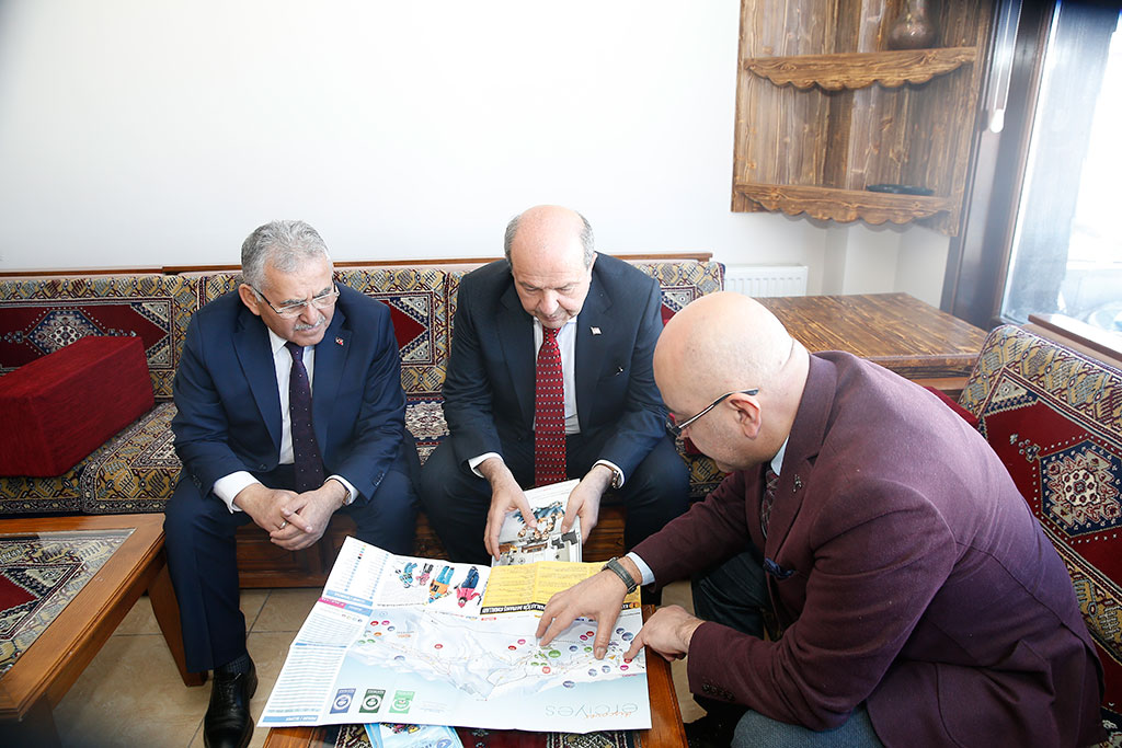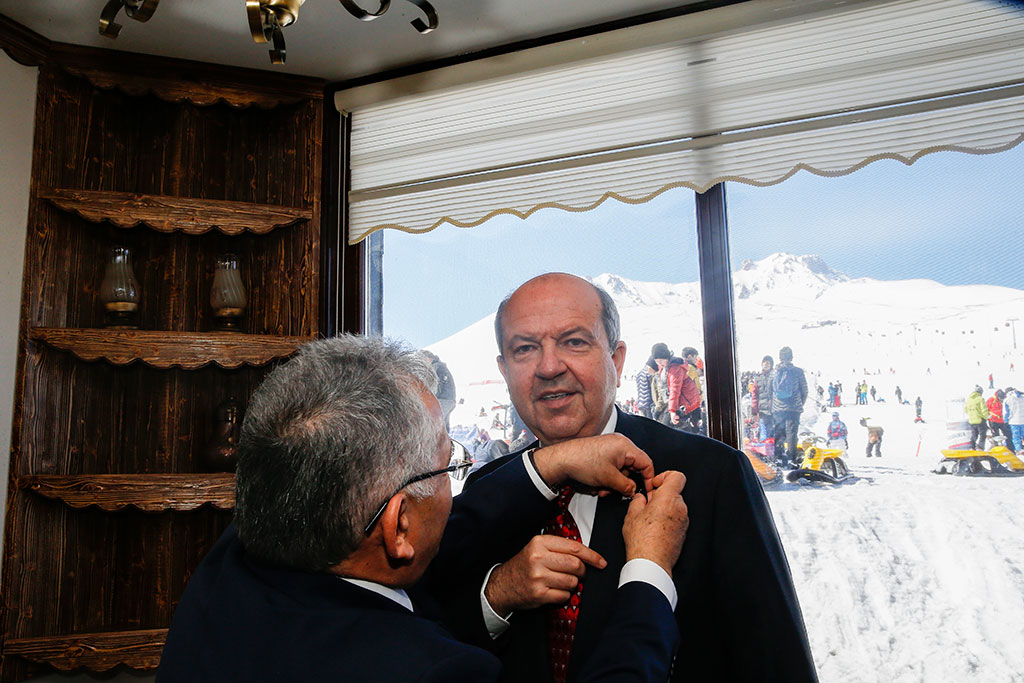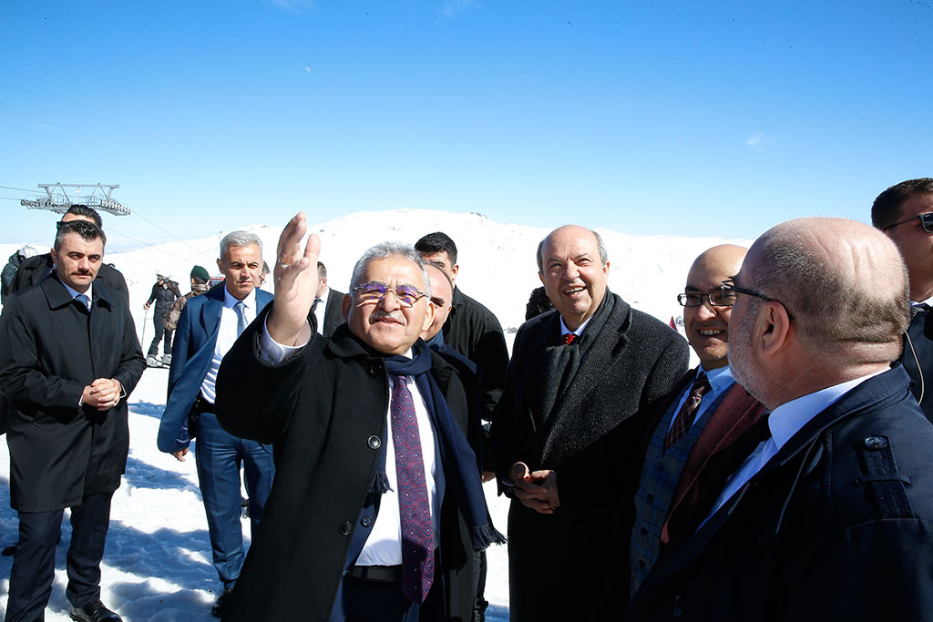 Kuzey Kıbrıs Türk Cumhuriyeti Başbakanı Ersin Tatar, Kayseri Üniversitesi’nin gerçekleştirdiği konferansın ardından Erciyes’e çıktı. Büyükşehir Belediye Başkanı Dr. Memduh Büyükkılıç’tan bilgi alan Başbakan Tatar, Erciyes’e hayran kaldığını söyledi. Kuzey Kıbrıs Türk Cumhuriyeti Başbakanı Ersin Tatar, iki günlük Kayseri ziyaretinde uluslararası standartlardaki Erciyes Kış Turizm Merkezi’ni de gezdi. Başbakan Ersin Tatar’a Vali Şehmus Günaydın ile Büyükşehir Belediye Başkanı Dr. Memduh Büyükkılıç da eşlik etti. Başbakan Ersin Tatar’a Kardanadam Tesisleri’nde Erciyes A.Ş. Yönetim Kurulu Başkanı Murat Cahid Cıngı tarafından Erciyes’le ilgili bilgi verildi. Büyükşehir Belediye Başkanı Memduh Büyükkılıç da Erciyes’in yerli ve yabancı çok sayıda turisti ağırladığını ifade etti. Başkan Büyükkılıç’ın, Kardanadam Tesisleri’nde görüştüğü bir turist ise Peru’dan geldiğini belirtti. Erciyes’ten çok etkilendiğini ifade eden KKTC Başbakanı Ersin Tatar’a Başkan Büyükkılıç tarafından Erciyes A.Ş.’nin rozeti takıldı. KKTC Başbakanı Ersin Tatar, gondola da binerek 2 bin 400 metreye çıktı. Kayseri ve Erciyes’in doyumsuz manzarasını izleyen Başbakan Tatar, Erciyes’e hayran kaldığını ifade etti. Kuzey Kıbrıs Türk Cumhuriyeti Başbakanı Ersin Tatar, Erciyes’teki incelemelerinin ardından karayolu ile Kayseri’den ayrıldı.