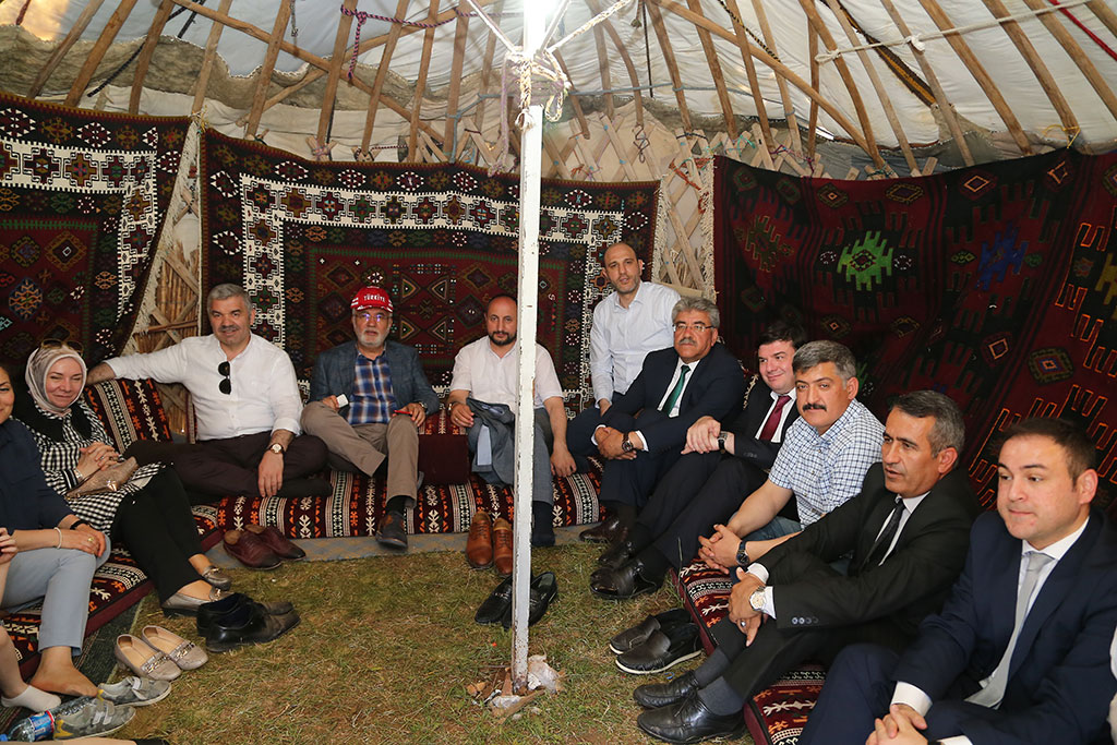 Büyükşehir Belediye Başkanı Mustafa Çelik, Akkışla’da yapılan Akkışla Türkmenleri Geleneksel Yeni Yoğurt Bayramı ve Kilim Festivali’ne katıldı. Festivalde yaptığı konuşmada makamlarda oturup şehri yönetmediklerini ifade eden Başkan Mustafa Çelik, her zaman halkın içinde olduklarını söyledi. Akkışla Yeni Yoğurt Bayramı ve Kilim Festivali’ne Büyükşehir Belediye Başkanı Mustafa Çelik’in yanı sıra AK Parti Grup Başkanvekili Mustafa Elitaş, Kayseri Milletvekilleri İsmail Emrah Karayel ve Hülya Nergis, AK Parti İl Başkanı Fatih Hasyüncü, ilçe belediye başkanları, bürokratlar ve vatandaşlar katıldı. Festivalin yapıldığı Üsküdar Yaylası’ndaki ilk konuşmayı Akkışla Belediye Başkanı Ali Ergül yaptı. Ergül, Büyükşehir Belediyesi’nin ilçeye yaptığı yatırım ve hizmetler nedeniyle teşekkür etti. BAŞKAN ÇELİK FESTİVAL AĞASI Festivalde daha sonra festival ağalığını seçimi yapıldı. Büyükşehir Belediye Başkanı Mustafa Çelik Yeni Yoğurt Bayramı ve Kilim Festivali’nin ağası seçildi. Başkan Çelik’e ağalık kıyafet giydirildi. Festivalde konuşan Büyükşehir Belediye Başkanı Mustafa Çelik konuşmasına Akkışlalı Şair Sami Bozbıyık’ın , “Dolar arabalar dizilir yola, Durulur "Berçin'de", verilir mola, Festivalde herkes girer kol kola, Türkmen nasıl oynar, coşar; gel de gör” dizelerinin yer aldığı şiirini hatırlatarak başladı ve “Biz de bu yaylada nasıl kol kola girilir, Türkmen hemşehrilerim nasıl oynar, nasıl coşar görmeye geldik. İyi ki de gelmişiz ve sizlerle birlikte olmuşuz. Festivaliniz kutlu, ömrünüz bereketli olsun” dedi. “DEĞERLERİMİZİN ETRAFINDA BİR VE BERABERİZ” İlçelerde yapılan festival ve şenlikleri çok önemsediğini ve Akkışla’daki festivale geçen yıl da katıldığını dile getiren Başkan Mustafa Çelik, Anadolu’nun her yöresinde ve şehrimizin her ilçesinde, bizi biz yapan değerlerin etrafında bir ve beraber olduğumuzu vurguladı. Üsküdar Yaylası’nda Akkışlalılarla kol kola, omuz omuza olmaktan duyduğu mutluluğu ifade eden Büyükşehir Belediye Başkanı Çelik, “Rabiamız belli. Tek Vatan, Tek Devlet, Tek Bayrak, Tek Millet. Rabiamızdaki değerlere, inandığımız değerlere ihanet etmeyen herkesin başımızın üstünde yeri var” dedi. 3,5 yıllık Büyükşehir Belediye Başkanlığı döneminde Akkışla’ya defalarca geldiğini vurgulayan Başkan Çelik, sözlerini şöyle sürdürdü: “Makamlarda oturup şehri yönetmeye kalkanlardan olmadık ve asla olmayacağız. Her zaman siz değerli hemşehrilerimizin arasında olduk. Her zaman, ihtiyaçları yerinde tespit etmenin ve yerinde takip etmenin gayretini gösterdik. Bu anlamda da tüm ilçelerimiz gibi Akkışla’nın da her talebini karşılamak için var gücümüzle çalıştık. Büyükşehir’in gücünü ve imkanlarını tüm ilçelerimizle birlikte Akkışla’mız için de kullandık ve kullanmaya devam edeceğiz. İlçelerin sosyal ve ekonomik imkanını artırmak için elimizden gelen gayreti göstermeyi sürdüreceğiz. Şehir merkezindeki konforu ilçelerimize de taşımak önümüzdeki dönemde de önceliğimiz olacak.” Başkan Mustafa Çelik, sözlerinin sonunda her ziyaretinde Akkışla halkının gösterdiği ilgi, samimiyet ve sevgi nedeniyle teşekkür etti. Başkan Mustafa Çelik, konuşmaların ardından festival alanındaki çadırları gezerek vatandaşlarla sohbet etti.