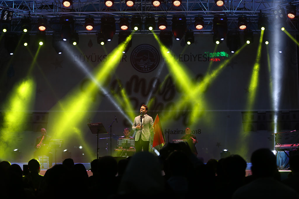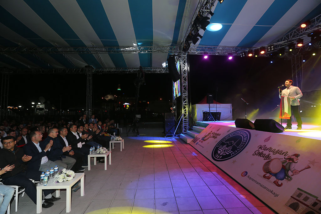 Büyükşehir Belediyesi’nin Kurşunlu Otoparkı ve Mimarsinan Parkı’nda kurduğu Ramazan Sokağı’nın ilk sanatçı konuğu Makedonya’nın başkenti Üsküp’ten gelen Mesut Kurtis oldu. Sanatçı, farklı ülkelerden, farklı dillerde eserler seslendirdi. Ramazan Sokağı’nda Kayserililerle bir araya gelen Makedon Sanatçı Mesut Kurtis sahneye Türk Bayrağı ve Filistin Bayrağı ile birlikte çıktı. Kayseri’de olmaktan mutluluk duyduğunu ifade eden Sanatçı, “Türkiye’ye gelince kendimizi yabancı hissetmiyoruz” dedi. Filistin’de yaşananların herkesin içini acıttığını dile getiren Mesut Kurtis, yaşadıklarımıza rağmen güçlü olmamız gerektiğini vurguladı. Makedon Sanatçı daha sonra farklı dillerde, farklı ülkelerden eserler seslendirdi. Konser sonunda Büyükşehir Belediyesi Genel Sekreteri Hüseyin Beyhan, Mesut Kurtis’e teşekkür ederek çiçek verdi. HER GÜN 17.00’DE AÇILACAK Ramazan Sokağı’nda geçen yıllarda olduğu gibi yine birbirinden güzel etkinlikler yapılıyor. Ramazan’a özgü tatlar, Ramazan’ın ruhuna uygun kitapların bulunduğu Ramazan Sokağı’nda geçmişimizden esintiler sunan el sanatlarımız da yer alıyor. Her gün saat 17.00’de açılacak olan Ramazan Sokağı gece 01.00’e kadar hizmet verecek. İftardan sonra çocuklar için oyunlar, tiyatrolar, ödüllü yarışmalar yapılacak. Teravih namazı sonrası ise her gün tanınmış farklı bir ismin konuk olacağı dinleti ve söyleşi programları olacak.