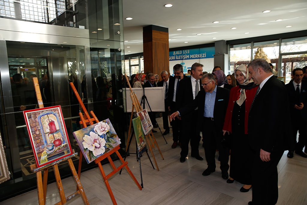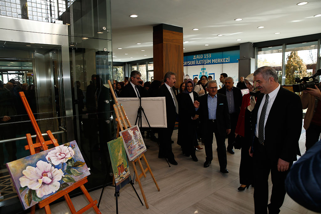 Büyükşehir Belediyesi Meclis Üyesi Suna Çakır, kimsesiz çocuklar yararına resim sergisi açıldı. Serginin açılışı Büyükşehir Belediyesi sergi salonunda Meclis Toplantısı öncesi yapıldı. Büyükşehir Belediye Başkanı Mustafa Çelik, hem serginin açılışını yaptı hem de ilçe belediye başkanları ile birlikte tablo satın aldı. Büyükşehir Belediyesi’nin AK Partili Meclis Üyesi Suna Çakır’ın yağlıboya tablolardan oluşan resim sergisinin açılışına Büyükşehir Belediye Başkanı Mustafa Çelik de katıldı. Meclis Üyesi Çakır, açılış sırasında sergide yer alan tabloların satışından elde edilecek gelirin öksüz ve yetim çocuklar için harcanacağını belirtti. Büyükşehir Belediye Başkanı Çelik de Suna Çakır’a bu anlamlı sergi için teşekkür etti ve “Rabbim nice hayırlı işler için gayretle çalışmayı nasip etsin” diye konuştu. Açılışın ardından Başkan Mustafa Çelik, İlçe Belediye Başkanları ve meclis üyeleri ile birlikte sergiyi gezdi. Başkan Çelik ile Melikgazi, Kocasinan ve Talas Belediye Başkanları da tablolardan alarak kimsesiz çocuklara destek verdiler.