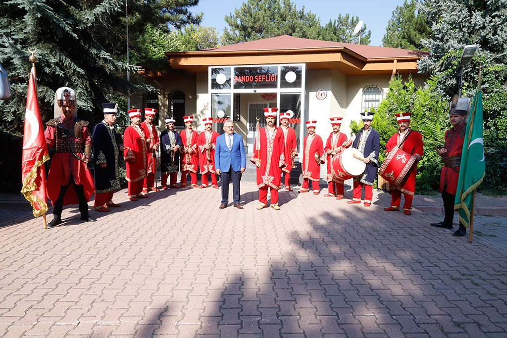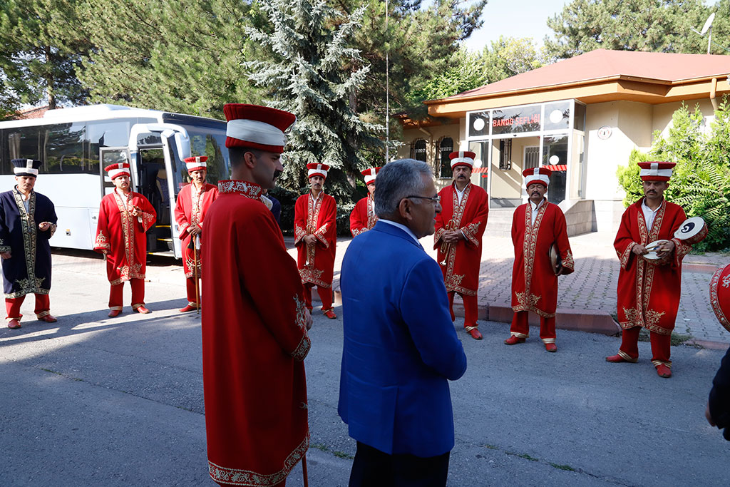 Kayseri Büyükşehir Belediye Başkanı Dr. Memduh Büyükkılıç, şehirle ilgili bir dizi görüşmeler gerçekleştirdiği bir günlük Ankara programının ardından bazı şantiyelerde incelemelerde bulunduktan sonra Büyükşehir Belediyesi Bando Şefliği’ni ziyaret etti. Büyükşehir Belediye Başkanı Dr. Memduh Büyükkılıç, Bando Şefliğinde Mehter Takımı tarafından adeta Kayseri’nin marşı haline gelen Gesibağları türküsü ile karşılandı. Ankara’da çok önemli görüşmeler yaptıklarını ve bu görüşmelerle her projenin önünün açıldığını ifade eden Başkan Memduh Büyükkılıç, mehter ve bando takımlarının da şehir için özel bir önemi olduğunu dile getirdi. “Katıldığınız programlarda milli duygularımızı kabartıyorsunuz” ifadelerini kullanan Başkan Büyükkılıç, Bando Şefliği personeline teşekkür etti. Başkan Büyükkılıç, bir süre Bando Şefliği’nde personelle çay içerek sohbet etti ve taleplerini dinledi.
