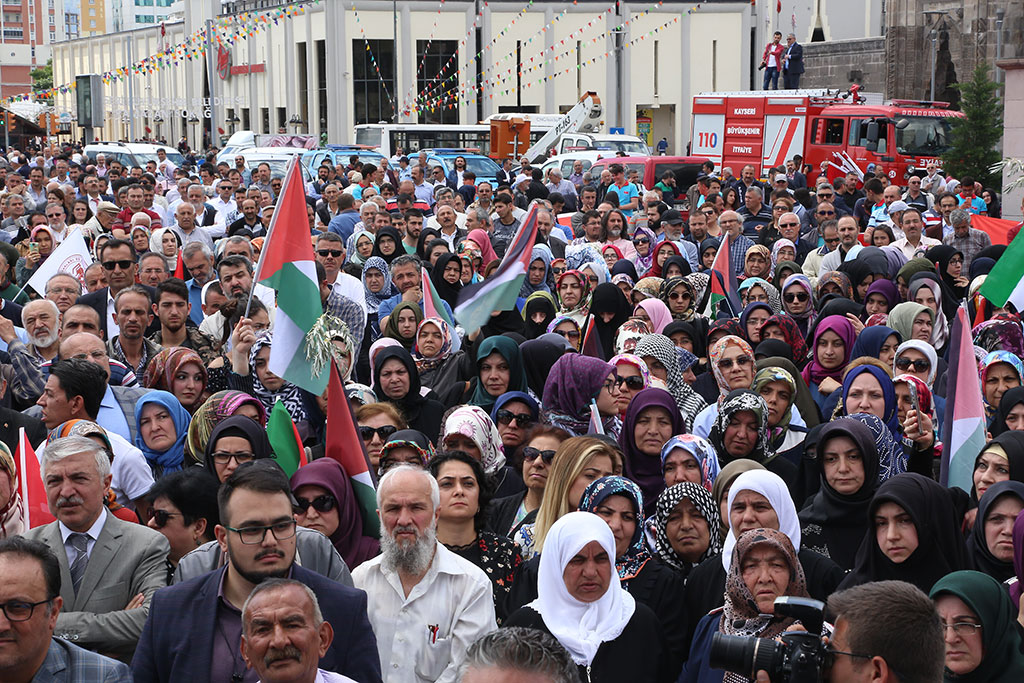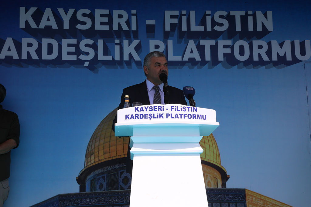 Büyükşehir Belediye Başkanı Mustafa Çelik, Kayseri-Filistin Kardeşlik Platformu tarafından Cumhuriyet Meydanı’nda gerçekleştirilen mitingde İsrail ve Amerika’nın yaptıklarını lanetledi. Başkan Çelik, zalimin karşısında asla sessiz kalmayacaklarını söyledi. Büyükşehir Belediye Başkanı Mustafa Çelik, Cumhuriyet Meydanı’nda Filistin için bir araya gelen Kayserililere hitap etti. Filistin’in sahipsiz olmadığını ifade eden Başkan Çelik, “Müslümanların ve tüm insanlığın kanaat, şükür, paylaşma gibi güzel hasletleri yücelten; rahmet, mağfiret ve kurtuluşa ermemize vesile olacak olan Ramazan ayını karşılamaya hazırlandığı şu günlerde ne yazık ki, İslam alemi yine büyük bir acı yaşıyor. Hiçbir kutsalı olmayanlar, bizden sonrası tufan anlayışıyla Allah’ın verdiği canı devlet terörü ile alanlar yine sahnedeler. Bu alçaklığa izin vermeyeceğiz. Kudüs sahipsiz değildir. Gazze Sahipsiz değildir. Filistin sahipsiz değildir. Müslümanlar da sessiz değildir” dedi. Kutsal değerlerine yapılan saldırılara karşı her zaman ve her şartta bir ve beraber olan Kayseri’nin bir kez daha zalimin karşısında sessiz kalınmayacağını gösterdiğini vurgulayan Başkan Çelik, sözlerini şöyle sürdürdü: “Var olduğumuz sürece Kudüs’ün düşmemesi için, mazlumun yanında yer almak insanlık görevimiz olduğu için susmayacağız. Haksızlıklar karşısında susan dilsiz şeytan olmayacağız. İnsanlıktan nasibini almamış kişilere karşı hep birlikte gür bir sesle haykırmaya devam edeceğiz. Müslümanlar üzerine oynanan oyunu bozmak, Ortadoğu’yu kan gölüne çevirmek isteyenlere karşı çıkmak ve bize emanet olan Kudüs üzerindeki kara bulutları dağıtmak insanlık görevimizdir. İsrail’in barışçıl gösteri yapan Filistinlilere karşı sergilediği terör tek kelimeyle alçaklıktır. Bu devlet terörünü Kayseri Cumhuriyet Meydanı’nda hemşehrilerimile birlikte lanetliyorum. Sözüm ona arabuluculuğa soyunan;; ama Ortadoğu’yu kan gölüne çevirmek için nifak tohumları eken Amerika’yı kınıyorum. Ramazan ayının yüzü suyu hürmetine Filistinli kardeşlerimizin tez zamanda alçakların elinden, hain planlardan kurtulmalarını diliyorum. Filistin’de katliam yapanları, bu katliama sebep olanları ve sessiz kalanları Rabbime havale ediyorum. Allah güçlünün değil haklının yanındadır.” Büyükşehir Belediye Başkanı Çelik, Kayserililerin her zaman Hakk’ın ve haklının yanında olmaya devam edeceğini sözlerine ekledi. Cumhuriyet Meydanı’nda daha sonra İl Müftüsü Şahin Güven tarafından bu zulmün sona ermesi için dua ettirildi ve meydanda Filistin’de şehit olanlar için gıyabi cenaze namazı kılındı.