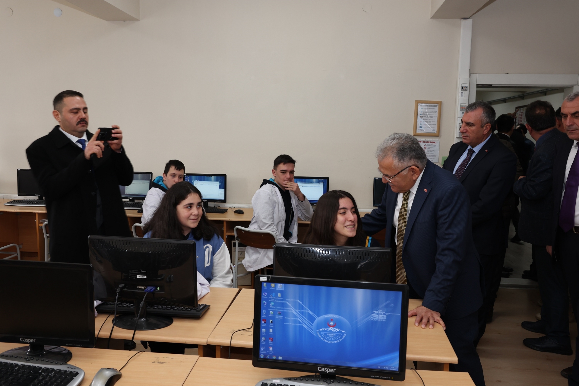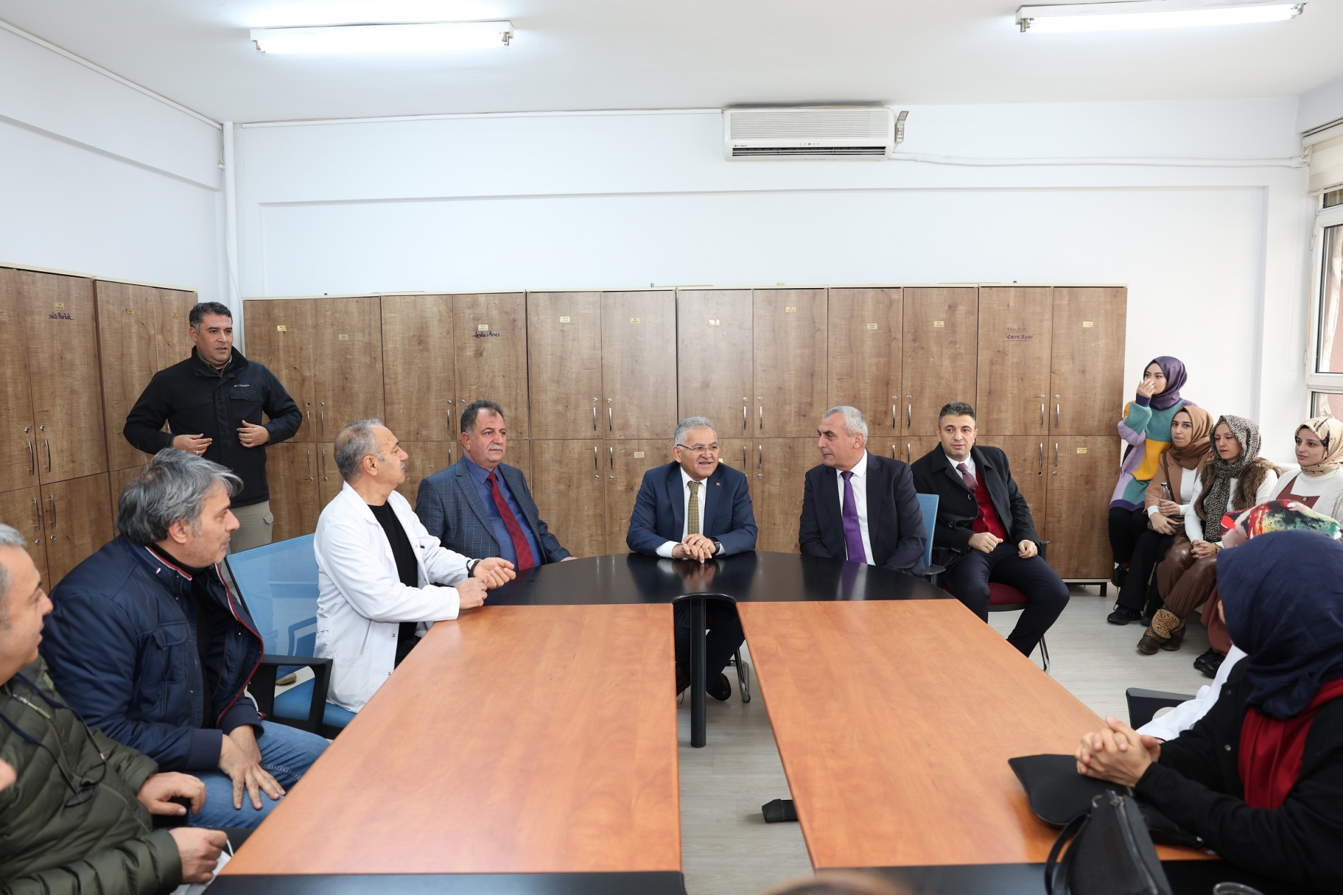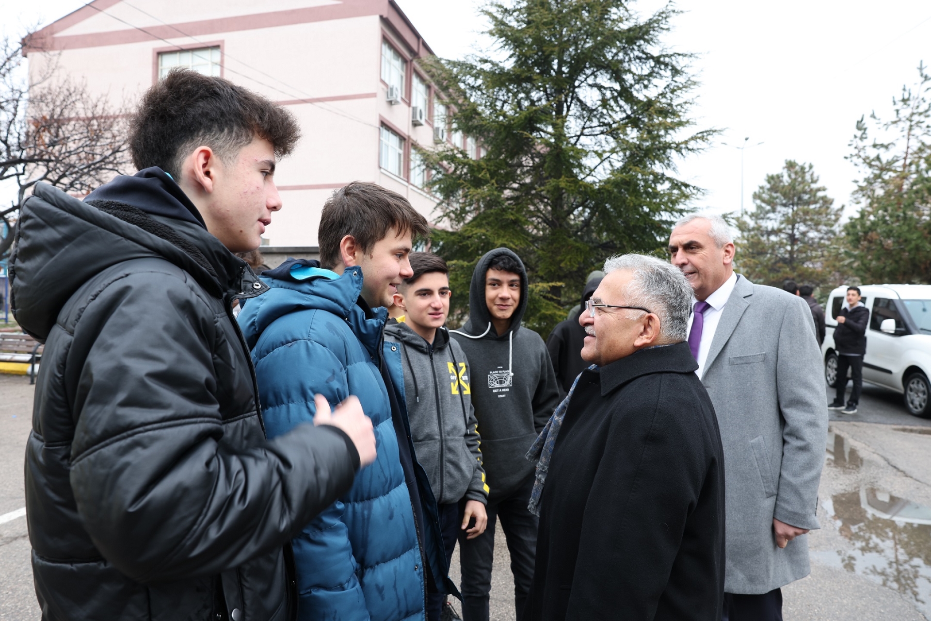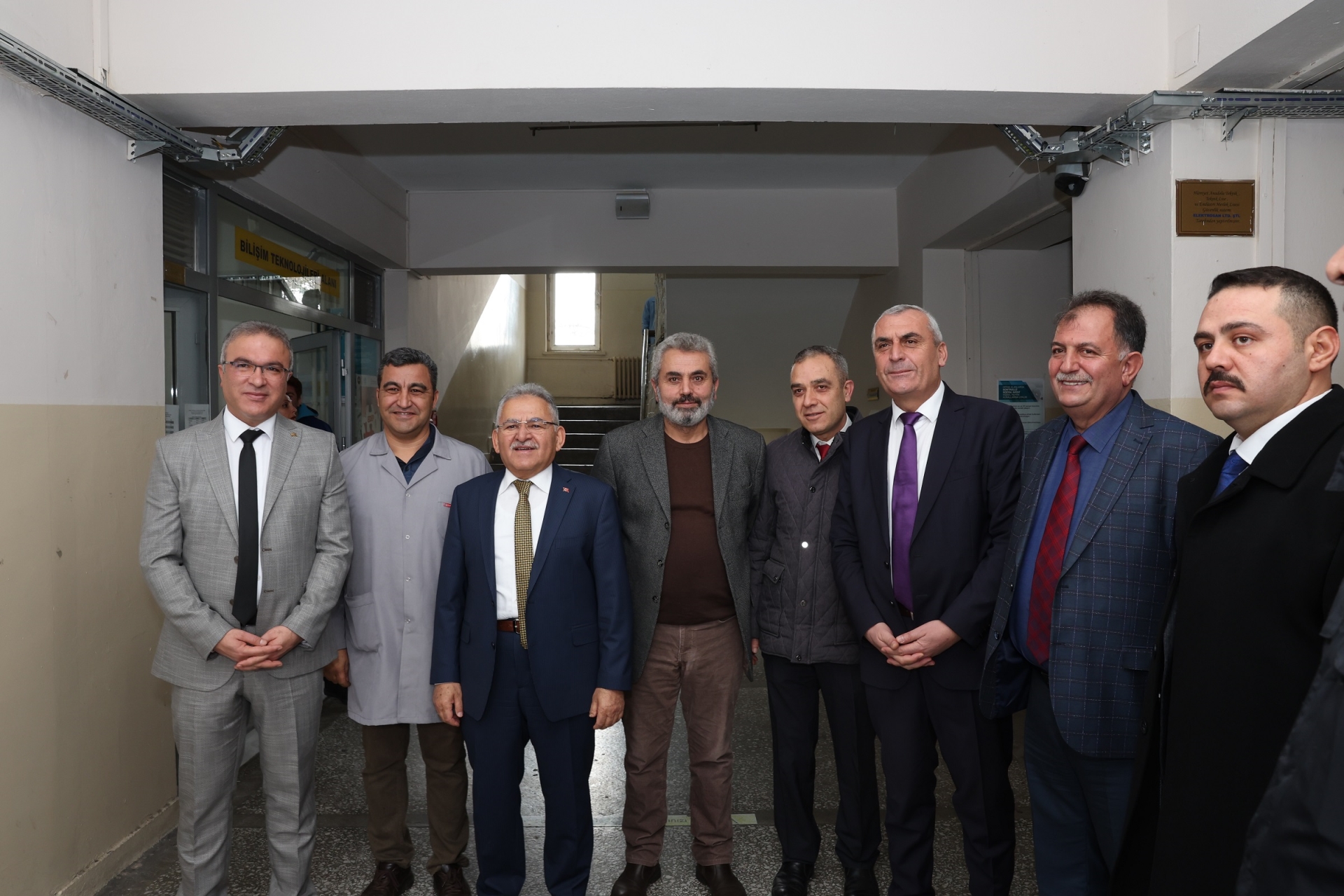Okul girişinde İl Milli Eğitim Müdürü Ayhan Teltik ve Melikgazi İlçe Milli Eğitim Müdürü Hacı Kaya ile okul yönetimi ve öğrenciler tarafından karşılanan Başkan Büyükkılıç, daha sonra öğretmenler odasında öğretmenler ile bir araya geldi.