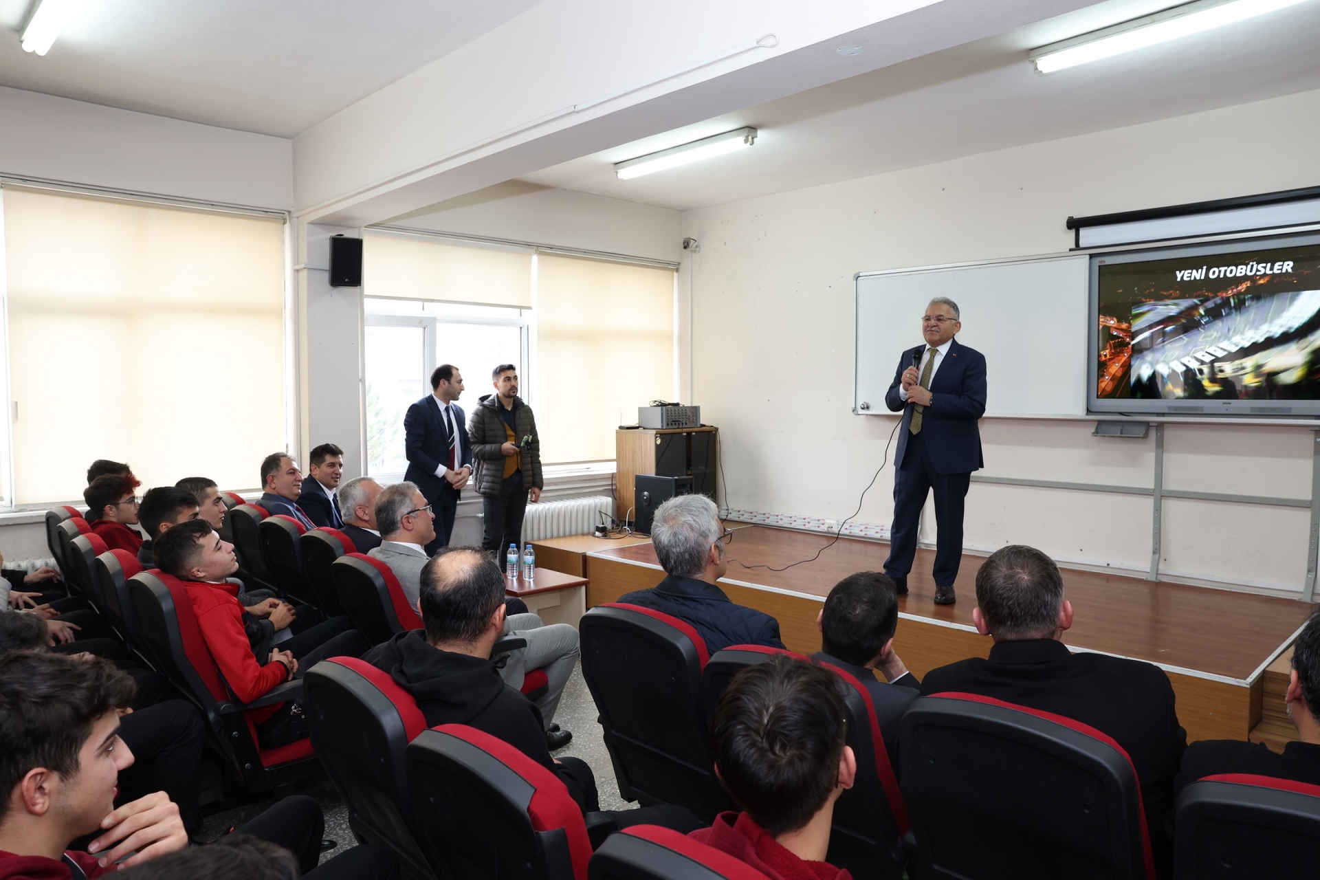 Daha sonra okulun konferans salonuna geçen Başkan Büyükkılıç, burada öğrencilerle keyifli ve samimi ortamda sohbet gerçekleştirdi.