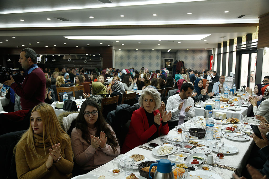 Büyükşehir Belediyesi 24 Kasım Öğretmenler Günü nedeniyle KAYMEK bünyesinde görev yapan eğiticilere bir kahvaltı verdi. Burada konuşan Büyükşehir Belediyesi Genel Sekreteri Hüseyin Beyhan, öğretmenliğin gönül mesleği olduğunu belirtti ve bu mesleği özverili şekilde yapan KAYMEK öğretmenlerinin şahsında tüm öğretmenlerin 24 Kasım Öğretmenler Günü’nü kutladı. Büyükşehir Belediyesi bünyesindeki KAYMEK’te görev yapan eğitimciler Harikalar Sofrası’nda düzenlenen kahvaltıda bir araya geldi. KAYMEK bünyesindeki yaklaşık 300 öğretmenin katıldığı kahvaltıda Sanat ve Mesleki Eğitim Kursları, Genç KAYMEK ve Huzur Çınarı tarafından yapılan çalışmalar anlatıldı. Daha sonra bir konuşma yapan KAYMEK Sanat ve Mesleki Kursları Müdiresi Mürşide Gonca Aslan, KAYMEK öğretmenlerinin zor bir görev üstlendiklerini belirterek, “Üniversite sınavını kazanan bir öğrencinin başarısında, sonradan meslek edinerek kendi parasını kazanabilmiş ev hanımının gözlerindeki parıltıda siz varsınız. Psikolojik sorunlarının üstesinden gelip hayata dört elle sarılmış bir gencin hayatında sizin dokunuşlarınız var. Her yaştan, her statüden, güzel şehrimizin her sokağından ve her mahallesinden insanın hayatına ulaşabilmek zor iş. Yaptıkları işin hakkını en iyi şekilde veren KAYMEK öğretmenleriyle bu zor işimiz kolaylaşıyor” dedi ve tüm öğrenmelerin Öğretmenler Günü’nü kutladı. KAYMEK BÜNYESİNDE 300 ÖĞRETMEN GÖREV YAPIYOR Büyükşehir Belediyesi Genel Sekreteri Hüseyin Beyhan da Büyükşehir Belediye Başkanı Mustafa Çelik’in bir toplantıya katılmak üzere İstanbul’a gittiğini belirtti ve selamlarını iletti. Öğretmenlik mesleğinin ne kadar zor, ne kadar onurlu ve şerefli bir meslek olduğunun bilindiğini ifade eden Beyhan, “Bu nedenle de bu meslek gönül mesleğidir. KAYMEK’te görev yapan öğretmenlerimiz mesleğin onur ve şerefine yakışır bir şekilde canı gönülden, özverili bir şekilde çalışıyorlar” dedi. Büyükşehir Belediyesi olarak bir aile olduklarını ifade eden Genel Sekreter Hüseyin Beyhan, KAYMEK bünyesinde yaklaşık 300 öğretmenin görev yaptığını söyledi. Beyhan, KAYMEK öğretmenleri şahsında tüm öğretmenlerin 24 Kasım Öğretmenler Günü’nü tebrik etti.