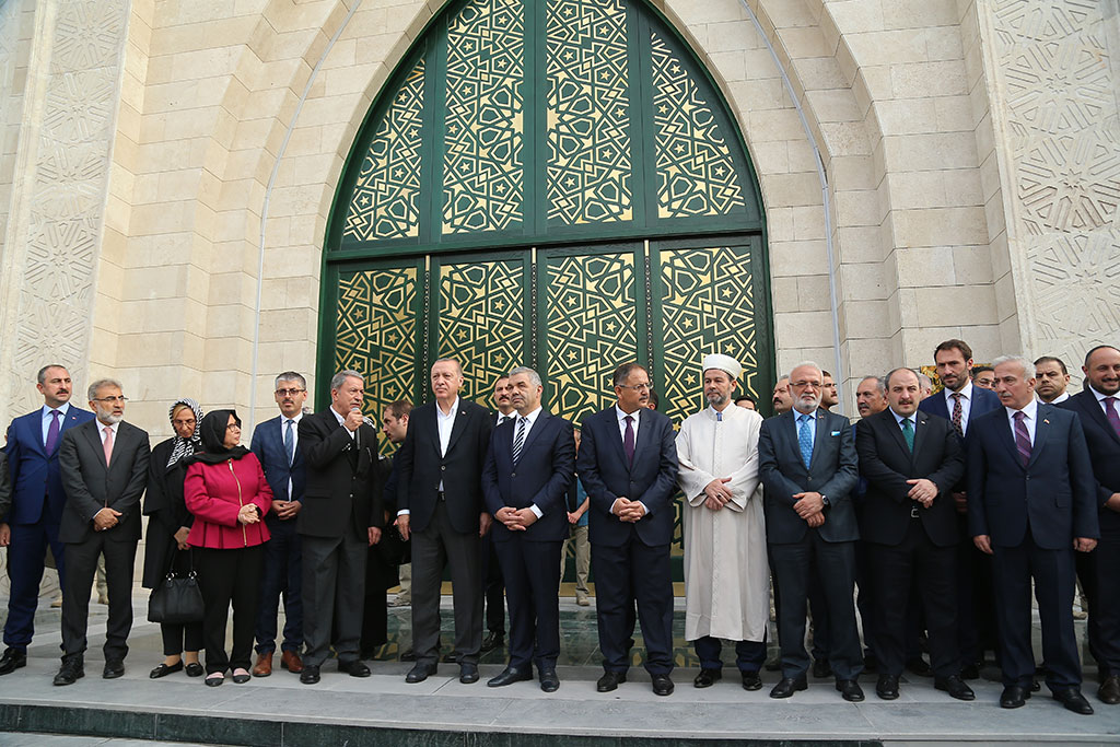 Büyükşehir Belediyesi’nin yeniden düzenlediği, Türkiye’nin en temiz ve en yeşil parkı haline gelen Asri Mezarlık’taki Orgeneral Hulusi Akar Camii Cumhurbaşkanımız Recep Tayyip Erdoğan’ın da katılımıyla ibadete açıldı. Cumhurbaşkanı Erdoğan, mimarisi ve akustiği ile mükemmel bir eser olan camide Kuran-ı Kerim okudu. Cumhurbaşkanımız Recep Tayyip Erdoğan, Cumhuriyet Meydanı’ndaki toplu açılış töreninin ardından Asri Mezarlık içine Milli Savunma Bakanımız Hulusi Akar ve ailesi tarafından yapılan Orgeneral Hulusi Akar Camii’ne geçti. “SADELİĞİN ASALETİ” Camiinin ibadete açılışı nedeniyle yaptığı konuşmada cami önündeki musalla taşını göstererek sonunda herkesin musalla taşına konacağını ifade eden Büyükşehir Belediye Başkanı Mustafa Çelik, önemli olanın yaşarken herkesin duasını alacak eserler bırakmak olduğunu söyledi. Kayseri’nin hayırseverliği üzerinde duran Büyükşehir Belediye Başkanı Mustafa Çelik, Milli Savunma Bakanı Hulusi Akar’ın yaptırdığı caminin fiziki özellikleri hakkında bilgi verdi. Cenaze kılma alanı 5 bin kişilik olan Selçuklu mimarisinden esinlenerek yapılan caminin yapımında tamamen doğal malzeme kullanıldığını vurgulayan Başkan Çelik, caminin sadeliğin asaletini gösterdiğini kaydetti ve camiyi yaptıran Hulusi Akar’a teşekkür etti. “ALLAH HAYIRLARIMIZI KABUL ETSİN” Milli Savunma Bakanı Hulusi Akar da konuşmasında, açılışa katılımlarından dolayı Cumhurbaşkanımız Erdoğan’a teşekkür ederek, “Allah hayırlarımızı kabul etsin. Anne ve babamın da yattığı mezarlıktaki tüm hemşehrilerime Allah’tan rahmet diliyorum. Allah hepimizin sonunu hayreylesin” diye konuştu. “BÜYÜLEYİCİ BİR CAMİ OLMUŞ” Cumhurbaşkanımız Recep Tayyip Erdoğan ise Orgeneral Hulusi Akar Camii’nin yerel bir mimari olması nedeniyle büyüleyici olduğunu belirtti. Burasının sadece bir cami değil, kabristan içinde bir külliye halinde olduğunu dile getiren Cumhurbaşkanı Erdoğan, “İşte hayat, musalla taşı ve kabristan. Gideceğimiz yer kabristan. Bu yüzden baki kalan bu kubbede hoş bir seda imiş diyeceğiz. Yaptığımız güzel işlerle kalacağız. Hayırlı evlatlar, hayırlı eserler yapma gayretinde olalım. Bu kabristanda Hulusi Paşamızın anne, babası var. Onlara, kabristandakilere, şehitlerimize Fatihalar okuyacağız” dedi. Cumhurbaşkanımız Recep Tayyip Erdoğan’ın konuşmasının ardından dualar yapıldı ve Orgeneral Hulusi Akar Camii ibadete açıldı. Açılışın ardından camiyi gezen Cumhurbaşkanımız Erdoğan, cami içinde Kuran-ı Kerim okudu.