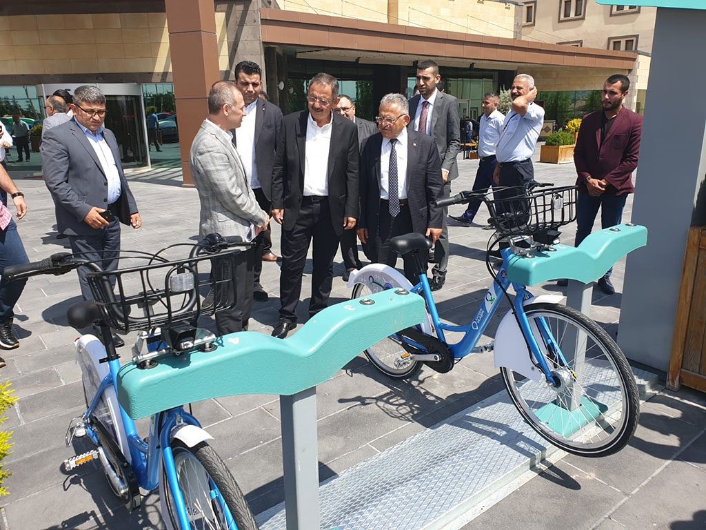 Kayseri Büyükşehir Belediye Başkanı Dr. Memduh Büyükkılıç, Nevşehir’de düzenlenen Yerel Yönetimler İstişare ve Değerlendirme Bölge Toplantısı’na katıldı. Toplantıya AK Parti Yerel Yönetimlerden Sorumlu Genel Başkan Yardımcısı Mehmet Özhaseki de iştirak etti. Büyükşehir Belediye Başkanı Dr. Memduh Büyükkılıç, ilçe belediye başkanları ile birlikte Yerel Yönetimler İstişare ve Değerlendirme Bölge Toplantısı’na katılmak üzere Nevşehir’e gitti. Başkan Büyükkılıç, toplantıya katılan AK Parti Genel Başkan Yardımcısı Mehmet Özhaseki ile de bir araya gelerek sıcak ve samimi bir görüşme gerçekleştirdi. AK Parti Yerel Yönetimler İstişare ve Değerlendirme Bölge Toplantısı’nda Kayseri Büyükşehir Belediyesi’nin örnek projeleri de tanıtıldı. Bu projelerden birisi olan ve tüm Türkiye’de örnek gösterilen Kayseri’nin bisiklet paylaşım sistemi KAYBİS hakkında katılan belediye başkanlarına bilgiler verildi. 2011 yılında devreye alınan ve şehrin 51 noktasında istasyonu bulunan KAYBİS, bölgedeki belediye başkanlarınca ilgiyle takip edildi.