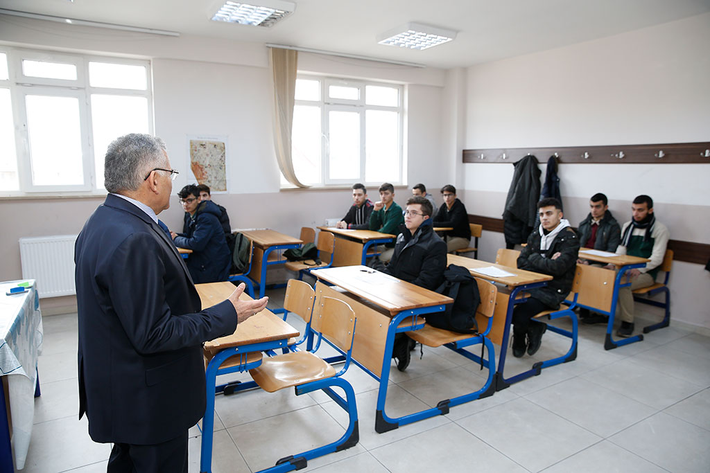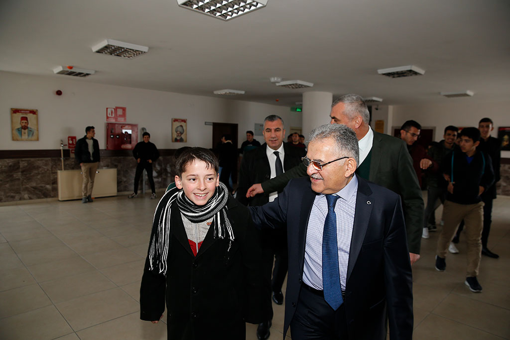 Ziyaretinde sınıfları gezerek öğrencilerle bir araya gelen Başkan Memduh Büyükkılıç, “Sizler bizim geleceğimizsiniz. Sizler donanımlı, eğitimli, değerlerine bağlı bir şekilde yetişirseniz; siz kazanırsınız, aileniz kazanır, biz kazanırız ve ülkemiz kazanır. Bulunduğunuz yerin kıymetini bileceksiniz ve bulunduğunuz yerin sıradan öğrencisi olmamak için gayret edeceksiniz. Herkes kendisini geliştirecek ve ülkemiz kazanacak. Türk milletinin her alanda başarısına ve desteğine tüm insanlığın ihtiyacı var” diye konuştu. Öğrencilerde örnek ve önder olmalarını beklediklerini vurgulayan Başkan Büyükkılıç, “Dünyaya hükmedecek nitelikte yetişmenizi istiyoruz. Bunun için daha fazla fedakarlık yapmamız gerekiyor” dedi.