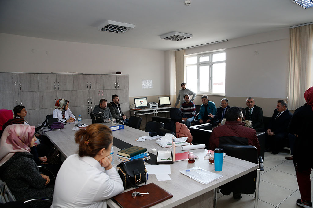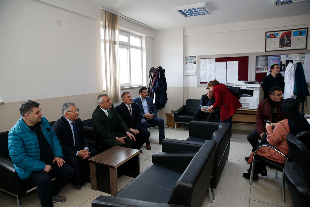 Büyükşehir Belediye Başkanı Memduh Büyükkılıç, sınıfları ziyaretinin ardından okul öğretmenleriyle bir toplantı yaparak taleplerini dinledi.